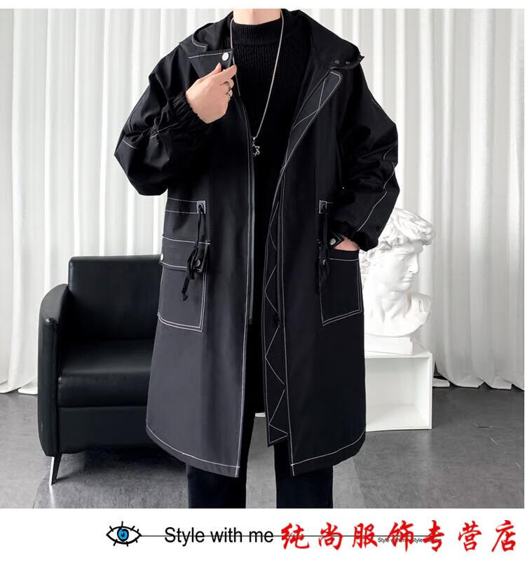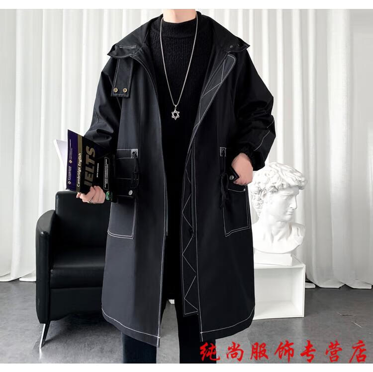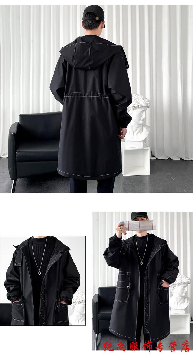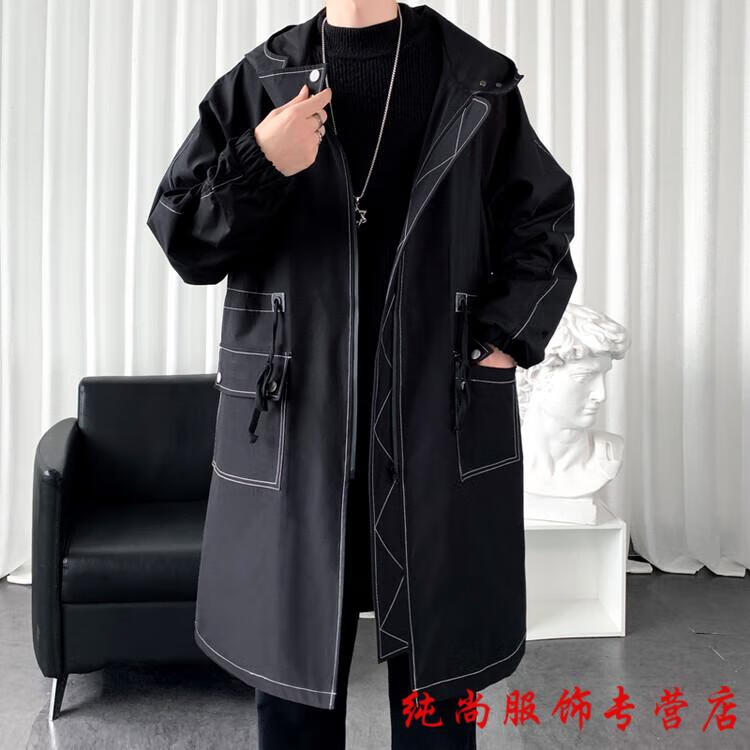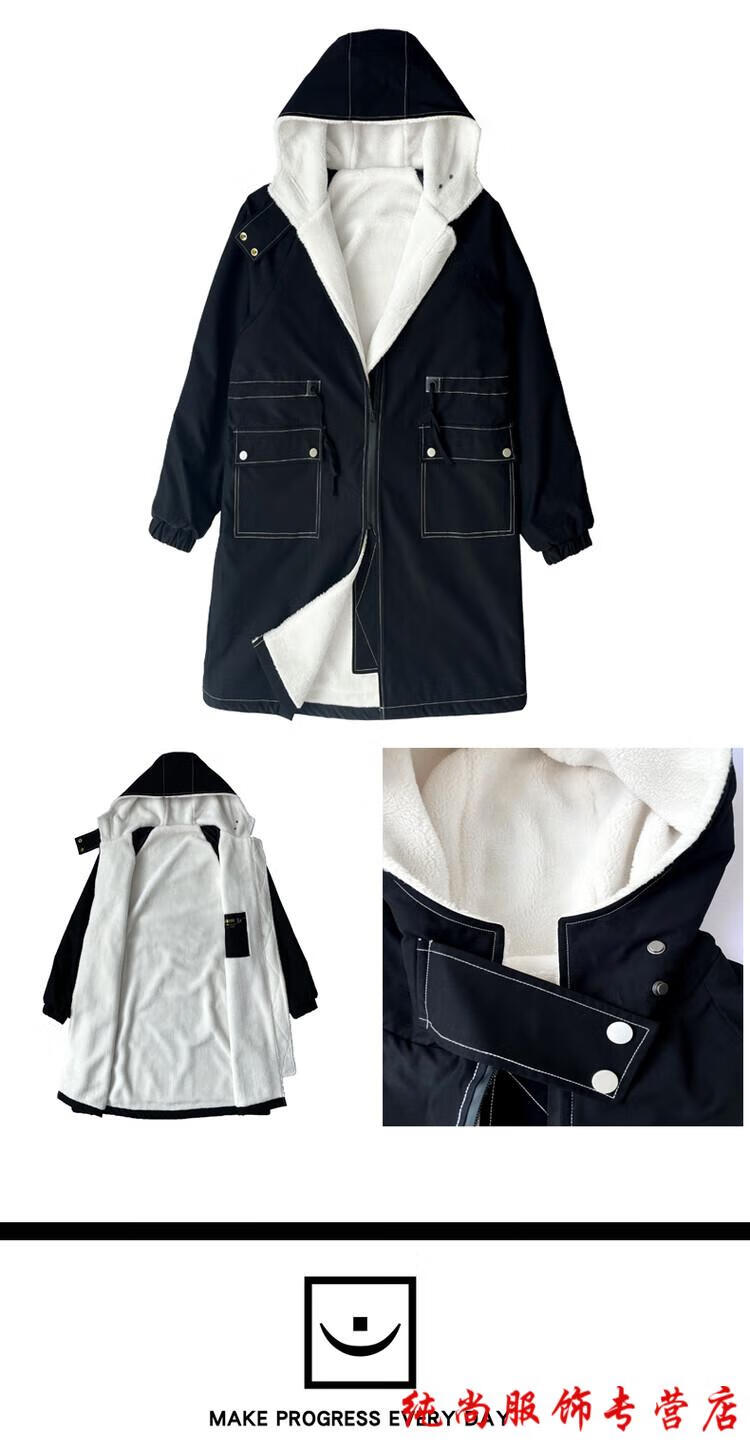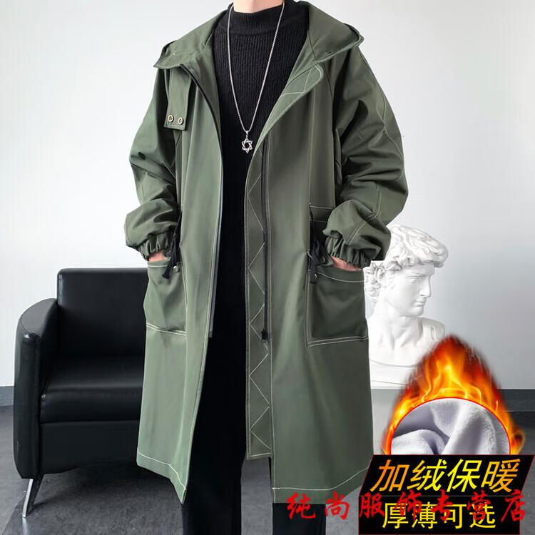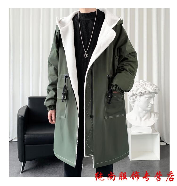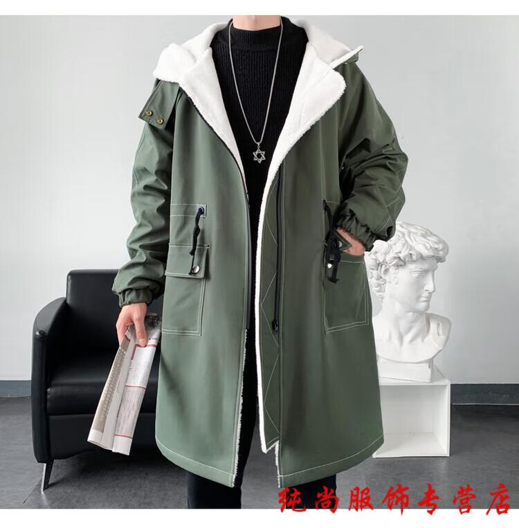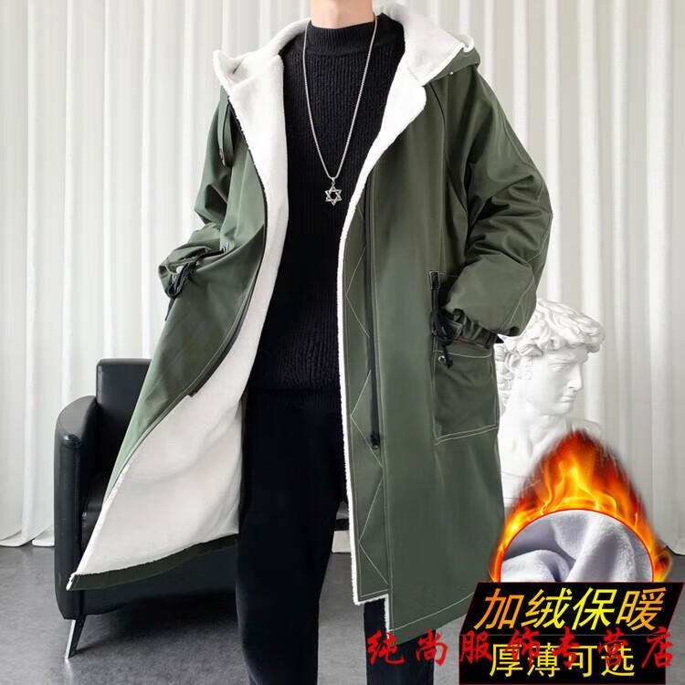 Playboy (PLAYBOY) winter men's mid-length velvet thickened hooded windbreaker men's Korean version slim large size warm coat coat trendy black velvet 3XL