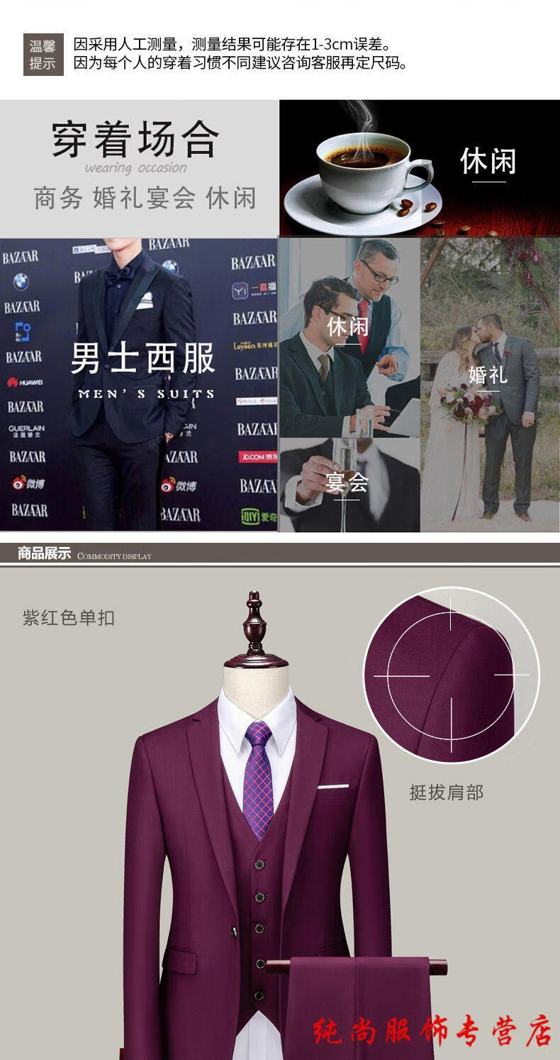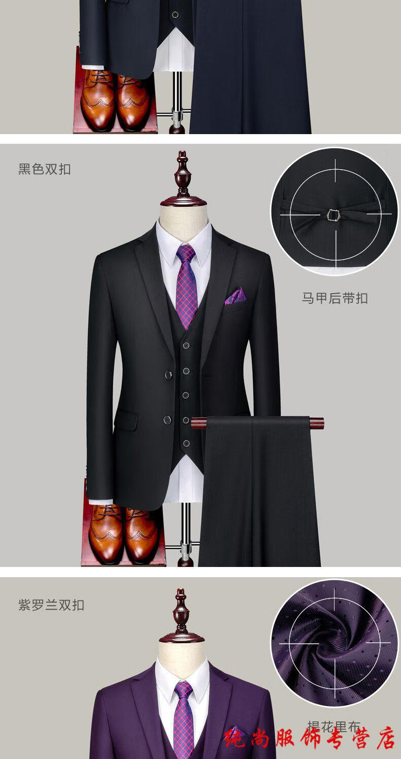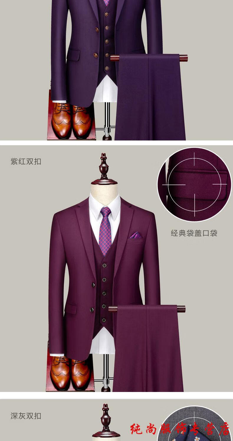 Playboy (PLAYBOY) Suit Suit Men's Korean Slim Suit Three-piece Suit Men's Suit Small Suit Groom's Dress Professional Wear Formal Two-button Violet (suit + trousers + vest + tie 2XL 185 156-170Jin Jin equals 0.5 kg