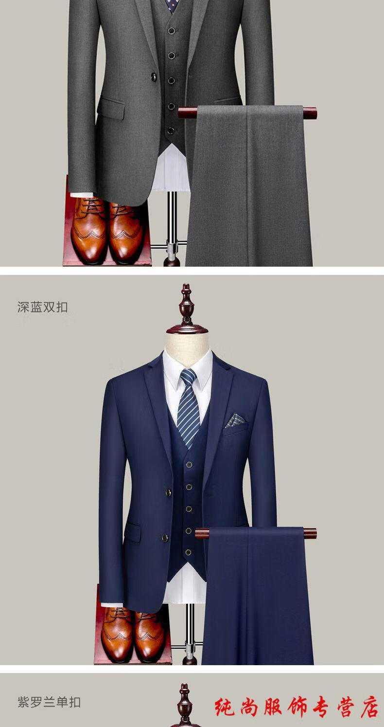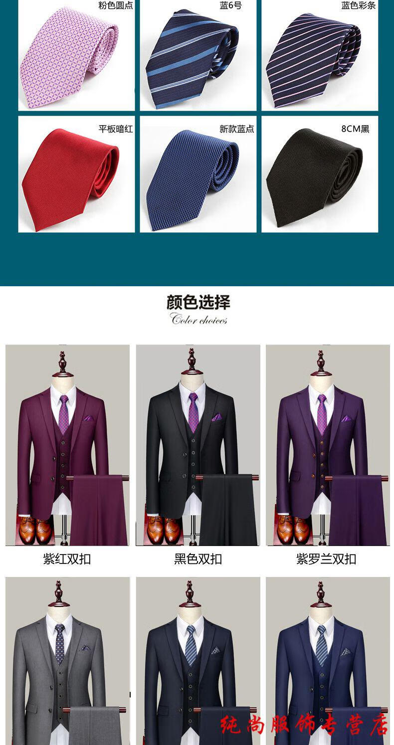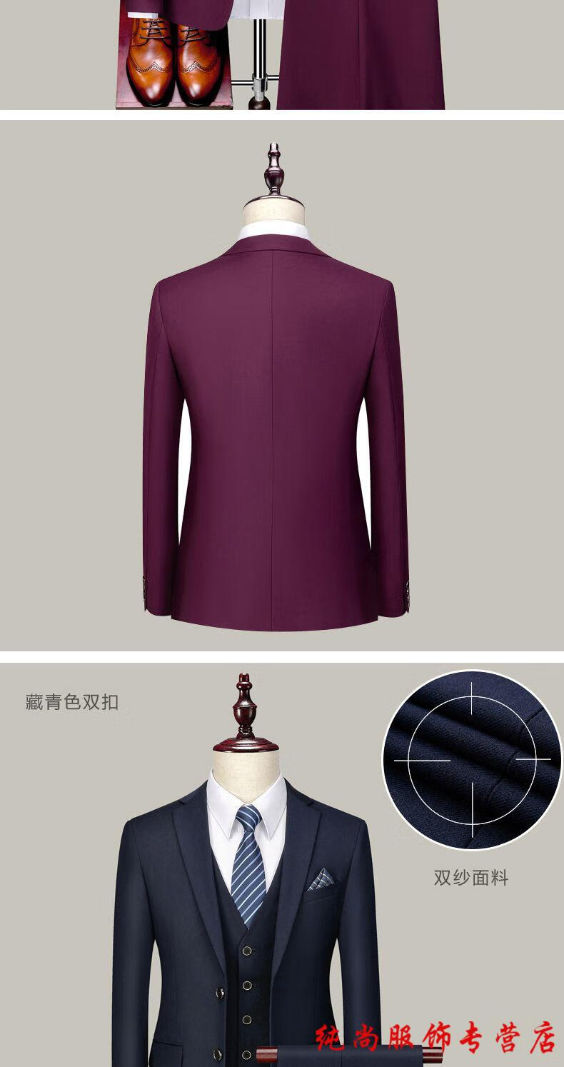 Playboy (PLAYBOY) Suit Suit Men's Korean Slim Suit Three-piece Suit Men's Suit Small Suit Groom's Dress Professional Wear Formal Two-button Violet (suit + trousers + vest + tie 2XL 185 156-170Jin Jin equals 0.5 kg