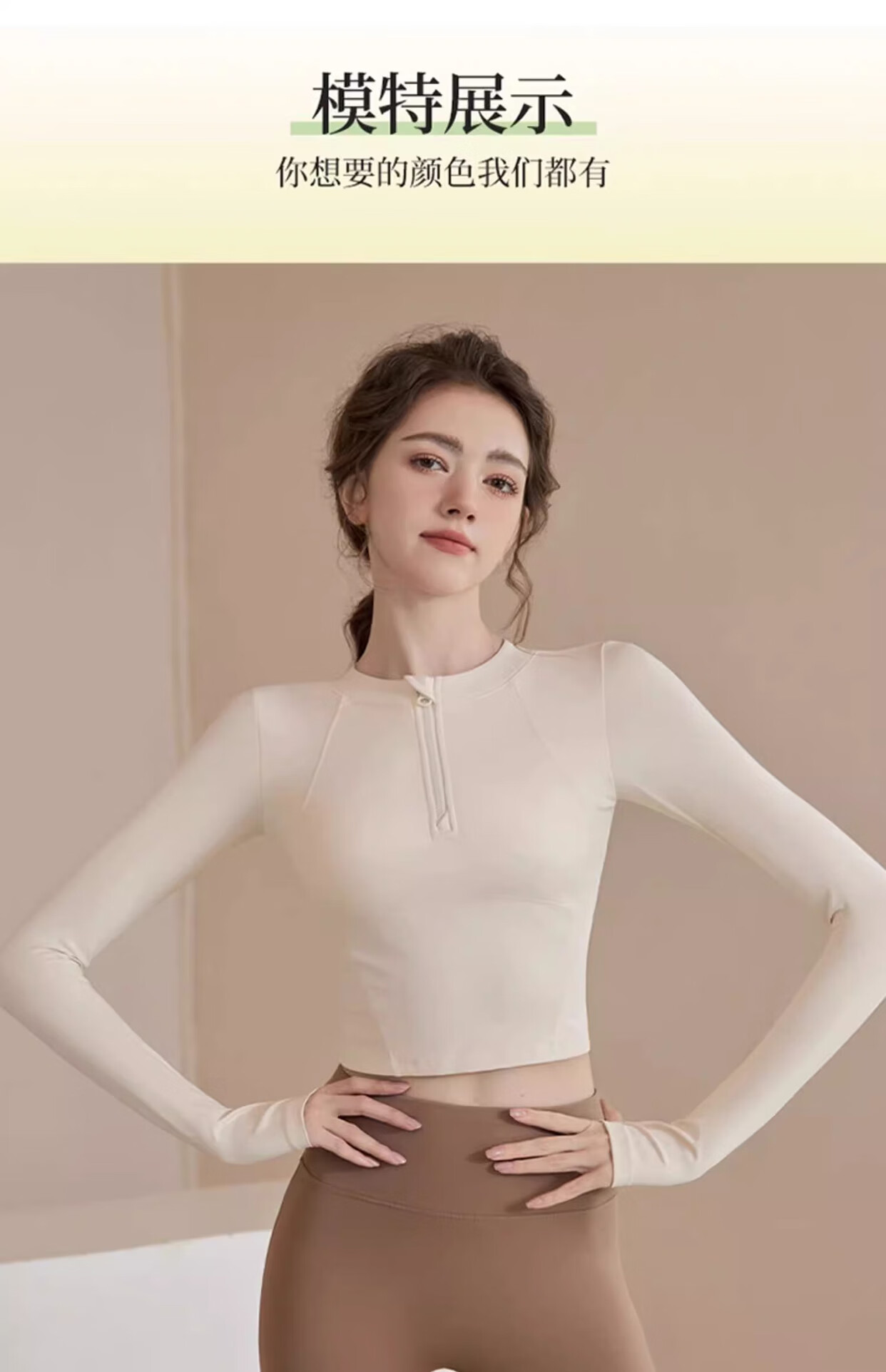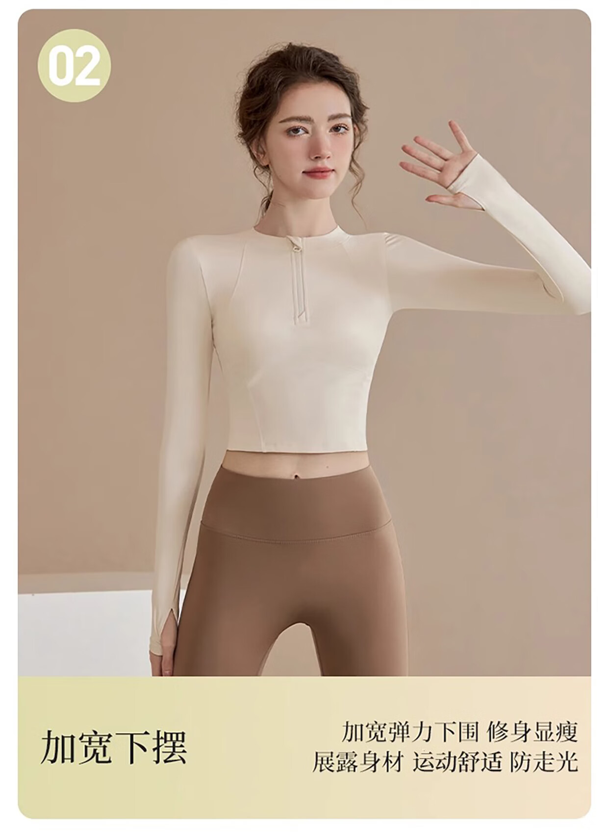 Youyou yoga top spring and summer long-sleeved new running sports women's high-end fitness wear Pilates suit J33009 apricot top + gray pants M (recommended 95-115Jin Jin equals 0.5 kg)