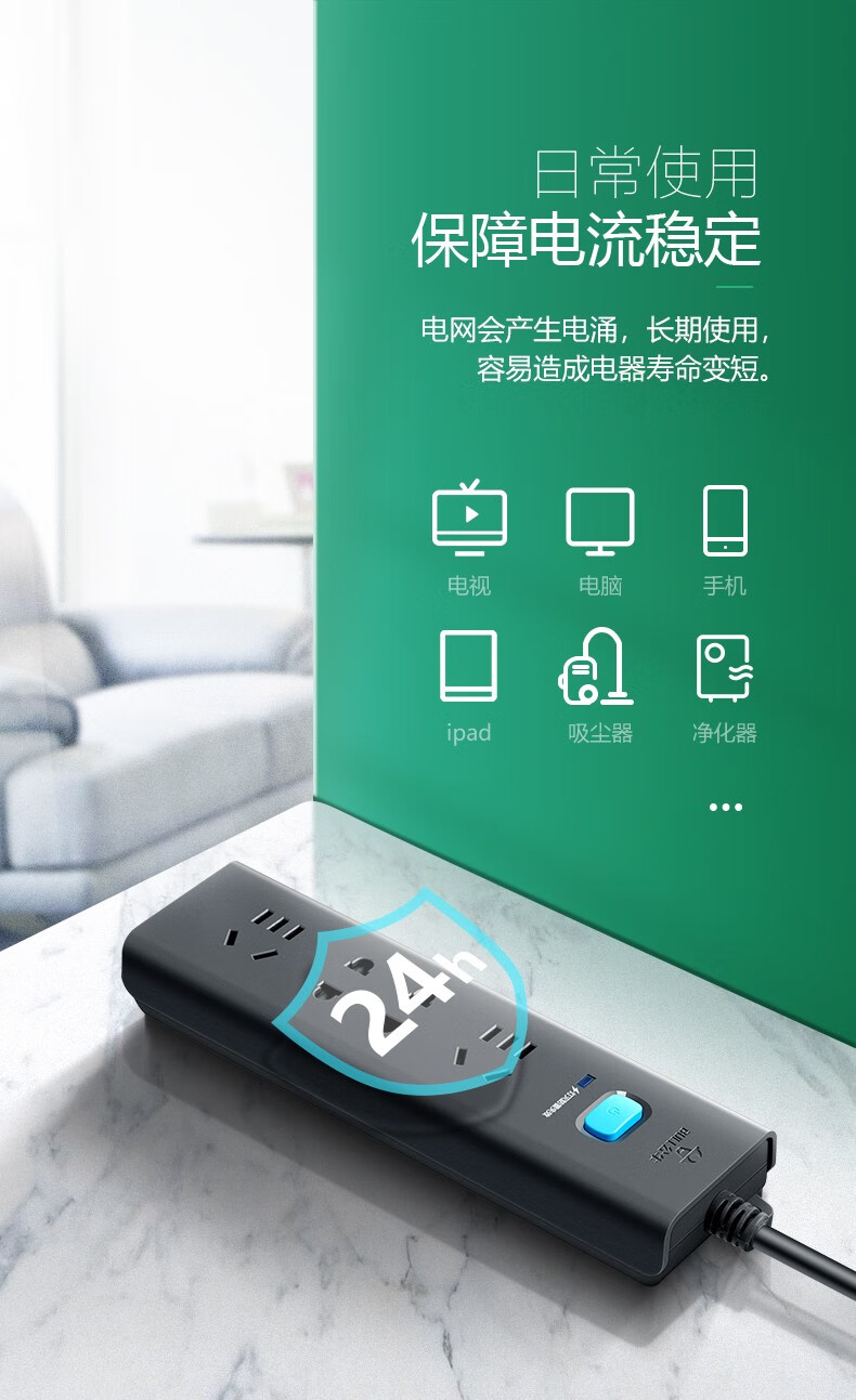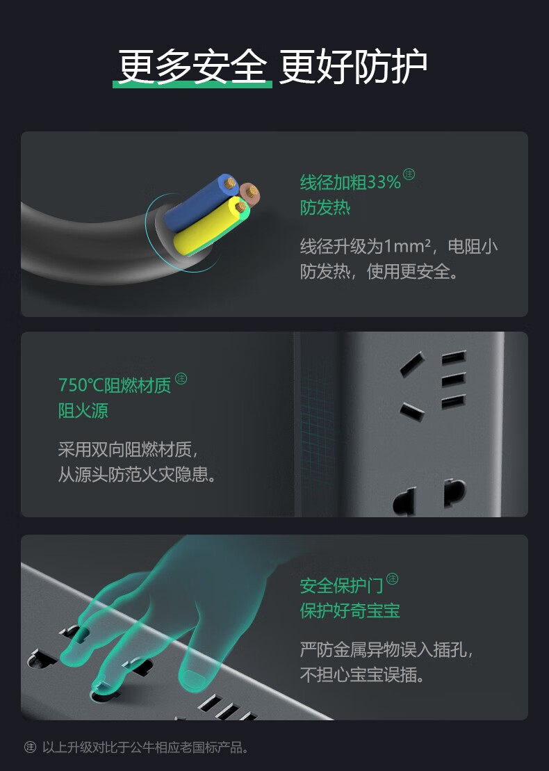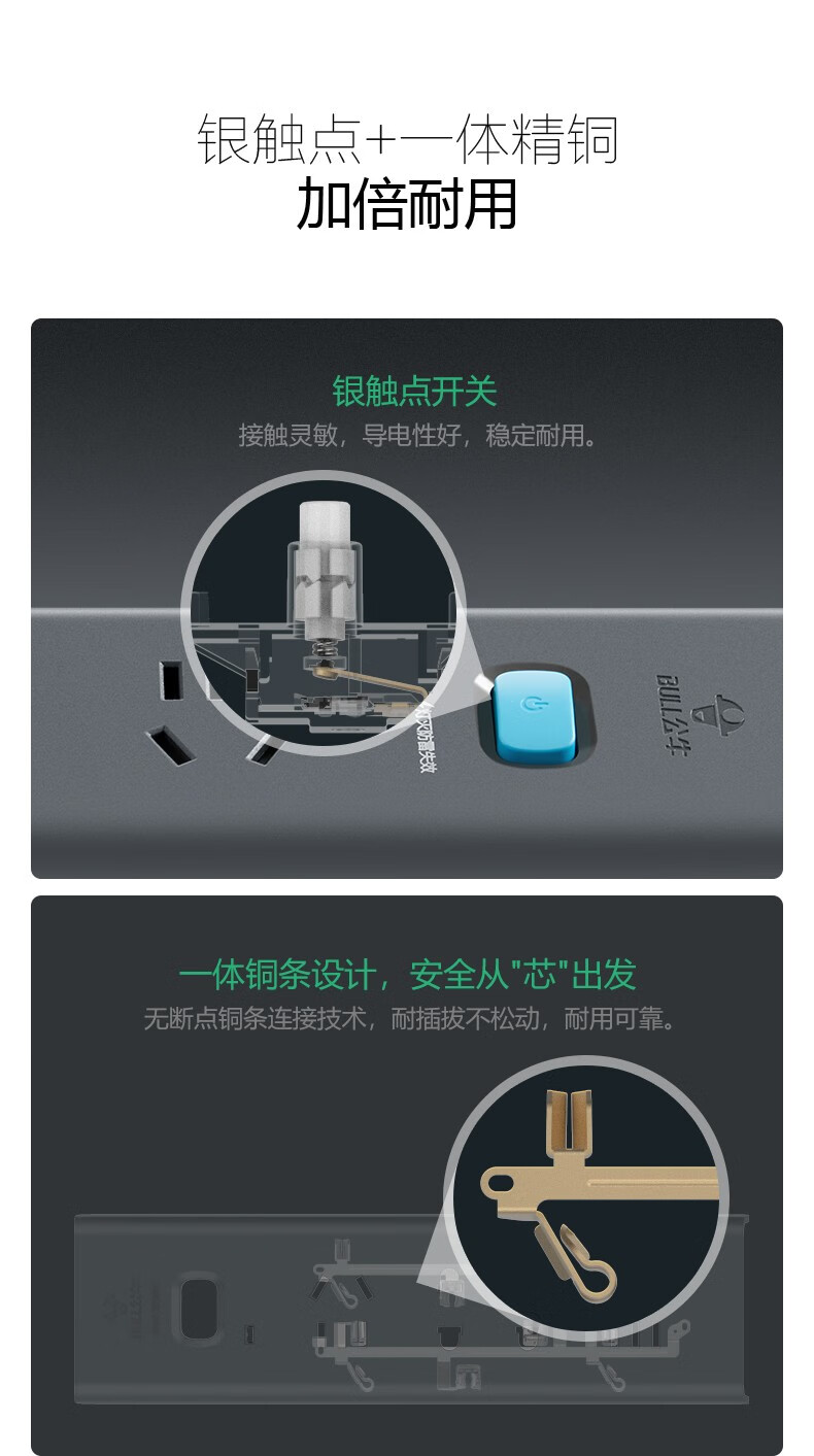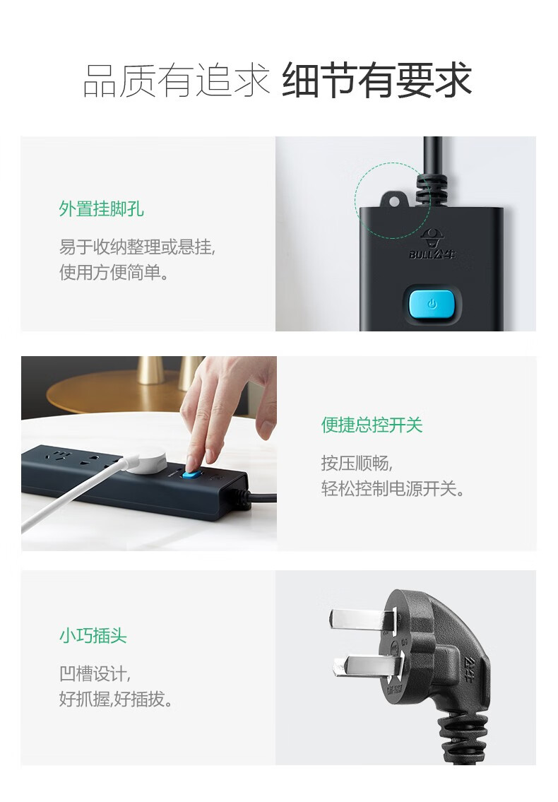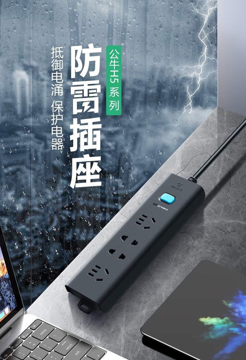 Bull Lightning Protection Socket Intelligent Power Strip Multifunctional Power Strip Double Lightning Protection Safety Wiring Board TV Computer Refrigerator Power Strip New National Standard Four Sockets + Master Control Switch-1.8 Meter Lightning Protection Socket