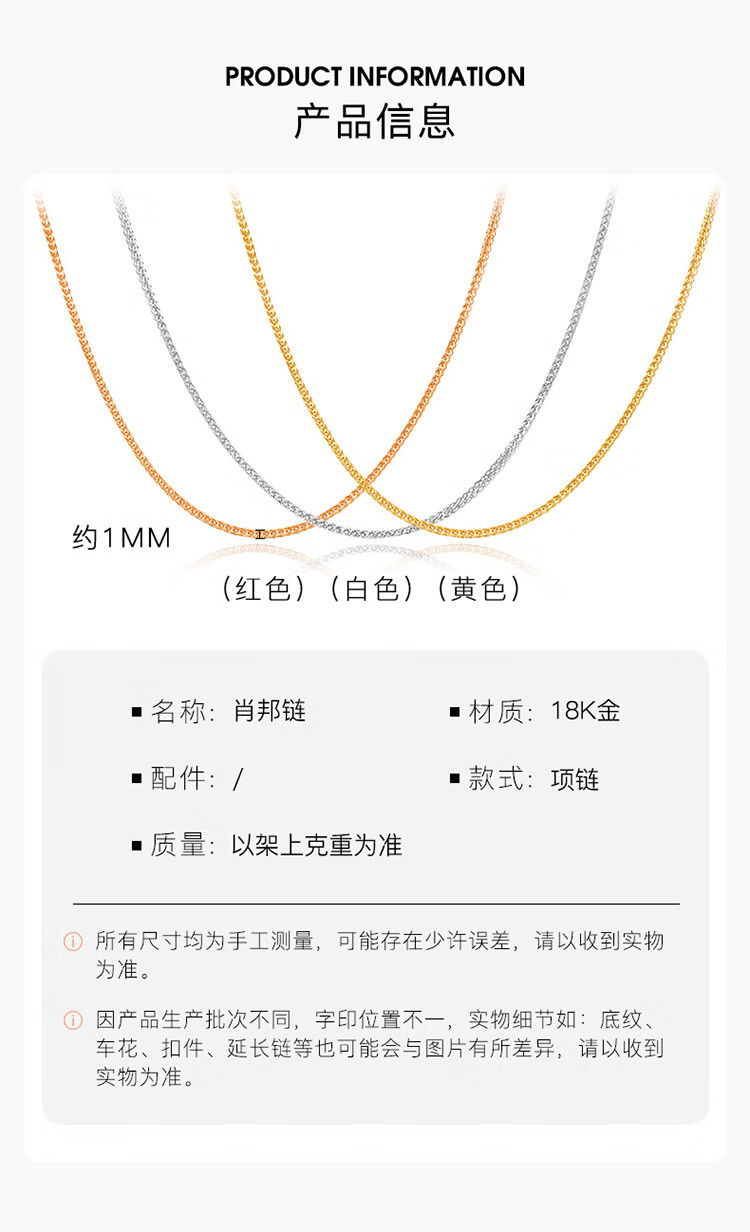 Ming brand jewelry 18K gold color gold fashionable and simple Chopard chain plain chain necklace gift for women CSR0205 pricing Chopard chain K red about 41+2.5+2.5 cm about 1.17 grams