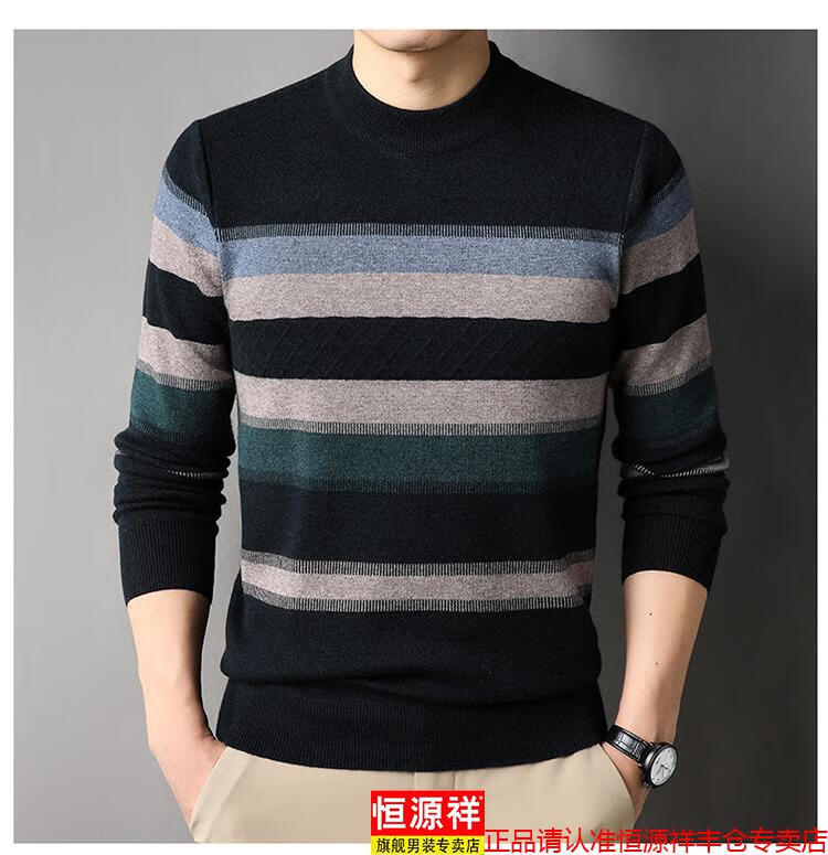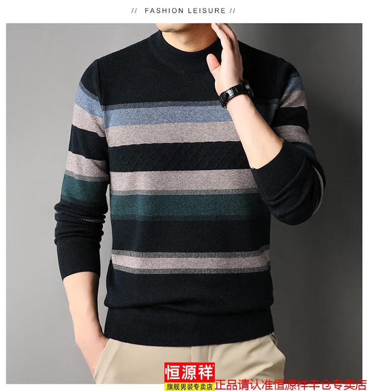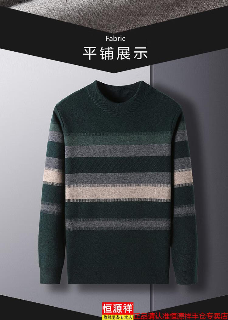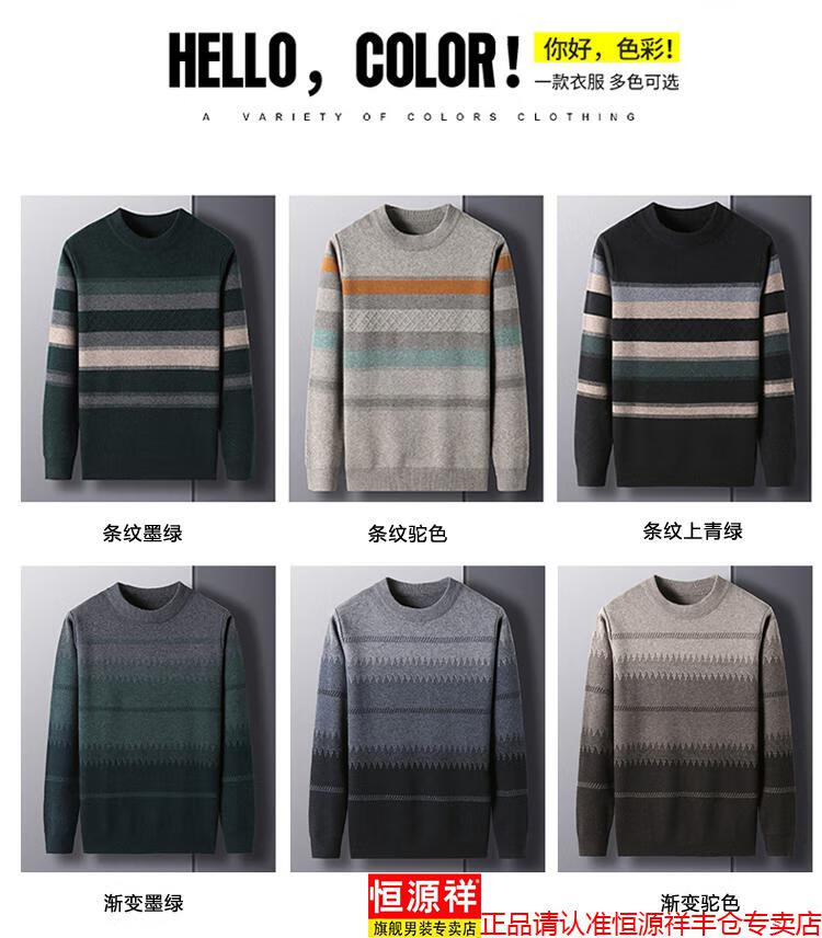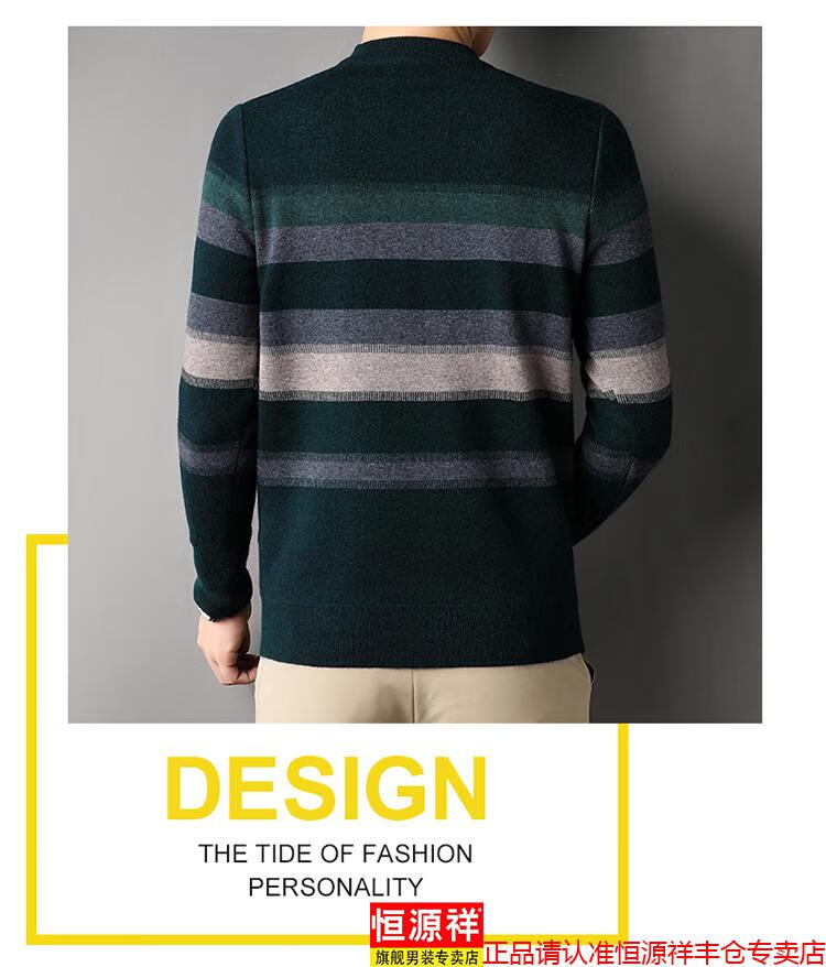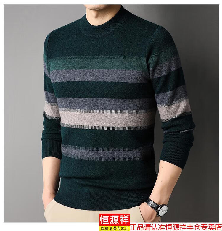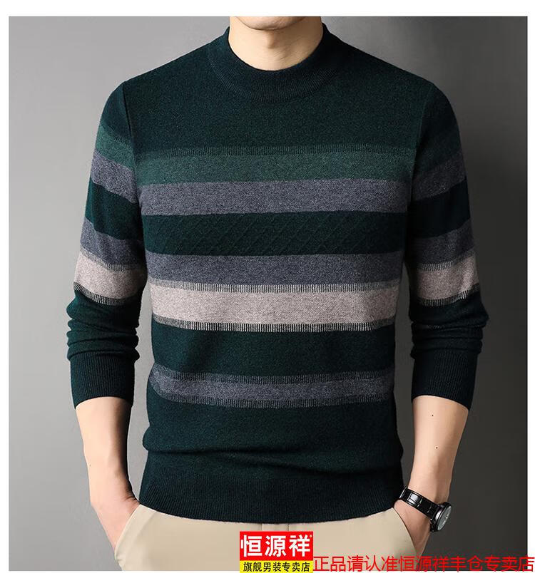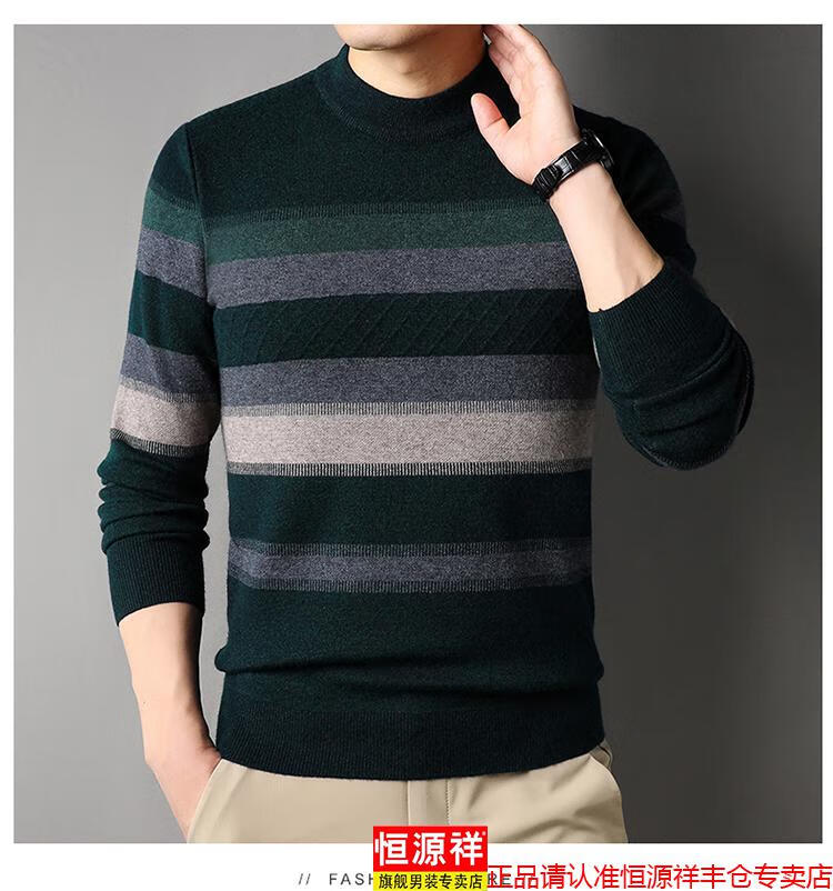 Hengyuanxiang brand high-end autumn and winter men's wool sweater round neck middle-aged thickened striped city sweater knitted wool bottoming sweater dark green 165/84A (S) recommended 100-125 Jin Jin equals 0.5 kg to wear