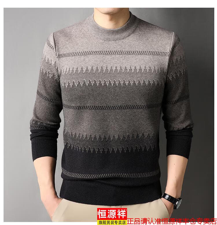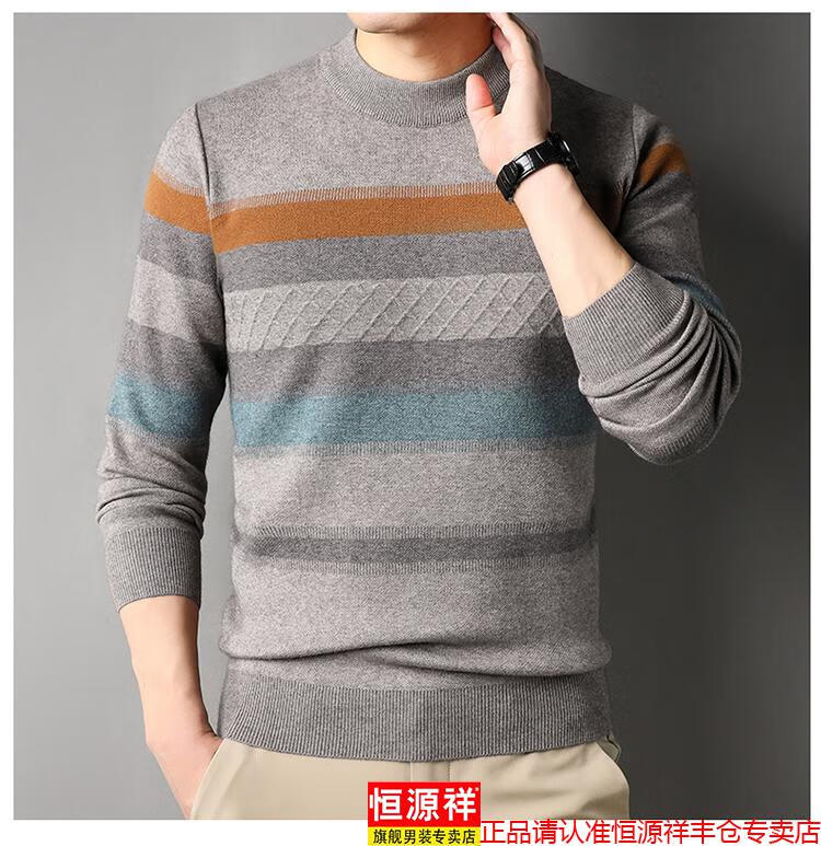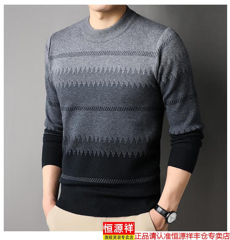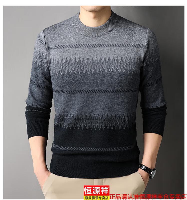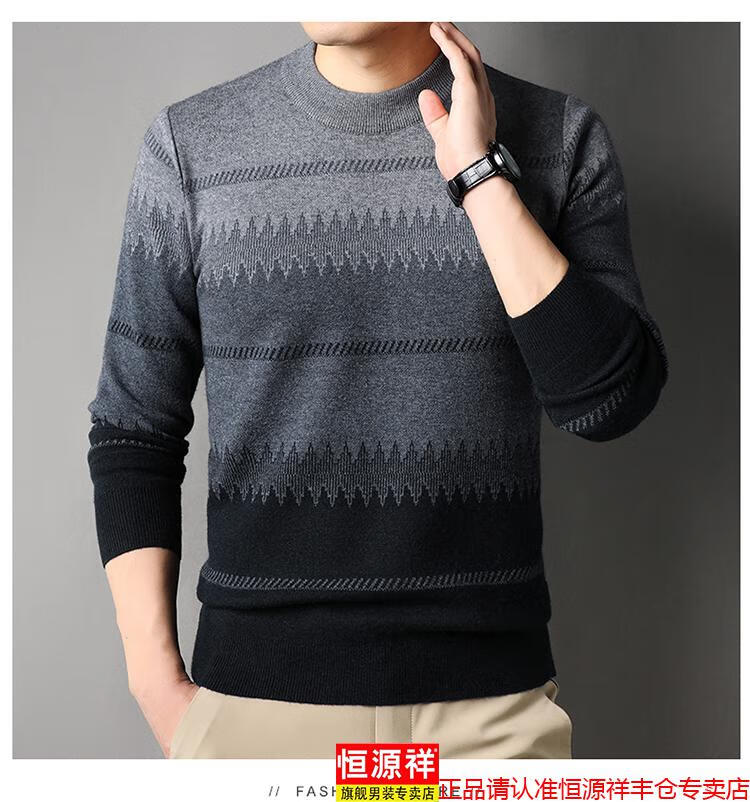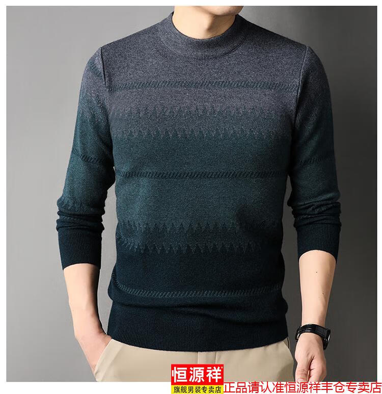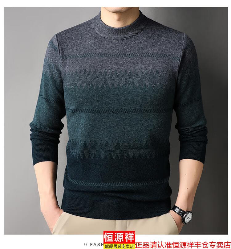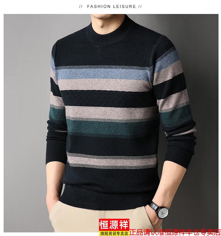 Hengyuanxiang brand high-end autumn and winter men's wool sweater round neck middle-aged thickened striped city sweater knitted wool bottoming sweater dark green 165/84A (S) recommended 100-125 Jin Jin equals 0.5 kg to wear