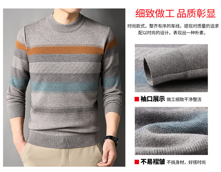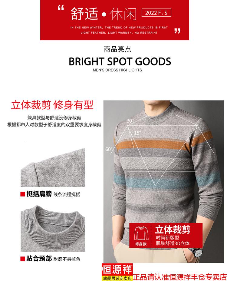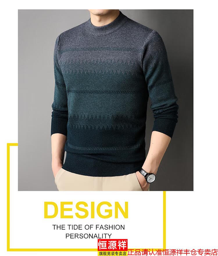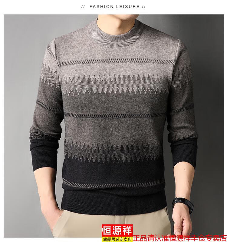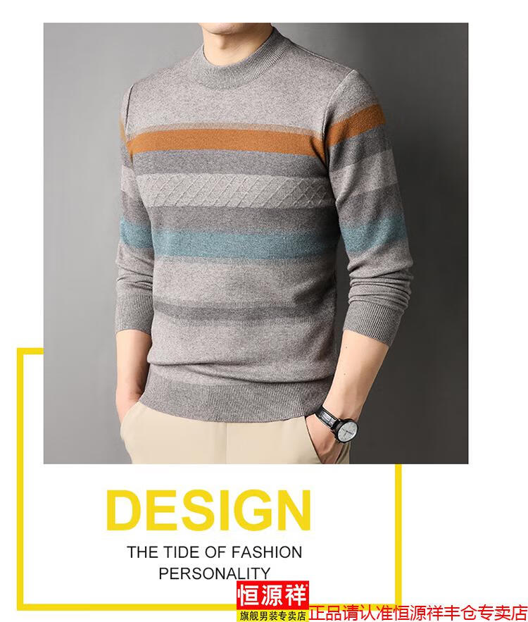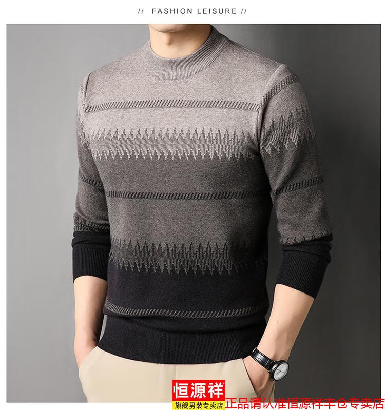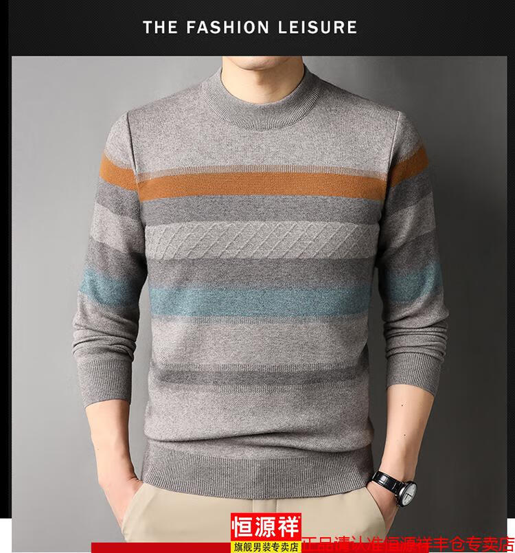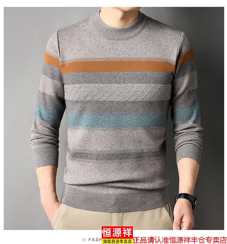 Hengyuanxiang brand high-end autumn and winter men's wool sweater round neck middle-aged thickened striped city sweater knitted wool bottoming sweater dark green 165/84A (S) recommended 100-125 Jin Jin equals 0.5 kg to wear