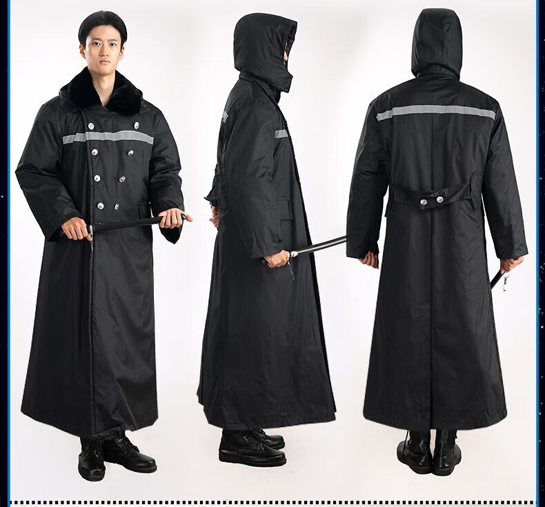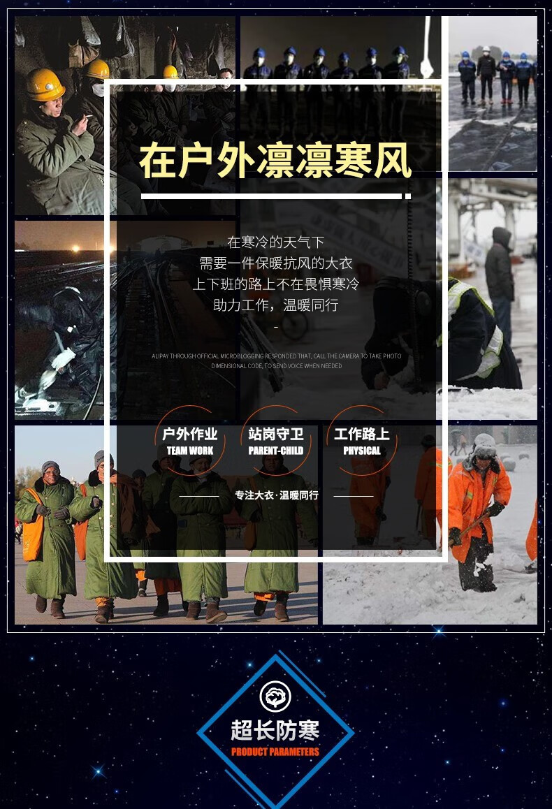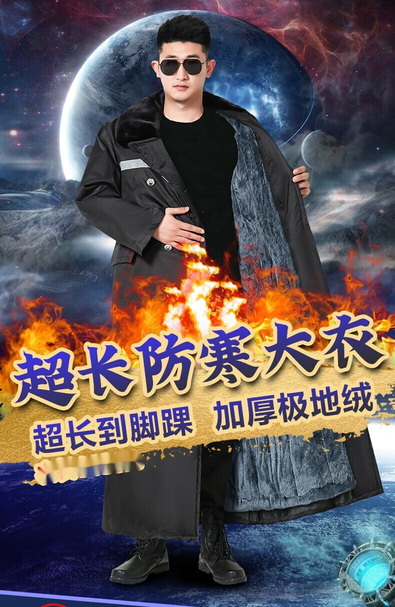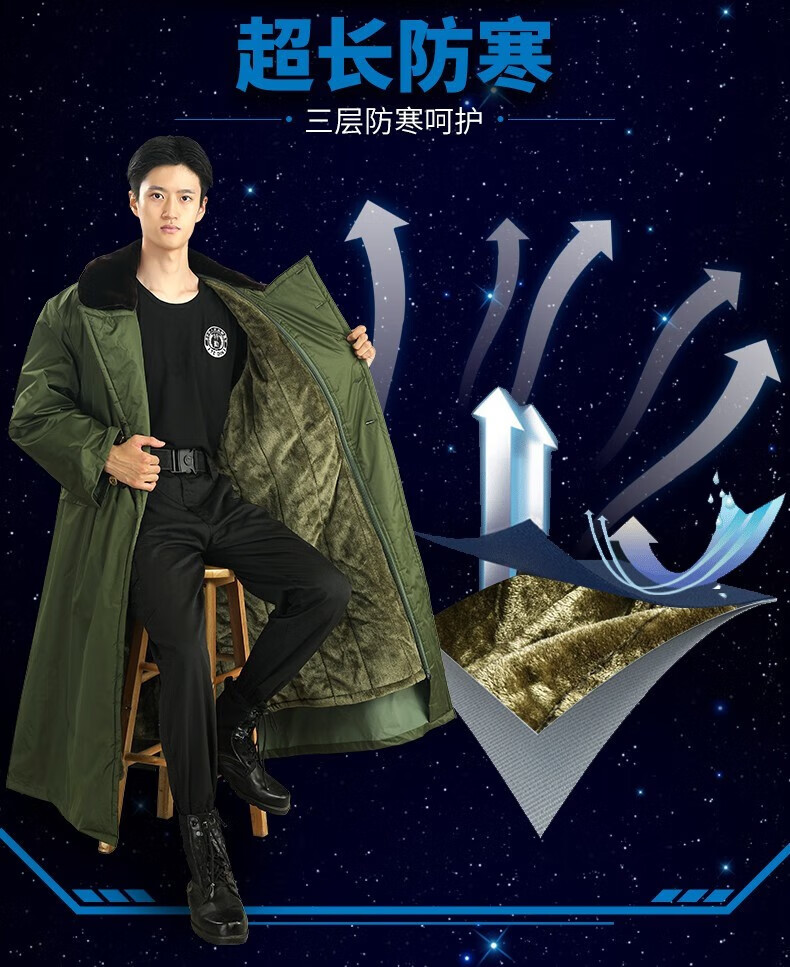 Kuangqi Extra Long Military Coat Service Coat Winter Men's Coldproof Cotton Coat Thickened Detachable Labor Protection Waterproof Coat Black Velvet Coat Extra Long With Hood Extra Long 135cm
