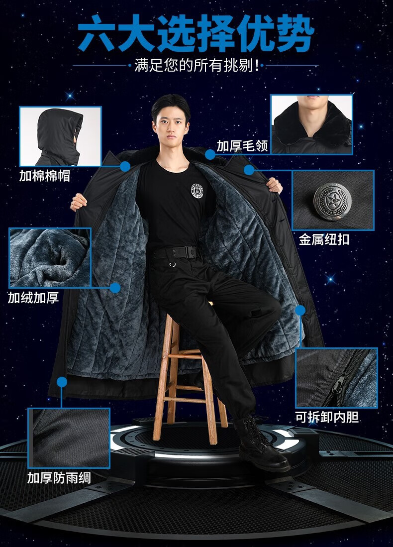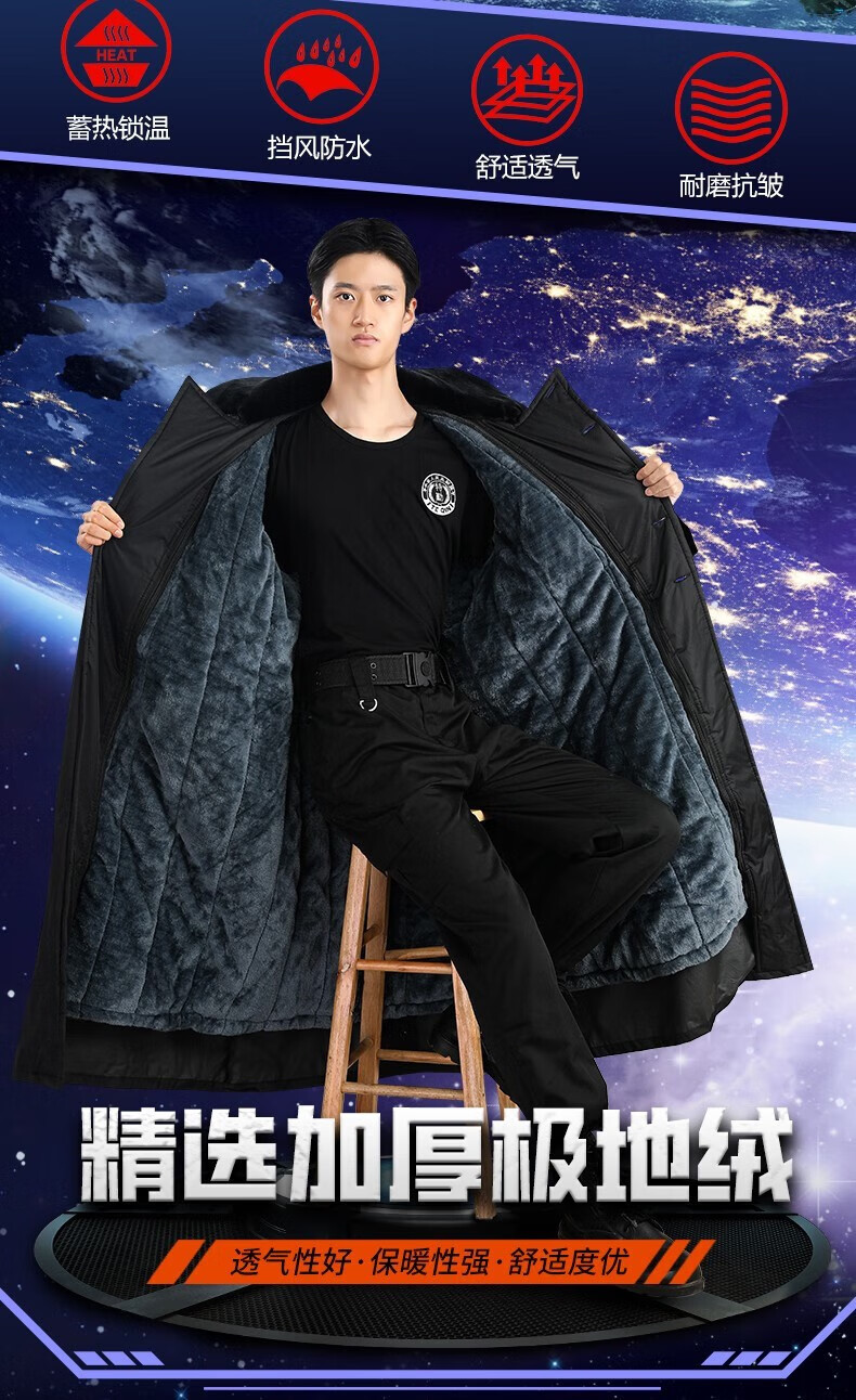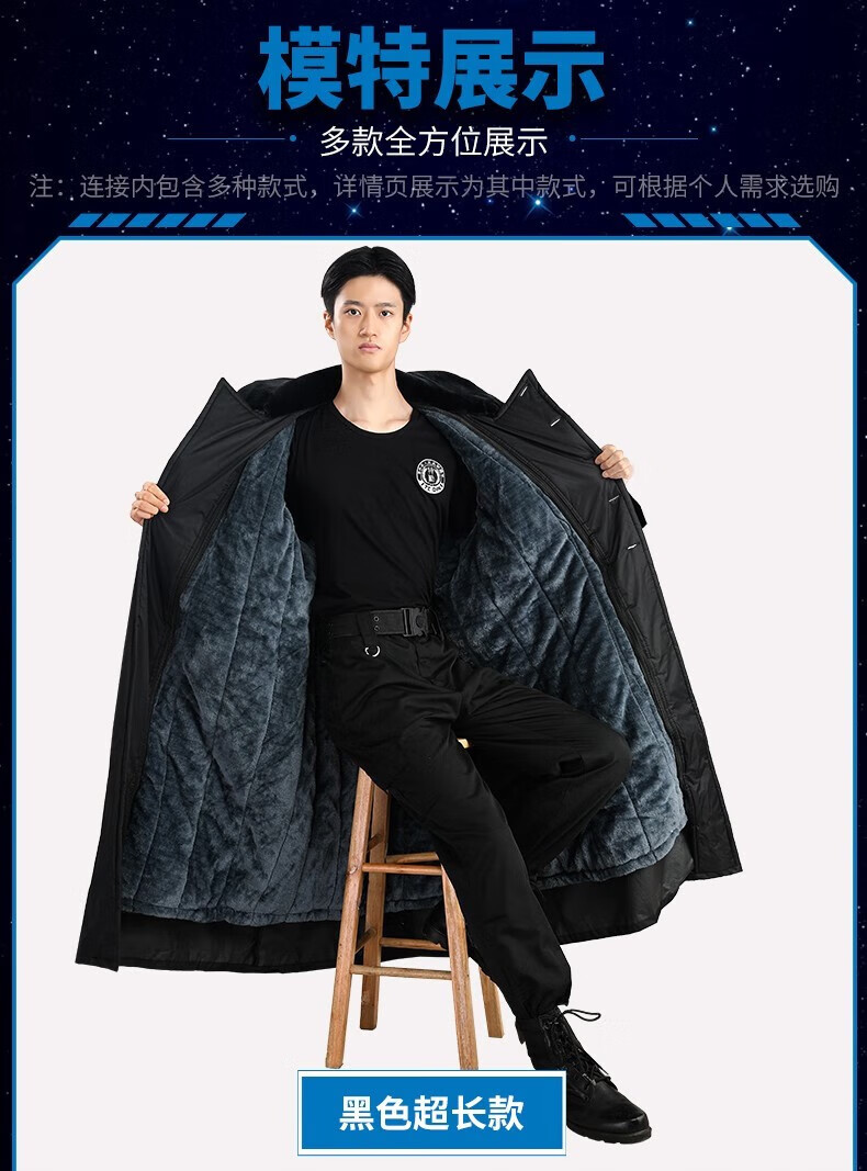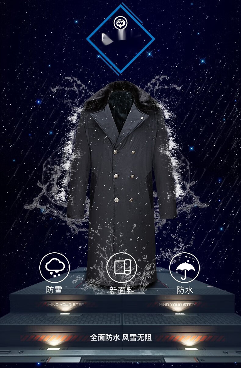 Kuangqi Extra Long Military Coat Service Coat Winter Men's Coldproof Cotton Coat Thickened Detachable Labor Protection Waterproof Coat Black Velvet Coat Extra Long With Hood Extra Long 135cm