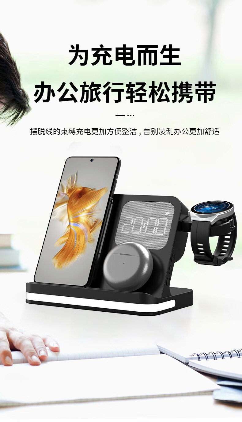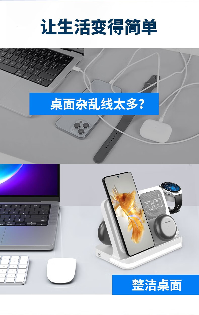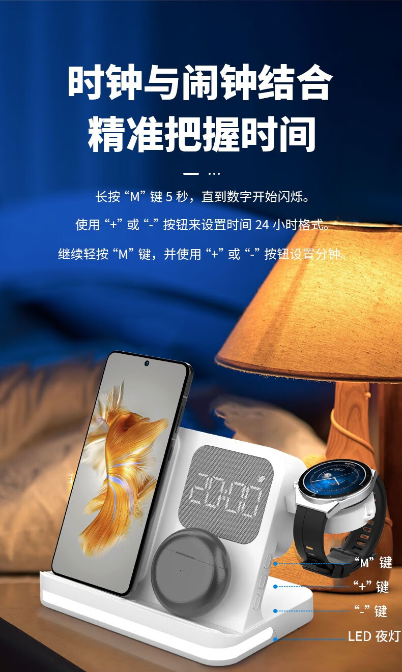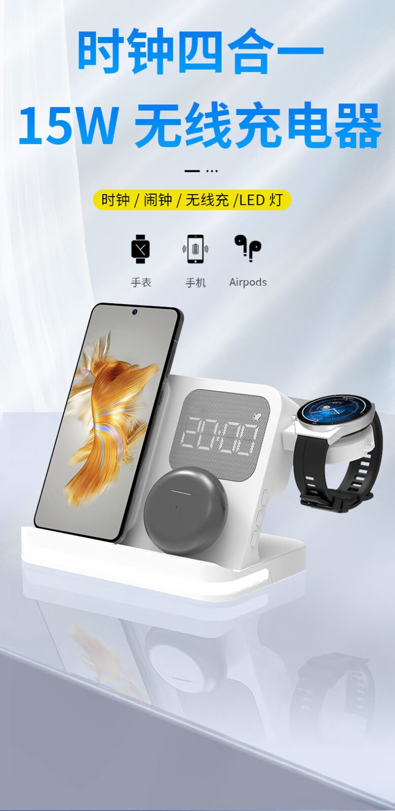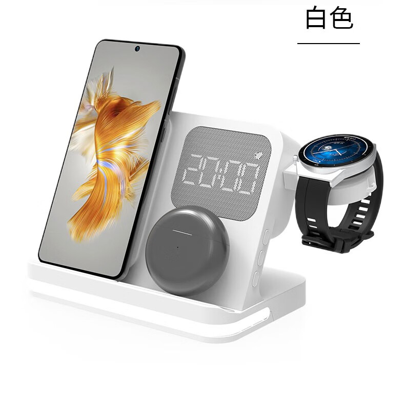 Aresh wireless charger four-in-one multi-function clock alarm clock night light suitable for Huawei mobile phone headphone base watch4 pro gt4 extraordinary master watch holder white four-in-one with charging cable suitable for Huawei watches