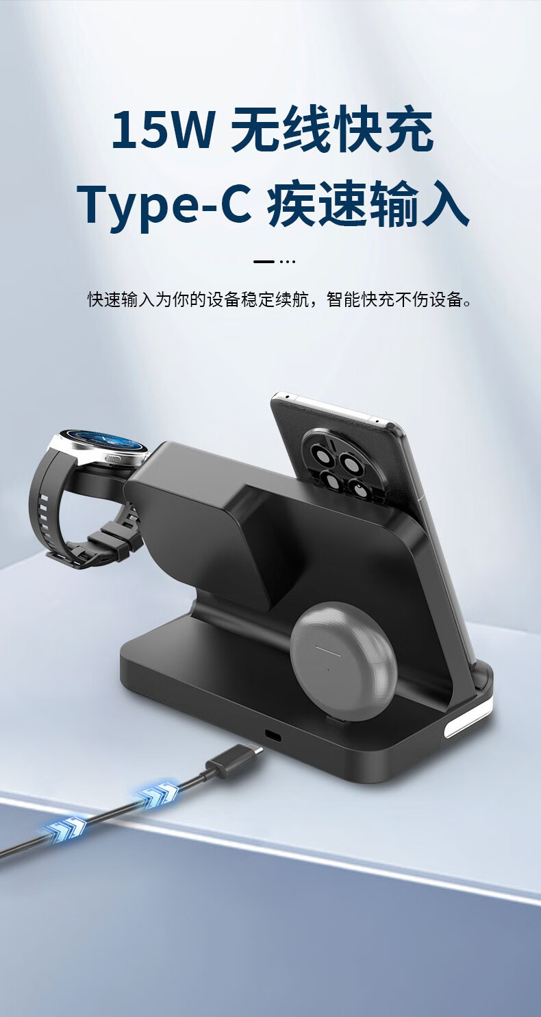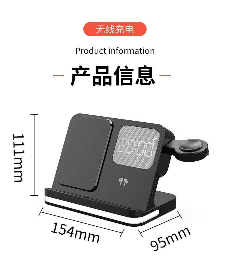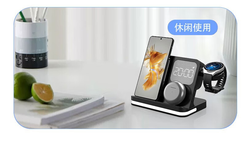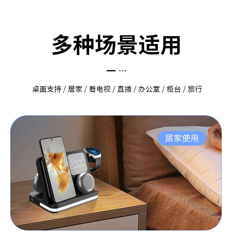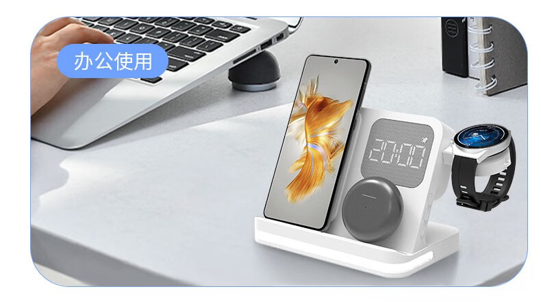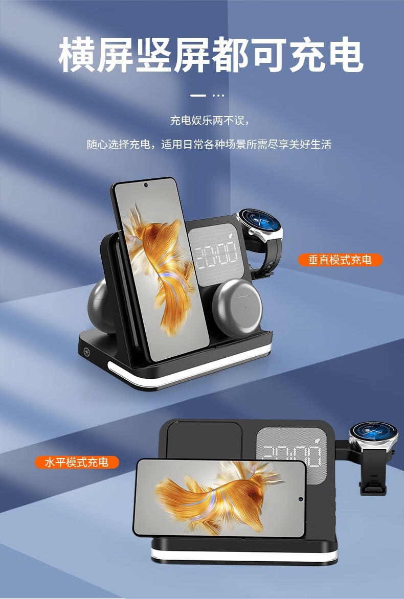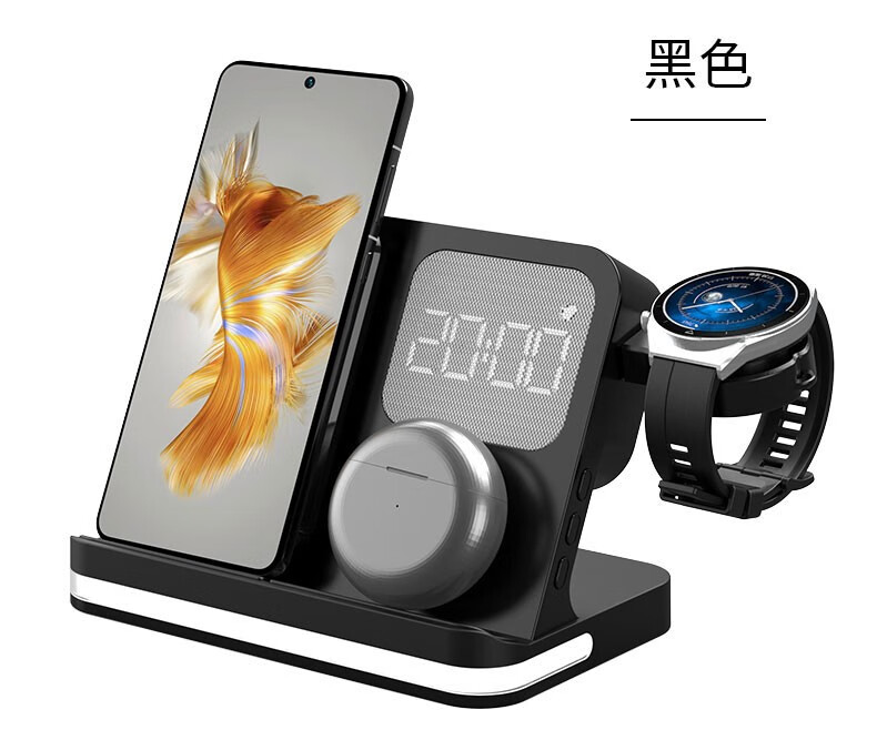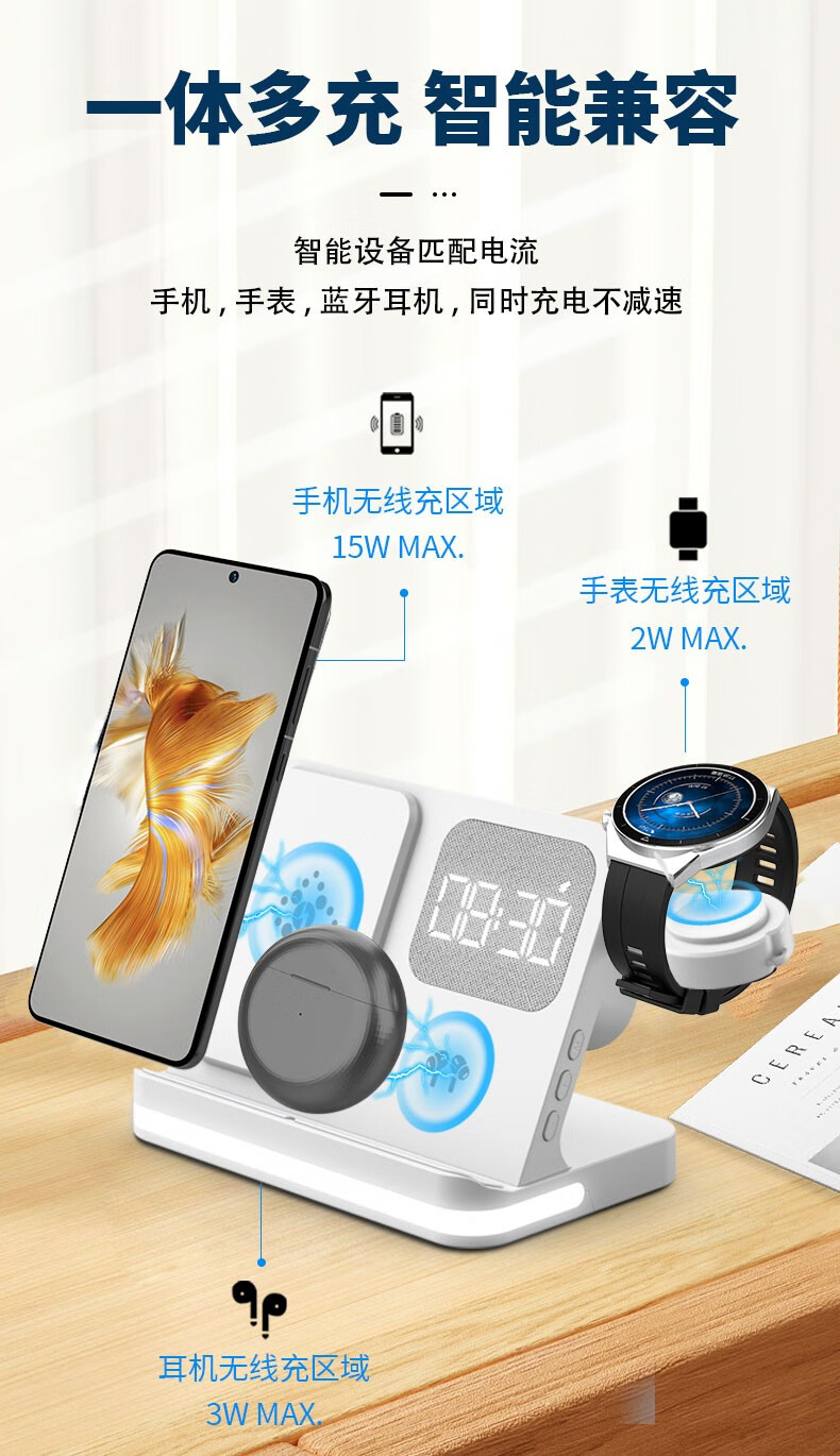 Aresh wireless charger four-in-one multi-function clock alarm clock night light suitable for Huawei mobile phone headphone base watch4 pro gt4 extraordinary master watch holder white four-in-one with charging cable suitable for Huawei watches
