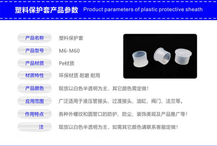 PE plastic sheath screw dust cap pipe cap thread sleeve external thread protective cover white plastic thread protective sleeve T-M24 (100 pieces)
