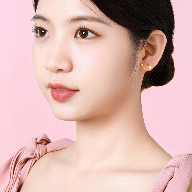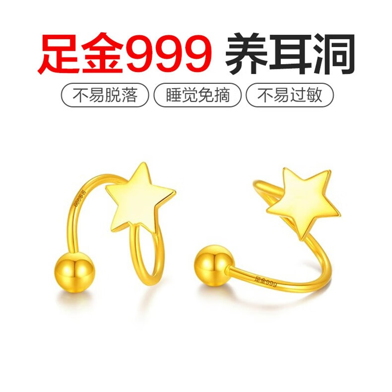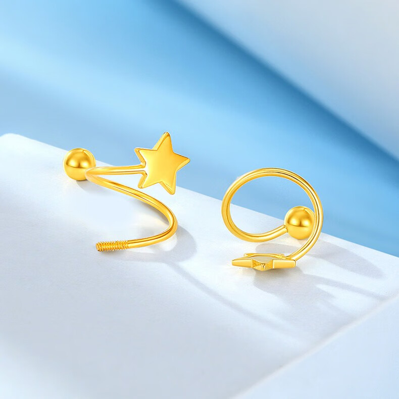 Gu Hao Shuibei Jewelry Showroom Pure Gold 999 S-shaped Earrings Gold Star Ear Jewelry Round Beads for Ear Holes Spiral Curved Hooks Pair of Pure Gold Star Earrings About 1.5-1.6g