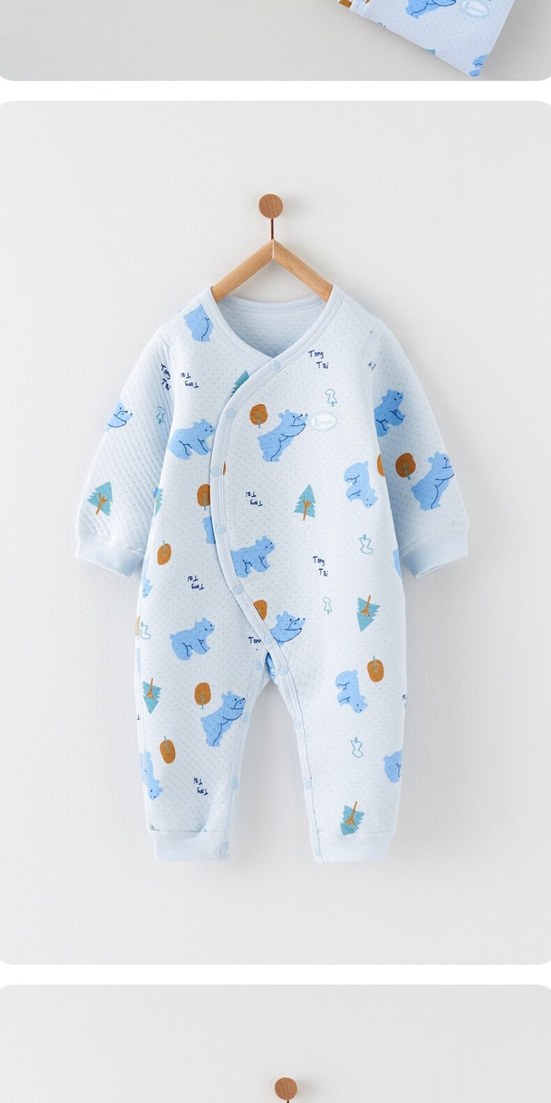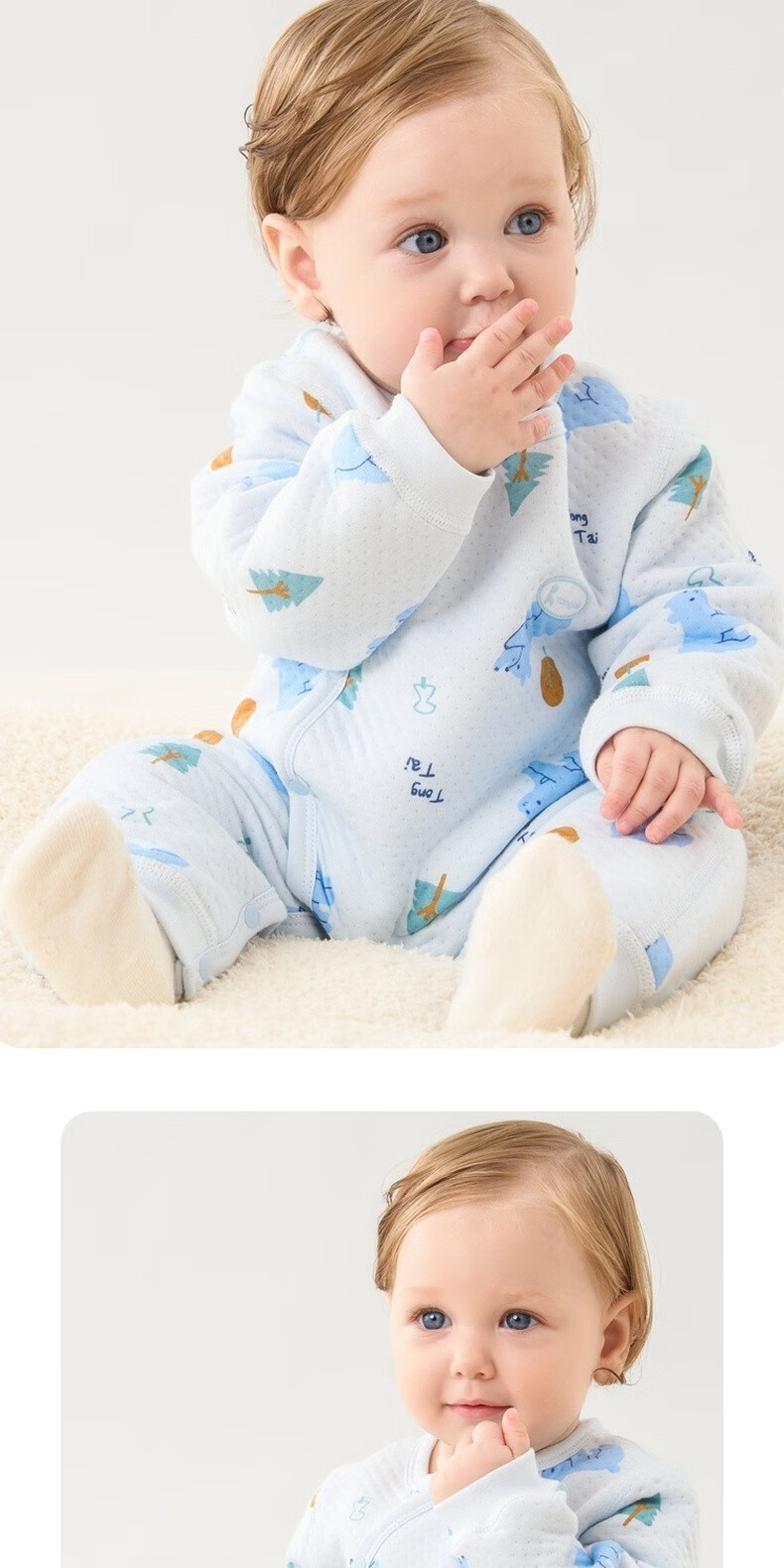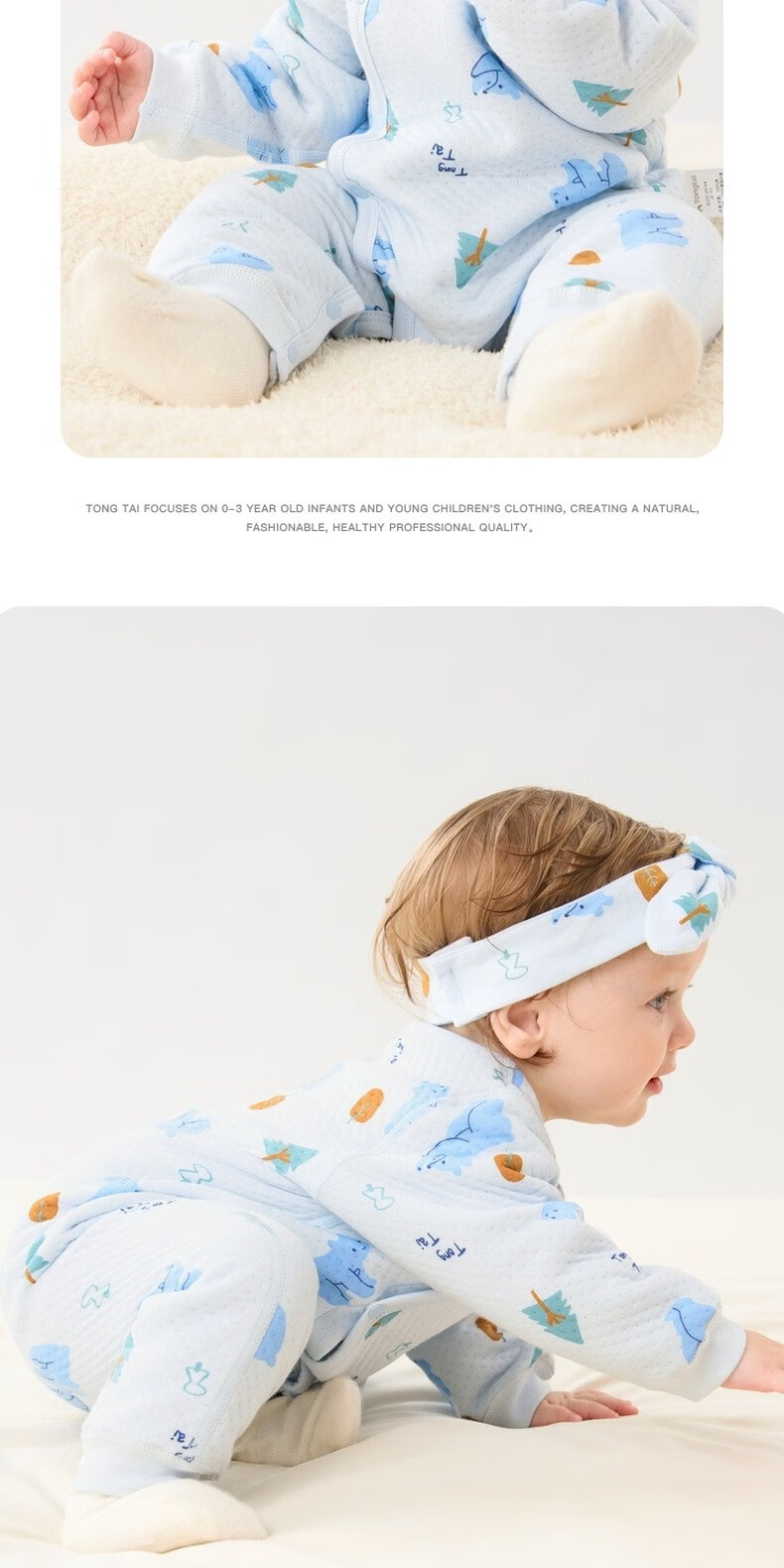 Tongtai Baby Jumpsuit Autumn and Winter Pure Cotton Baby Clothes Home Underwear Offset Long Sleeve Padded Romper Suit Blue 73cm (recommended height 66-75cm for 5-12 months)