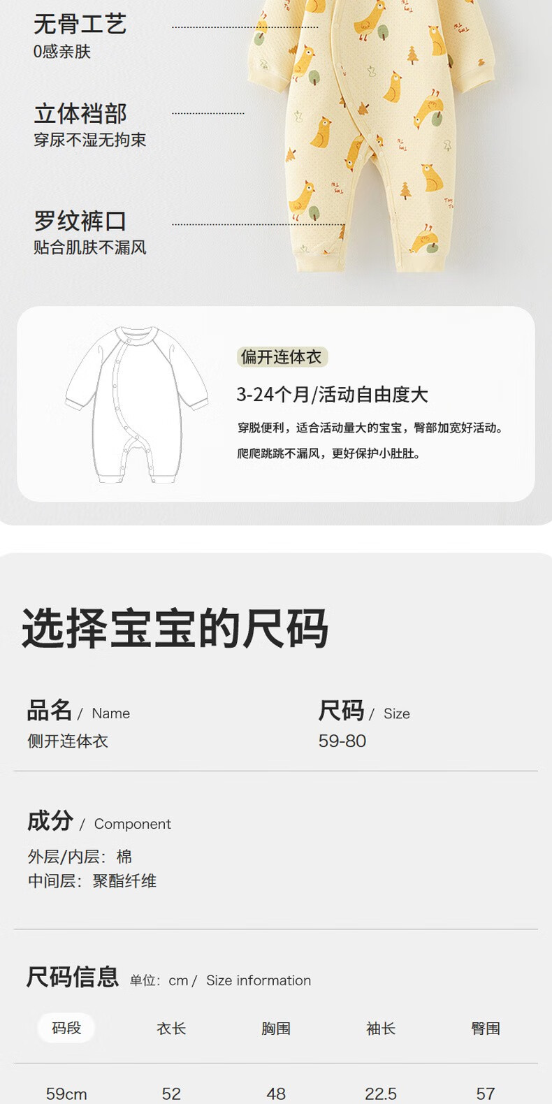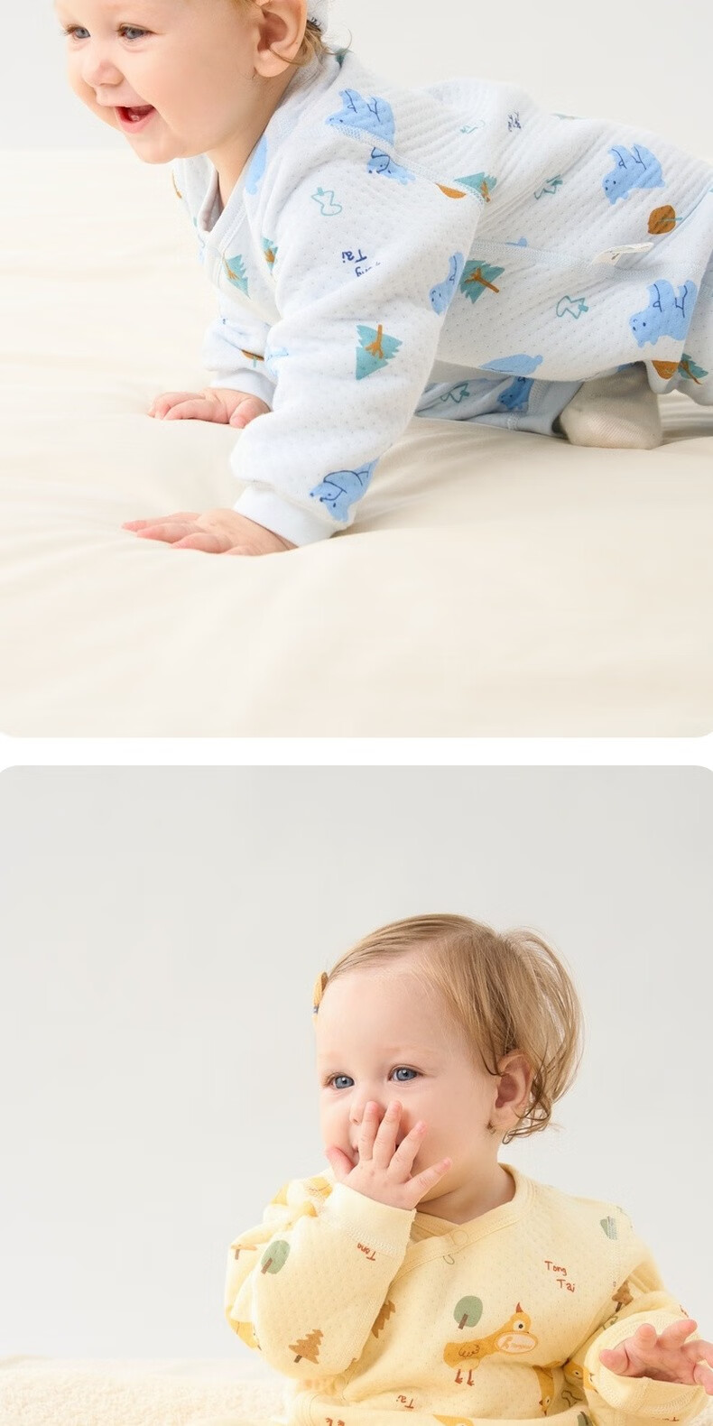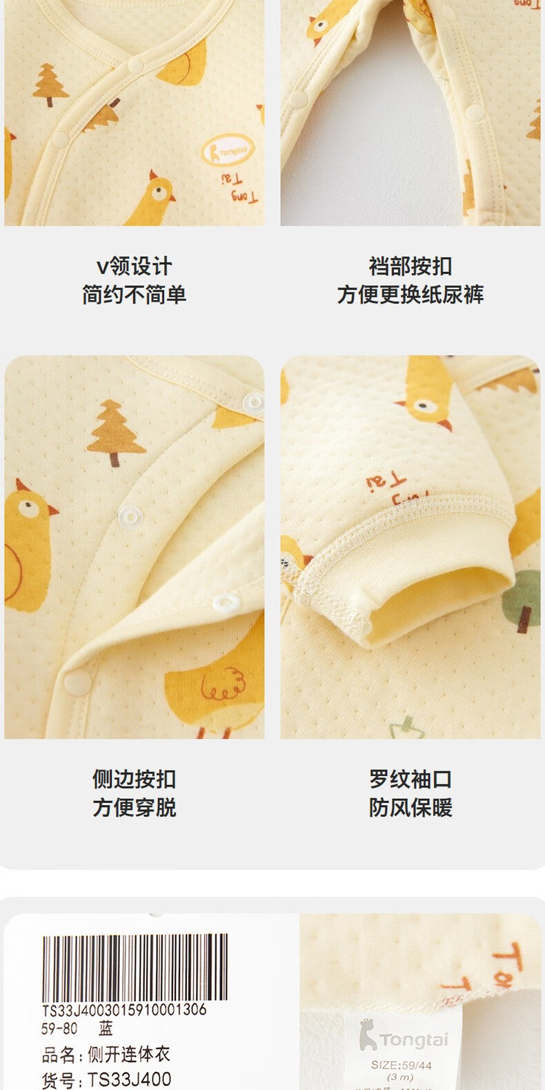 Tongtai Baby Jumpsuit Autumn and Winter Pure Cotton Baby Clothes Home Underwear Offset Long Sleeve Padded Romper Suit Blue 73cm (recommended height 66-75cm for 5-12 months)