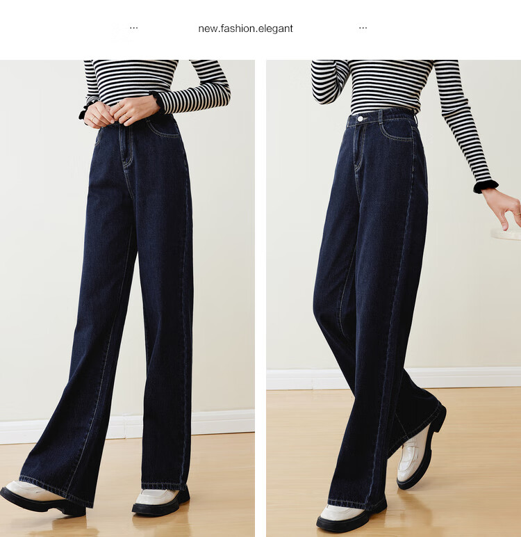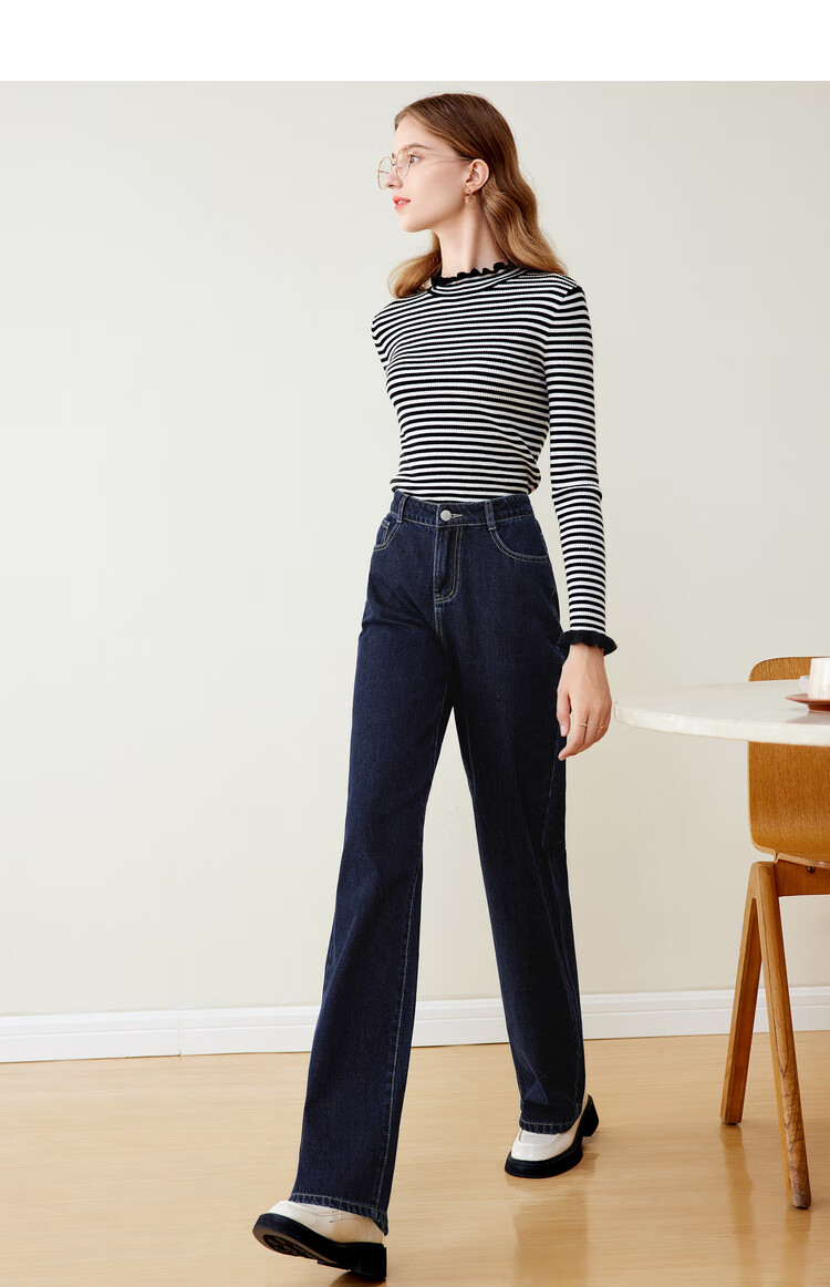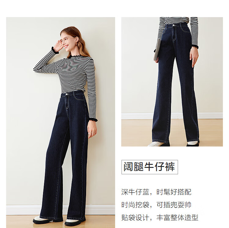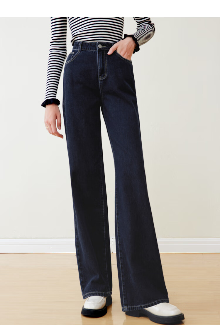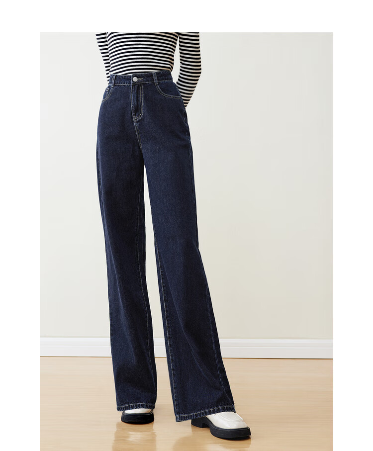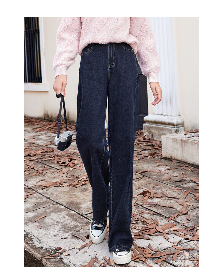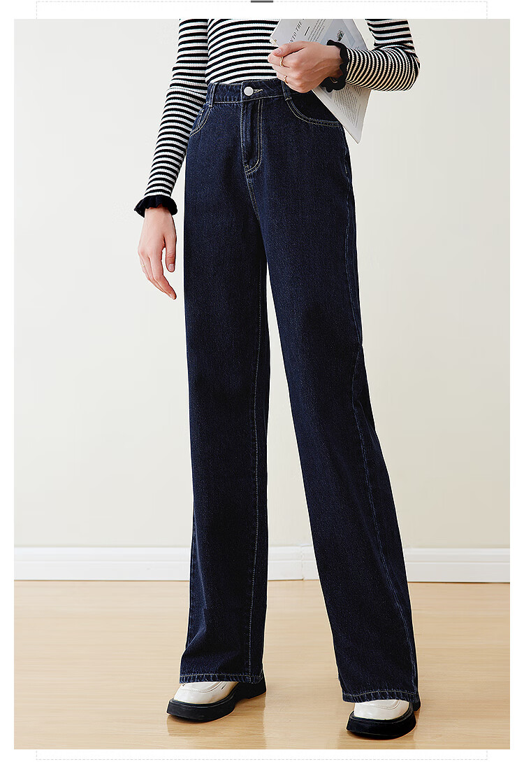 Betu women's new winter jeans versatile high-waisted slim straight wide-leg pants for women 2311T55 dark denim blue M