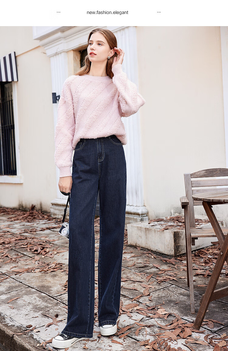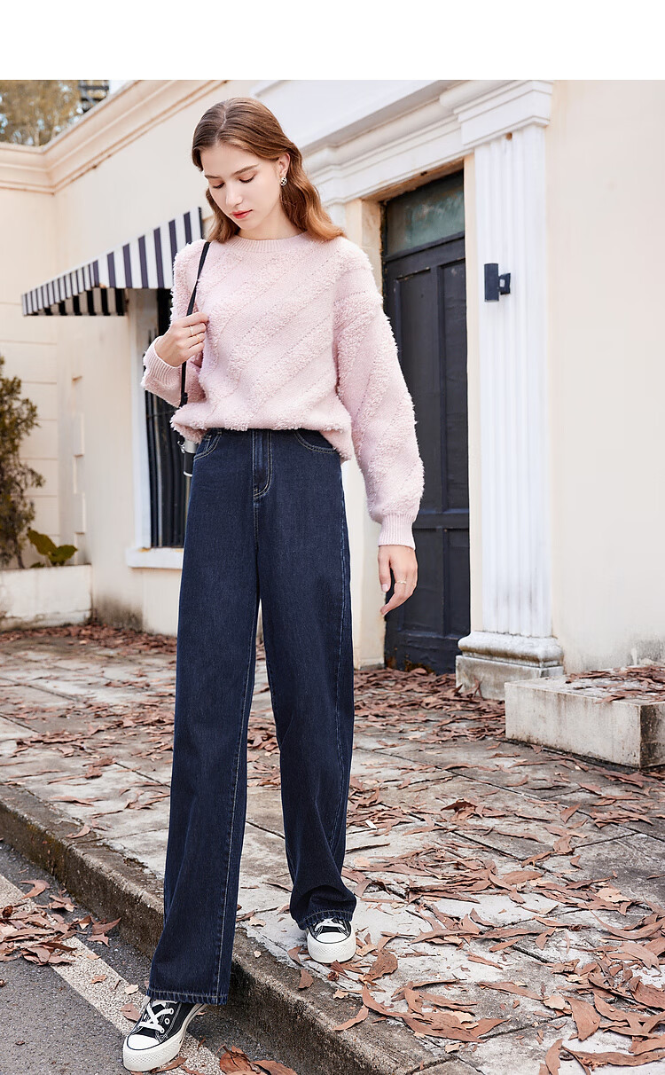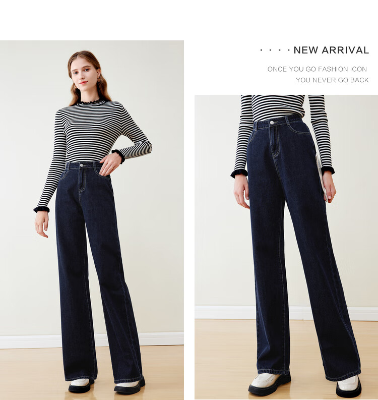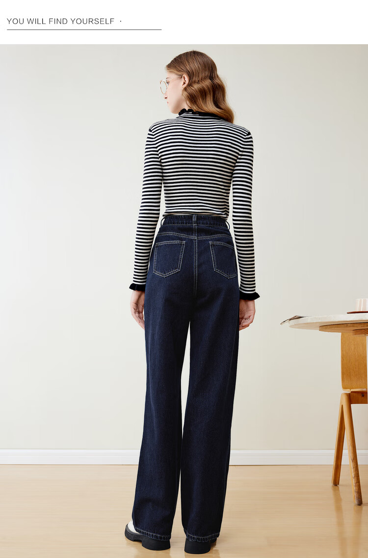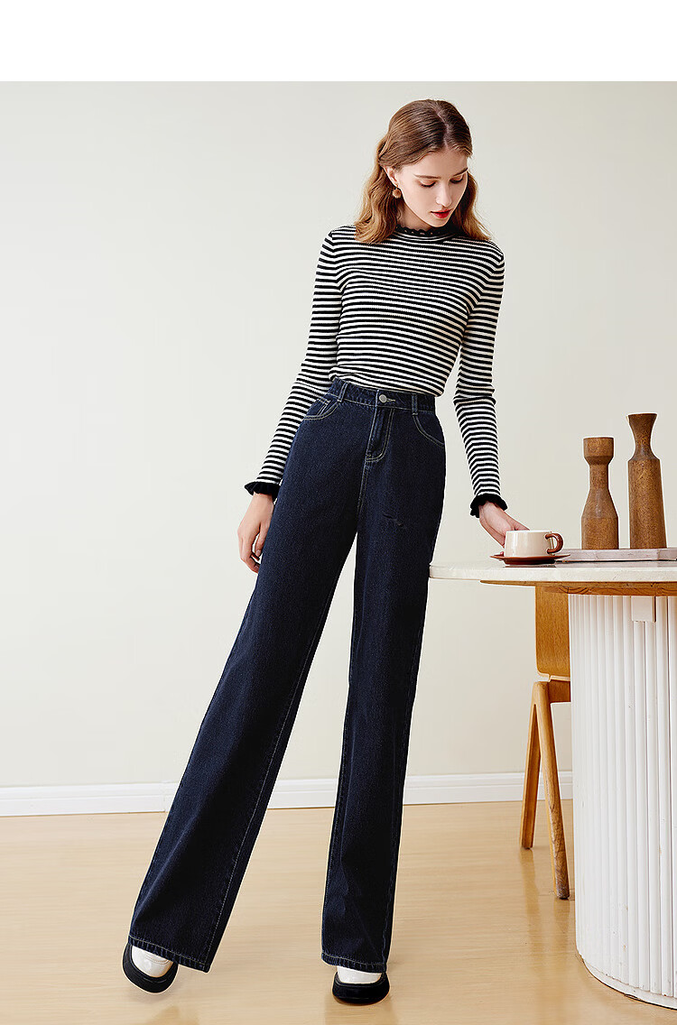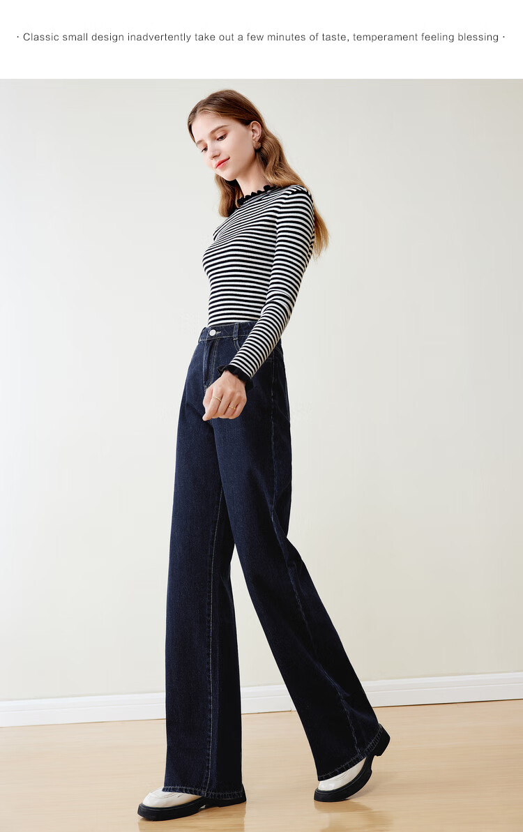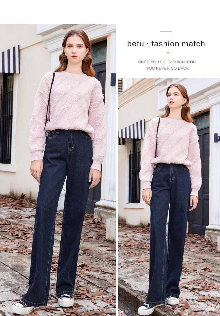 Betu women's new winter jeans versatile high-waisted slim straight wide-leg pants for women 2311T55 dark denim blue M