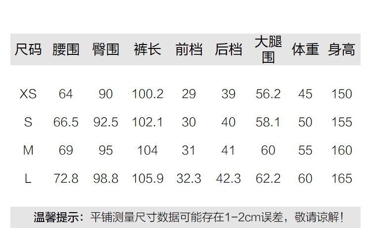 Outseam (cm) 99 cm 101.5 cm 104 cm 106.5 cm 109 cm