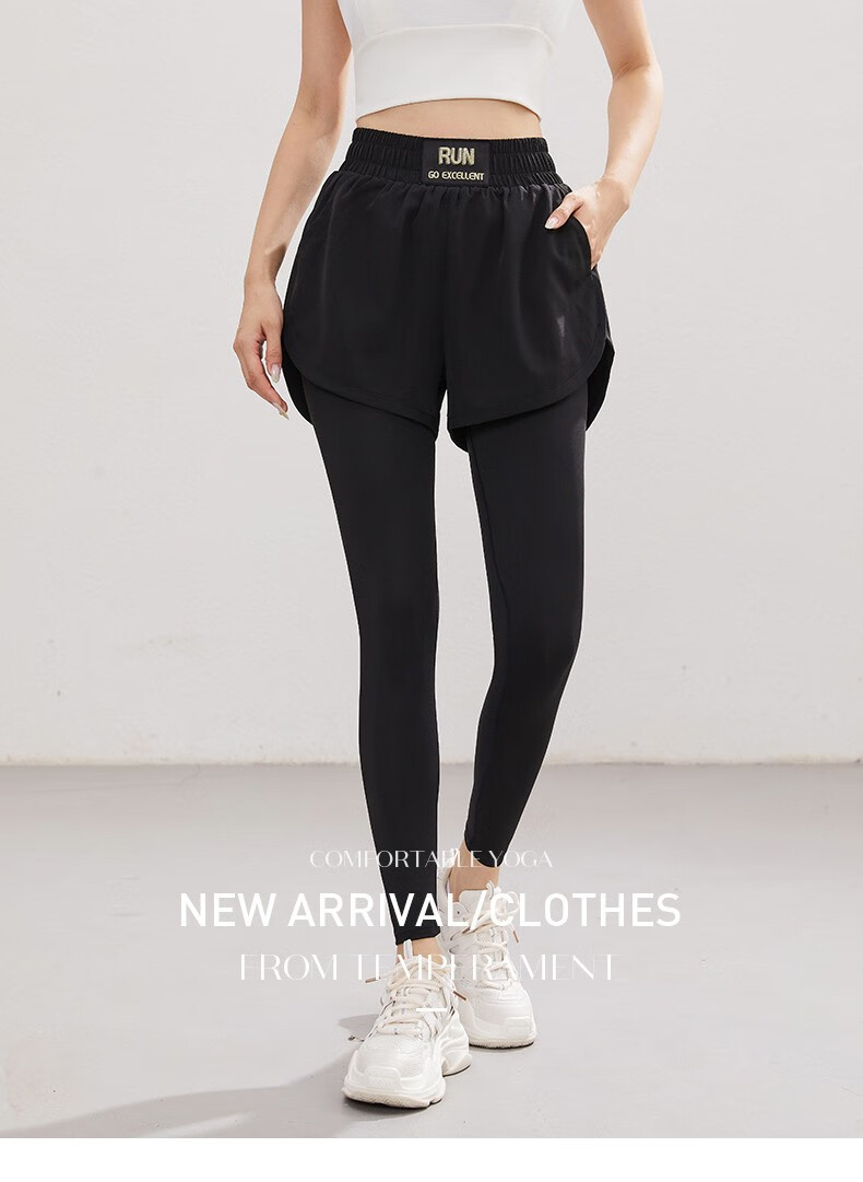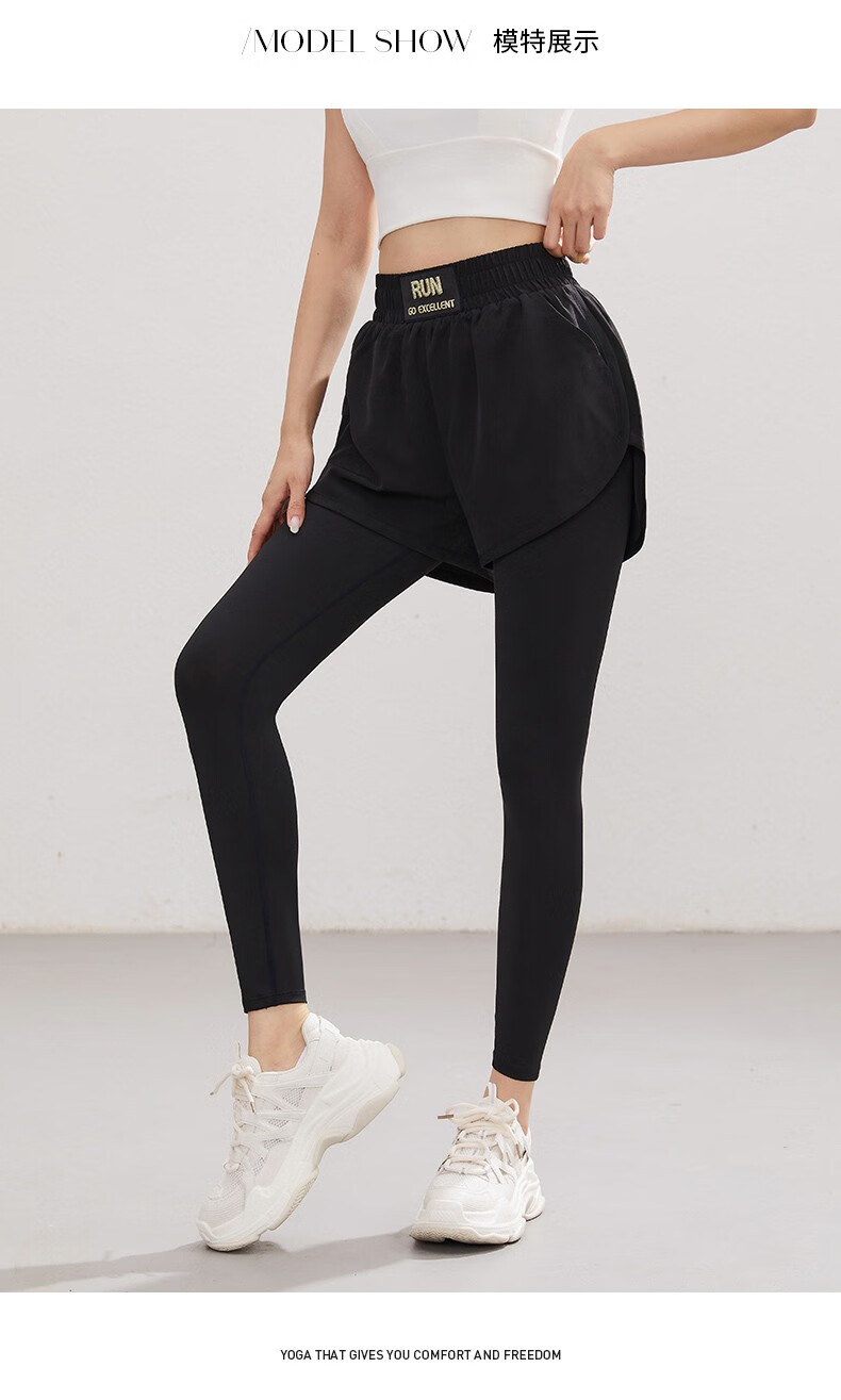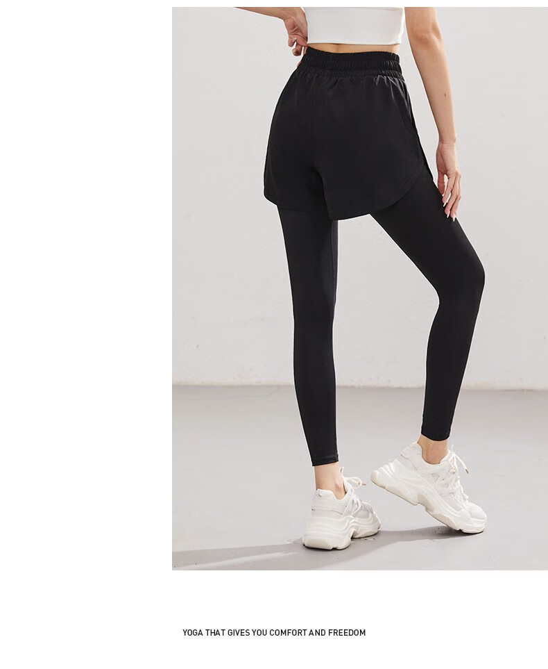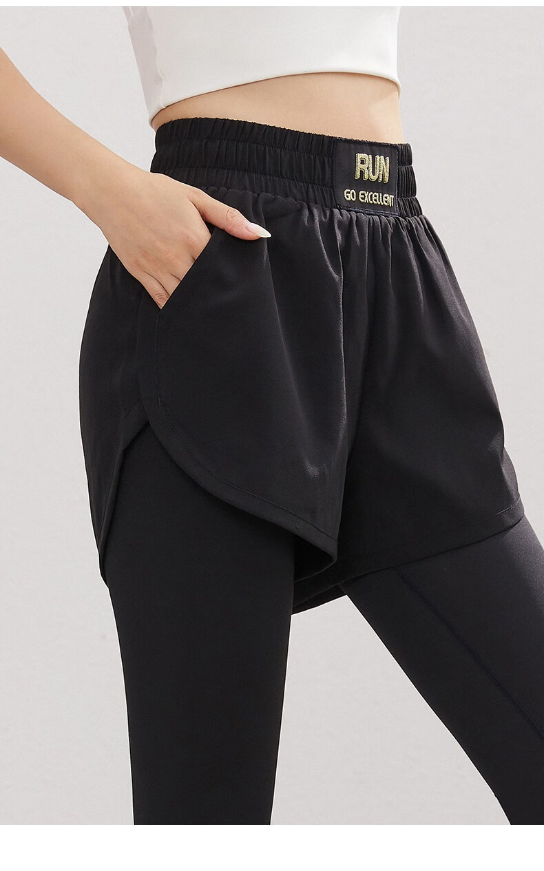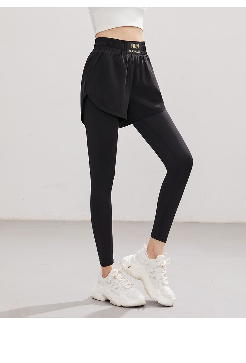 Vansydical Women's Fitness Pants High Elasticity Slimming Breathable Running Pants Sports Training Quick-Drying Anti-Exposed Fake Two-Piece Yoga Pants FBF2339402 Titanium Gray L (Recommended 105-120 Jin Jin equals 0.5 kg)