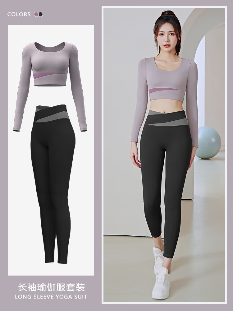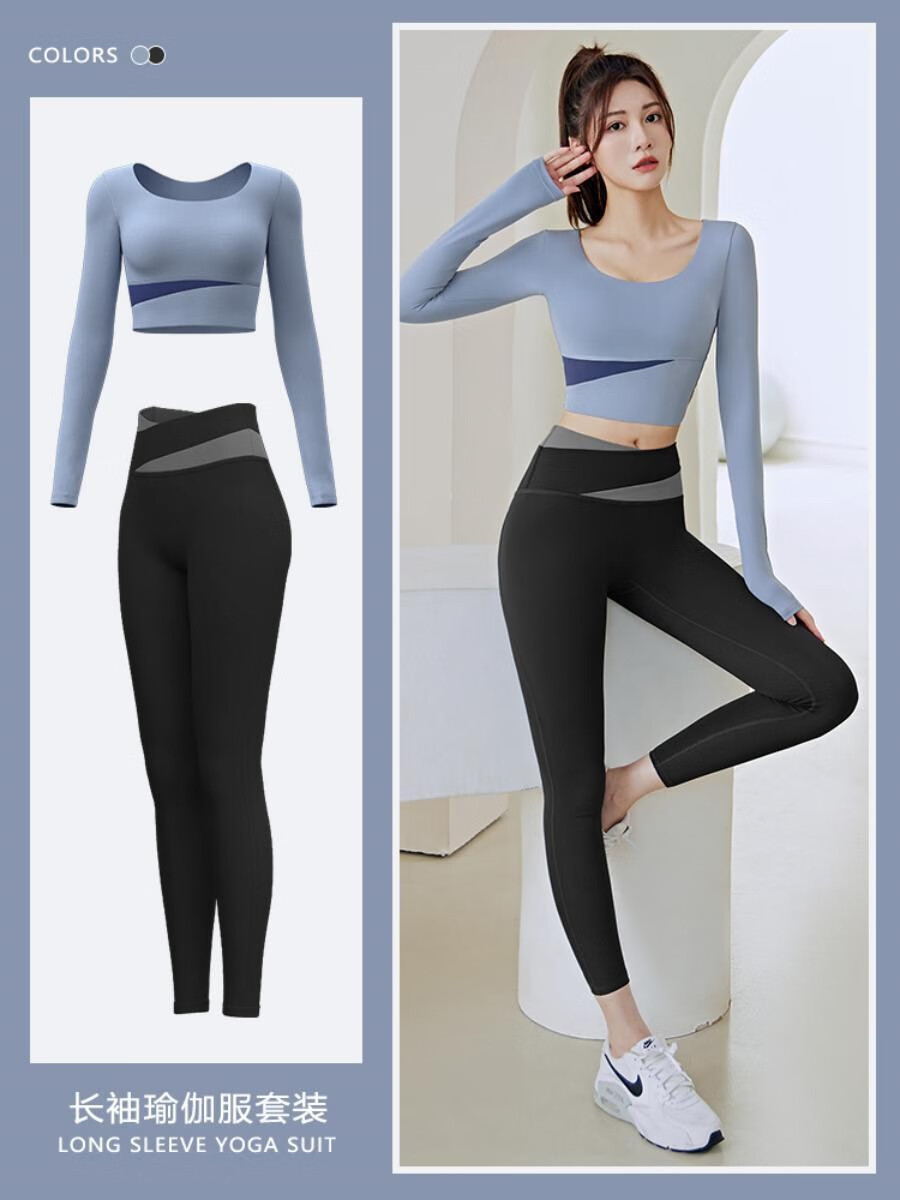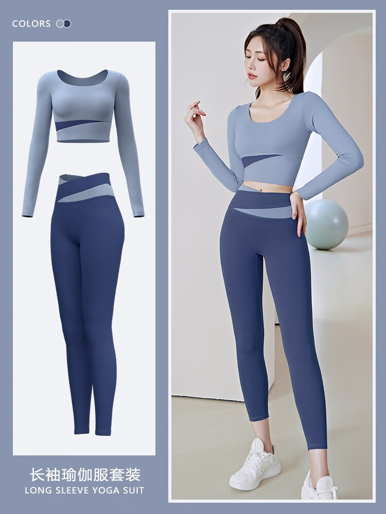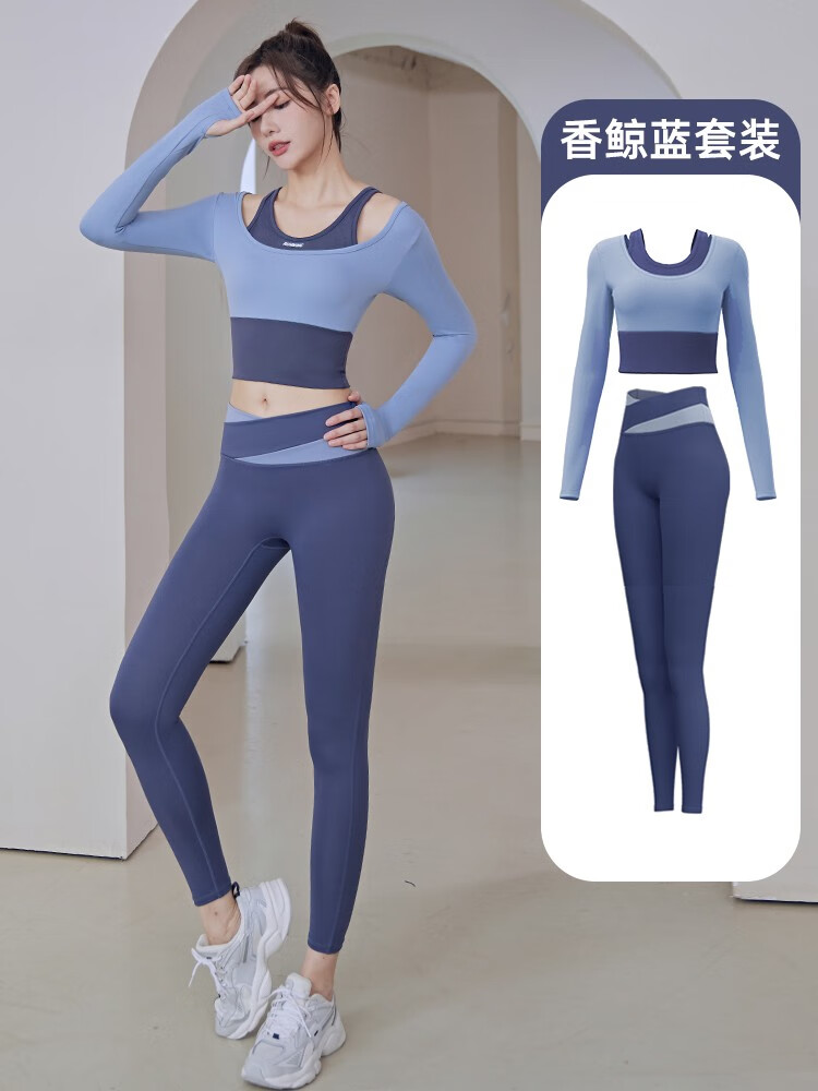 Jincheng yoga clothes for women in spring and autumn running sports high-end Pilates training long-sleeved tops new fitness suit K002 long-sleeved suit gray lake blue + scented whale blue S (recommended 85-95 Jin Jin equals 0.5 kg)