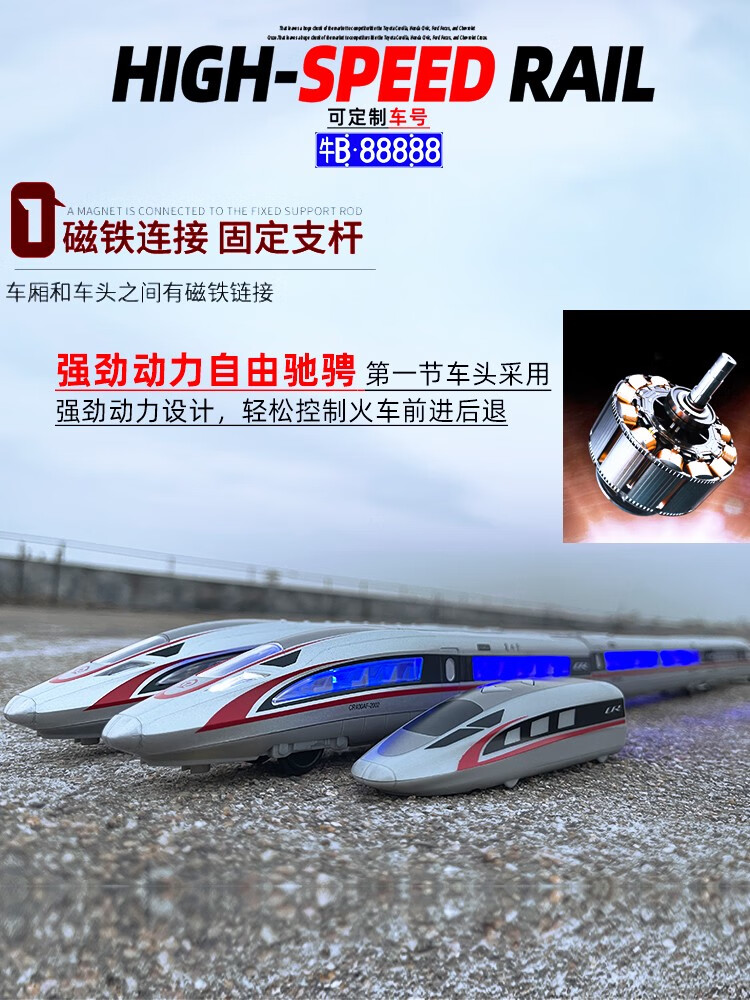 Kaiwei Fuxing High Speed Rail Alloy Model Train Track EMU Sound and Light Children's Toy Gift Ornaments Collection Fuxing Three Sections + Remote Control