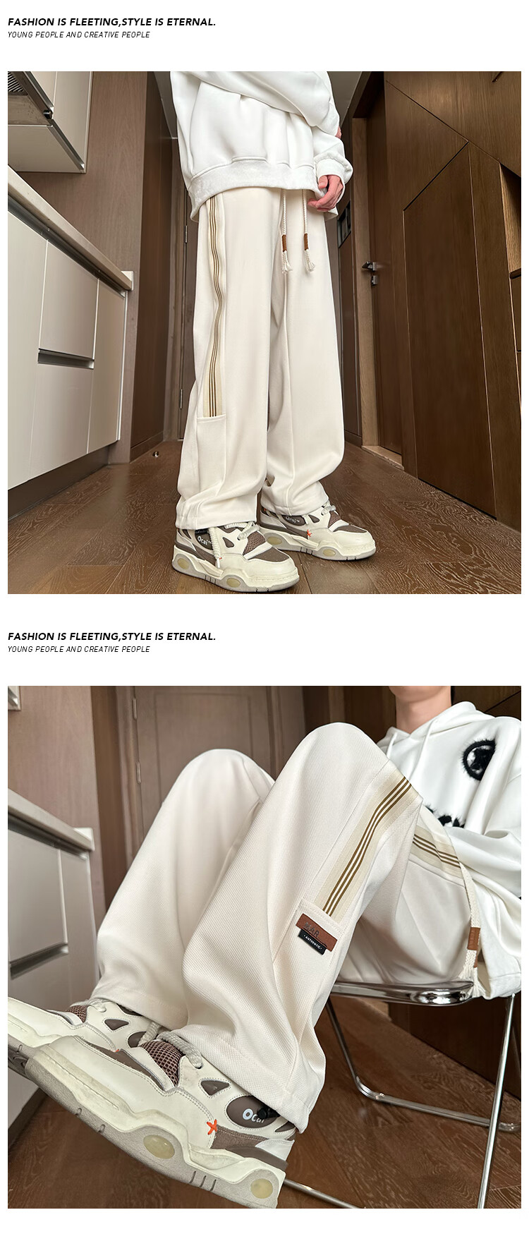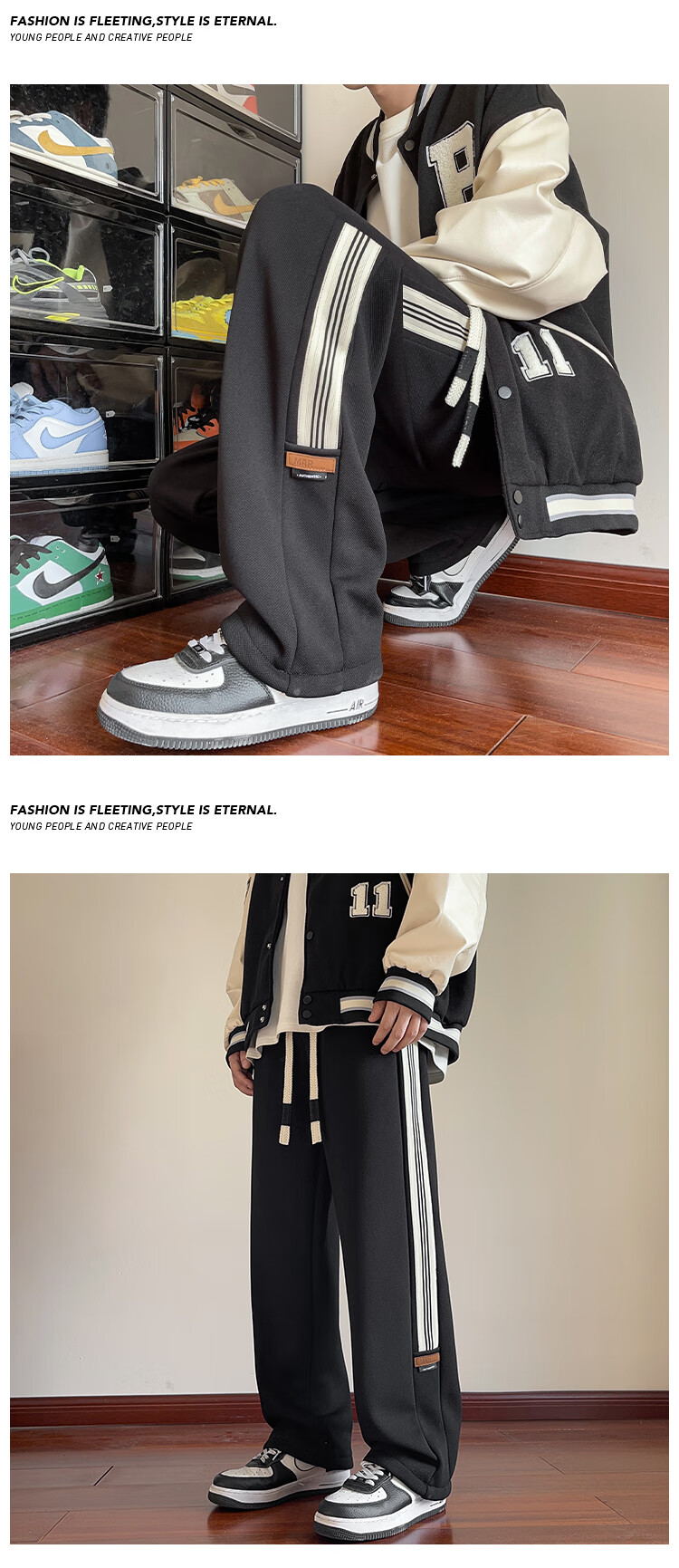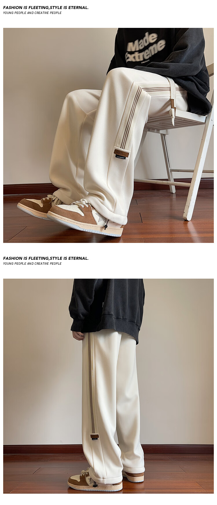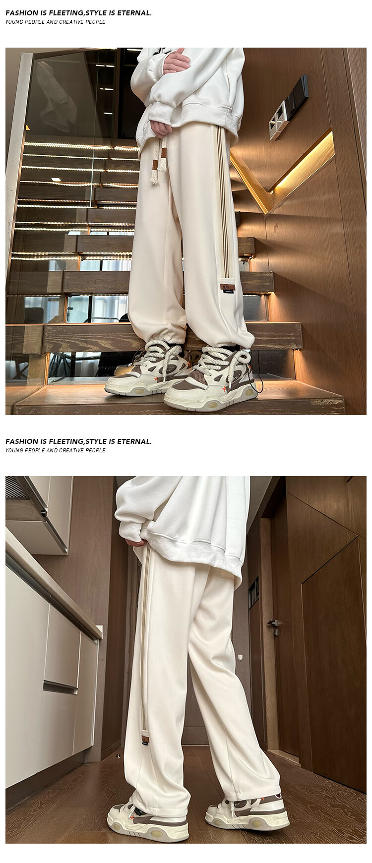 Katuchi American style velvet thickened striped casual pants for men in autumn and winter loose trendy straight wide-leg sports sanitary trousers beige-velvet XL recommended 130-150Jin Jin equals 0.5 kg