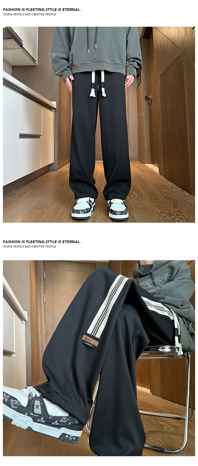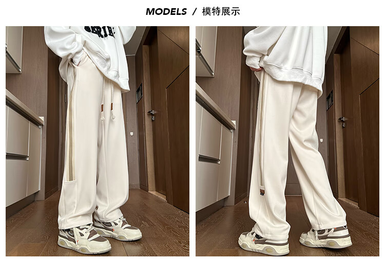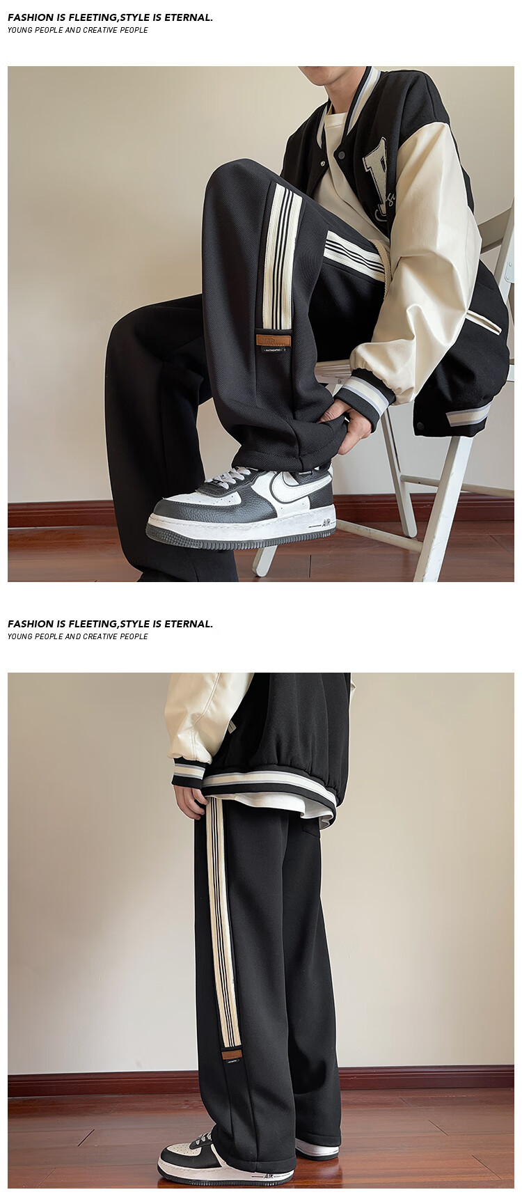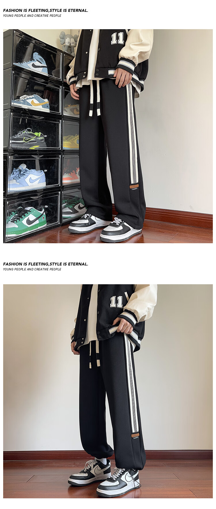 Katuchi American style velvet thickened striped casual pants for men in autumn and winter loose trendy straight wide-leg sports sanitary trousers beige-velvet XL recommended 130-150Jin Jin equals 0.5 kg