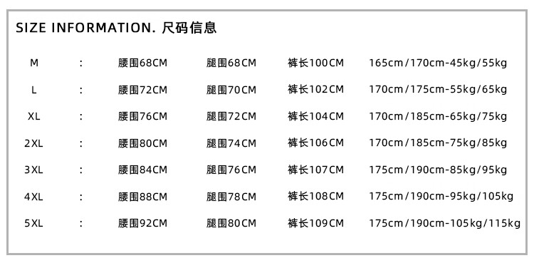 China (cm) 165 / 88-90 170 / 96-98 175 / 108-110 180 / 118-122 185 / 126-130