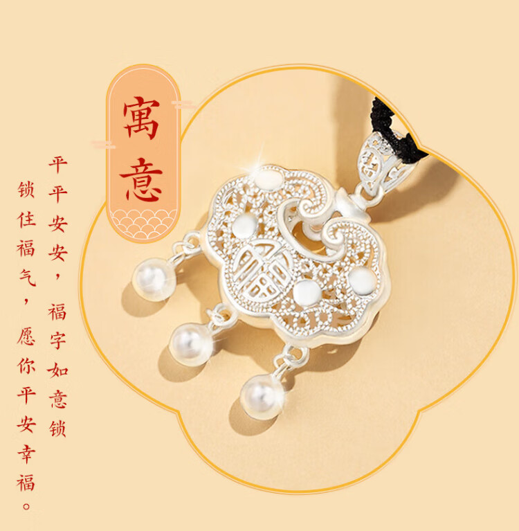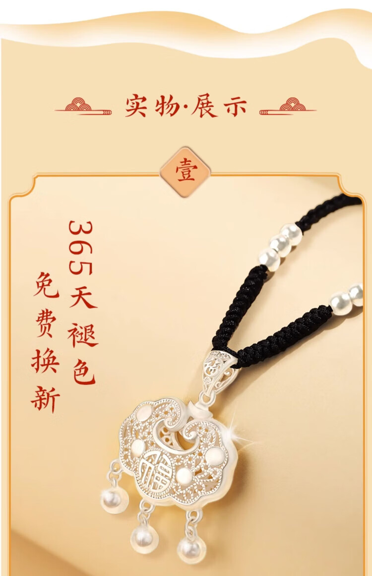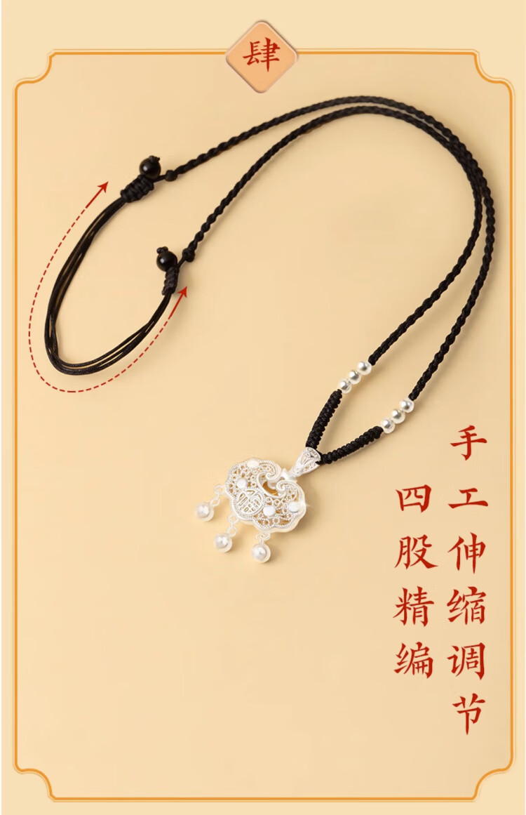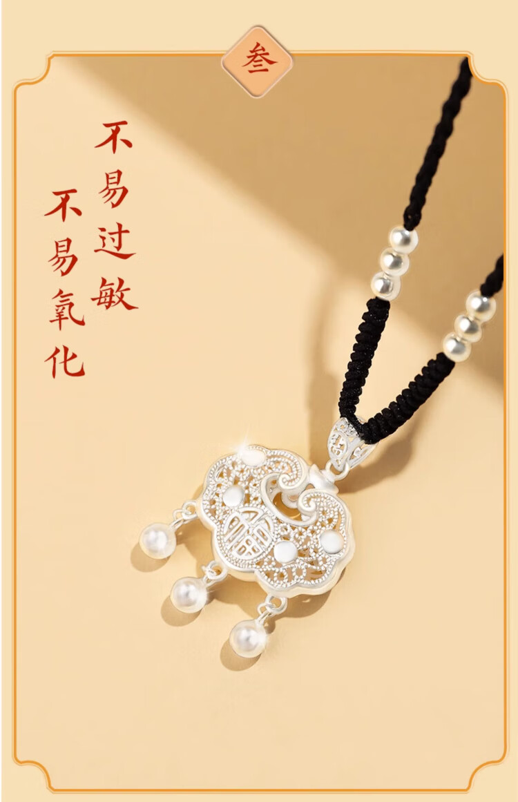 Shenglanxin sterling silver safety lock necklace women's foot silver lock adult longevity lock birthday Chinese Valentine's Day gift for girlfriend and wife anniversary safety lock necklace + certificate (single pendant 7g does not include rope) black rope style
