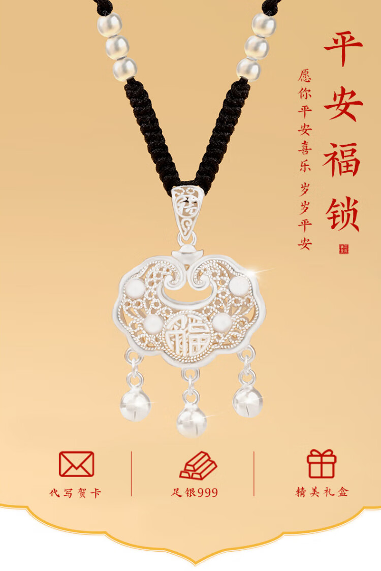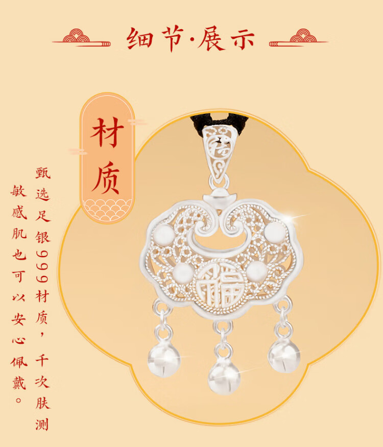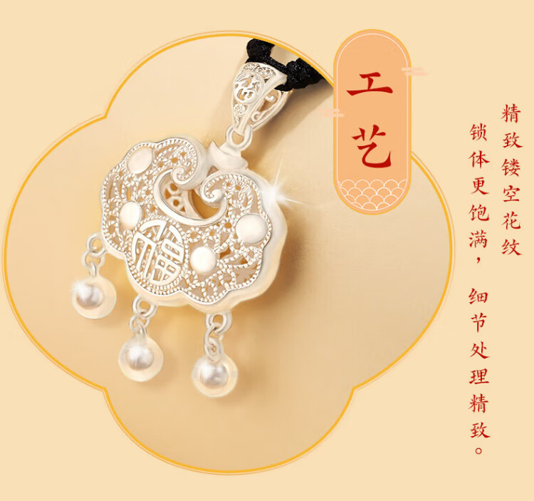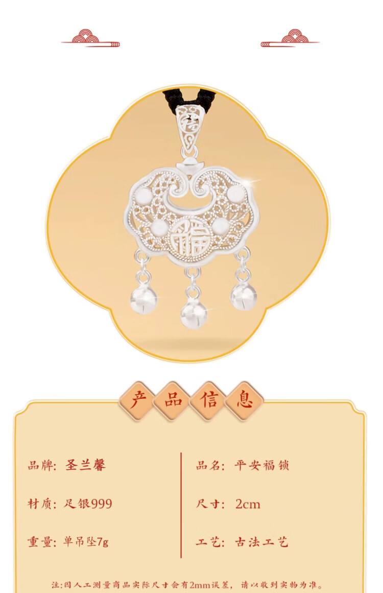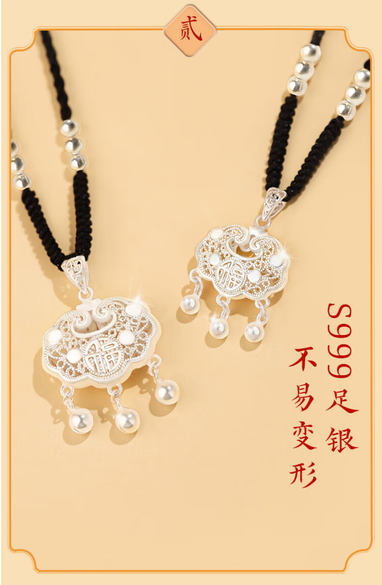 Shenglanxin sterling silver safety lock necklace women's foot silver lock adult longevity lock birthday Chinese Valentine's Day gift for girlfriend and wife anniversary safety lock necklace + certificate (single pendant 7g does not include rope) black rope style