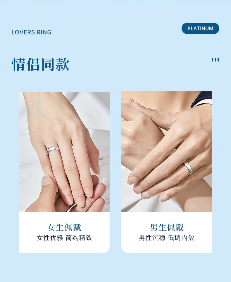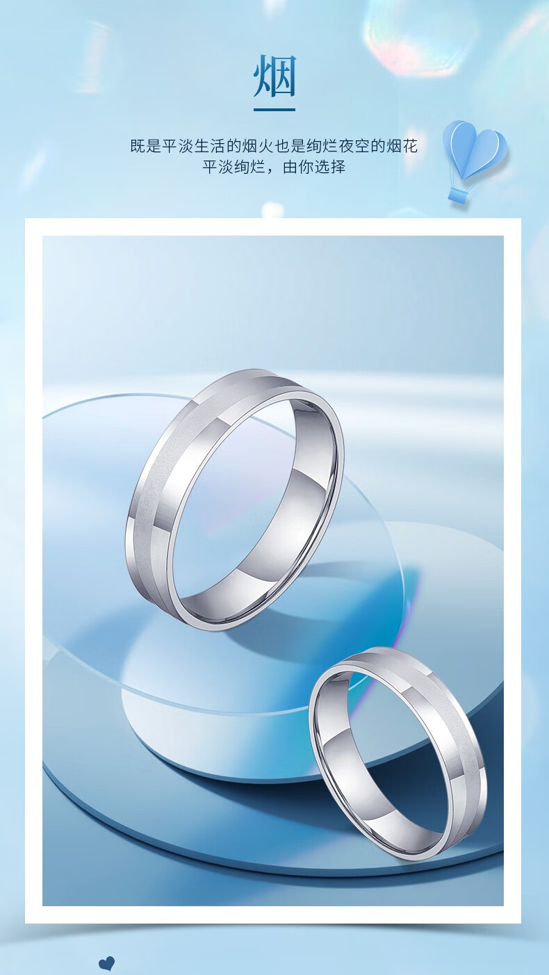 Luxury beads in stock sparkling smoke pt950 platinum ring men and women platinum couple rings wedding ring plain ring No. 13 4.43g
