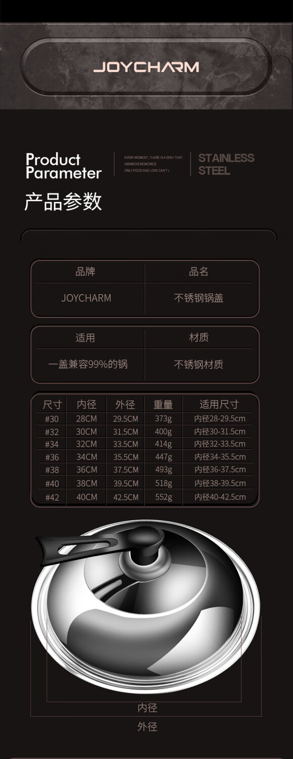 JOYCHARM pot lid household stainless steel stand-up lid high temperature cooking pot lid 30-32-34-40cm universal iron pot lid diameter 32cm pot lid / suitable for 30-31.5