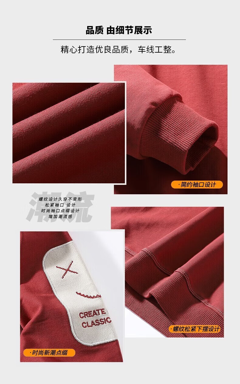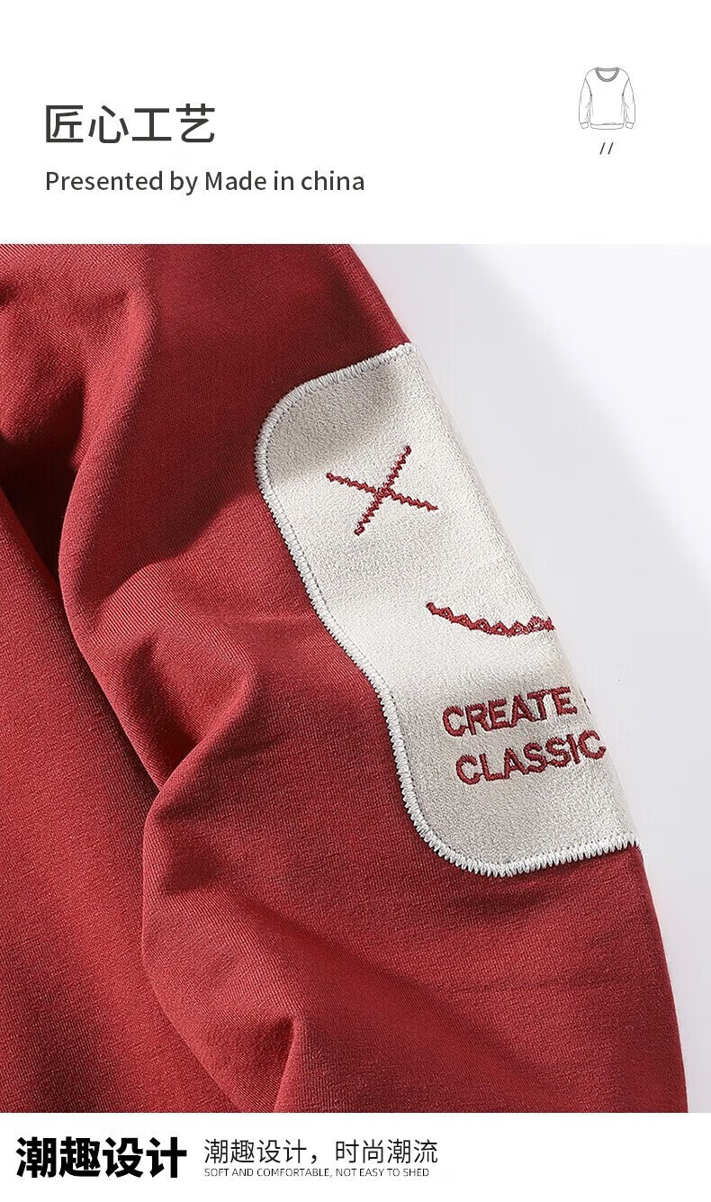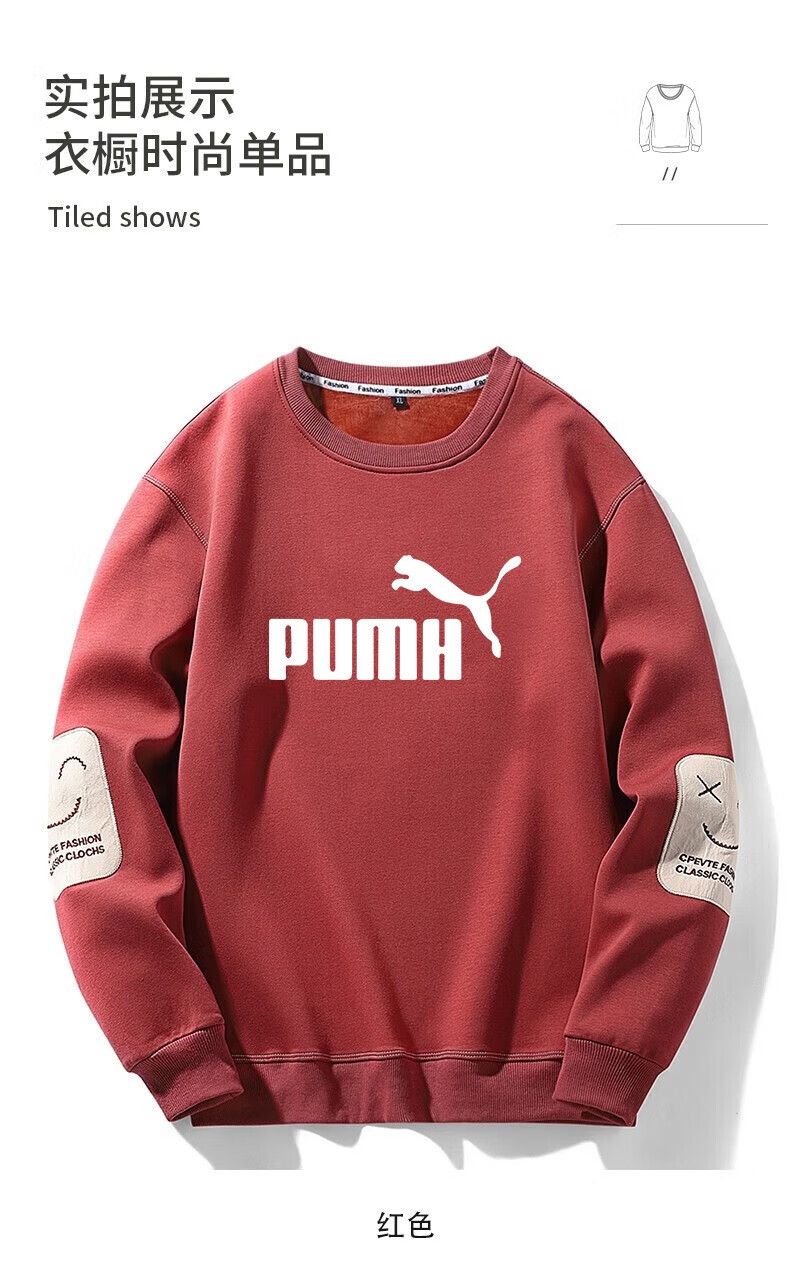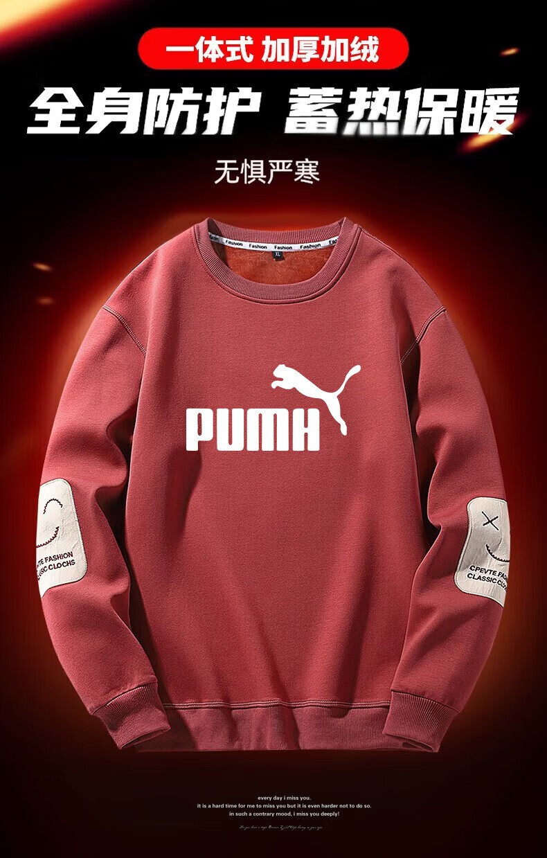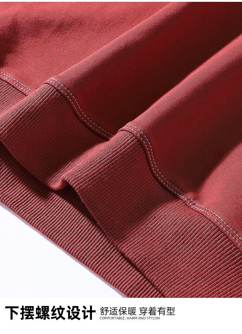 Men's sweatshirt autumn and winter thickened velvet round neck printed long-sleeved T-shirt men's large size casual bottoming shirt jacket suit brick red (spring and autumn) XL