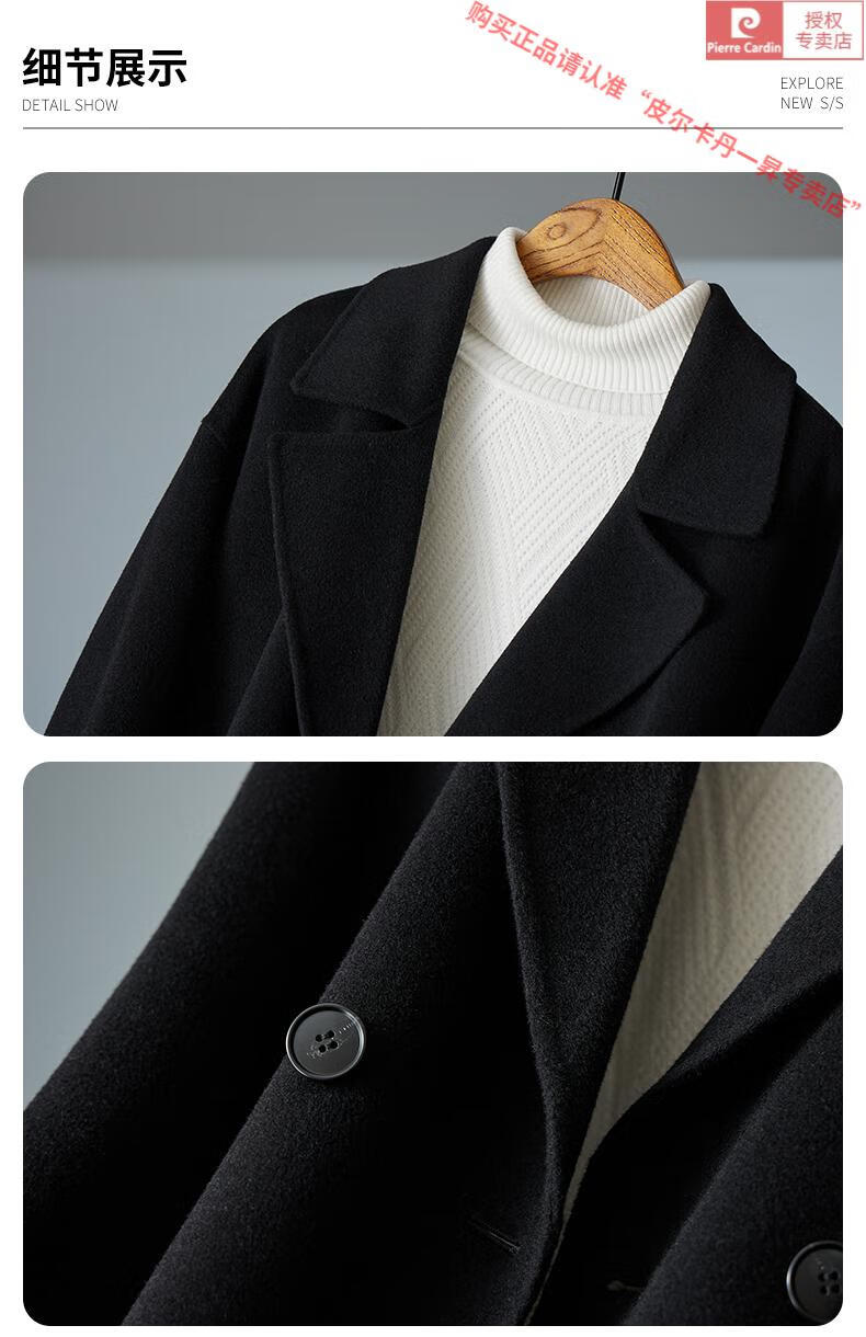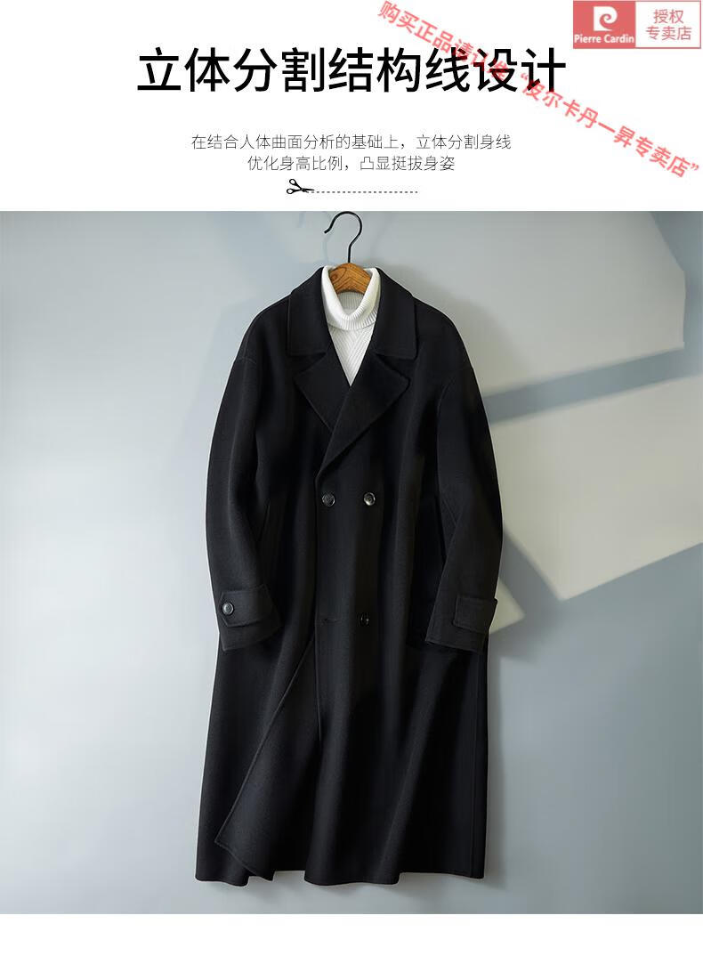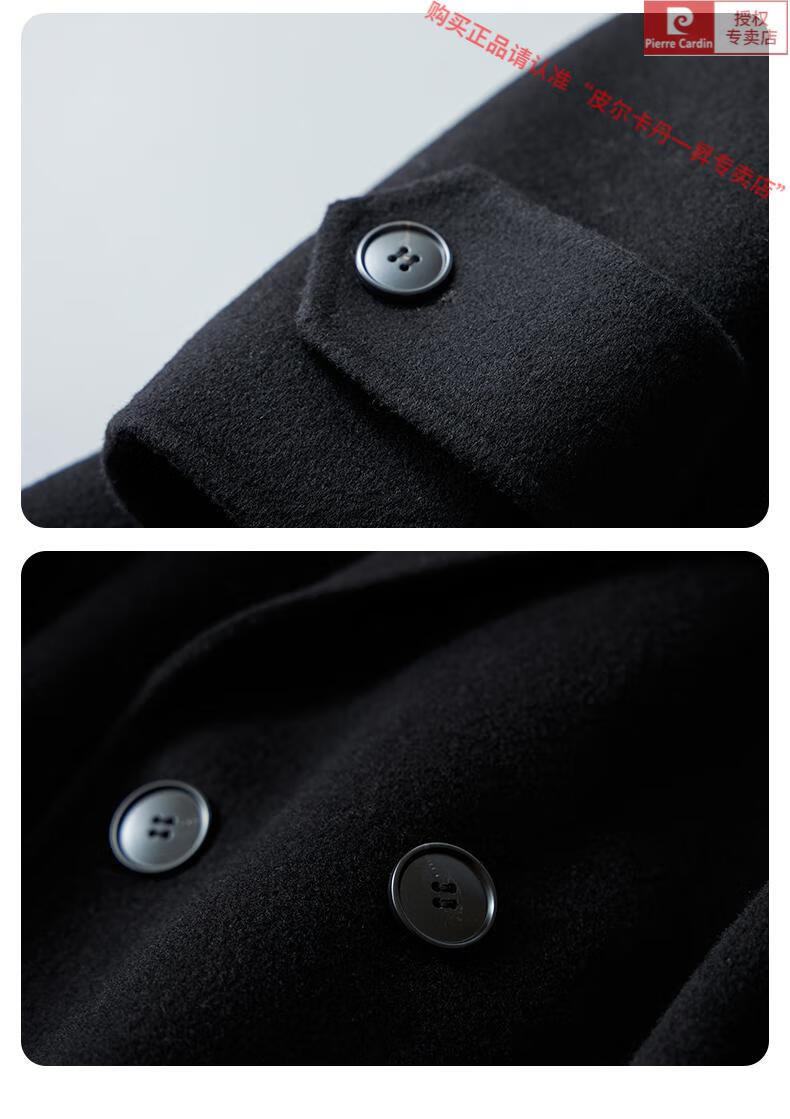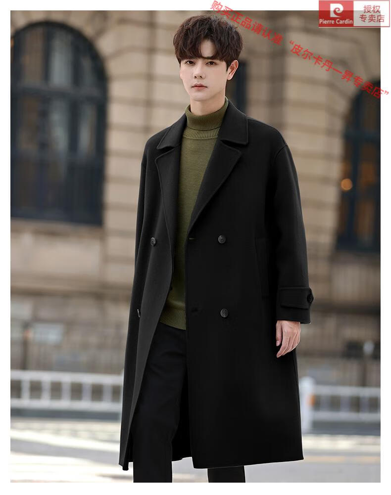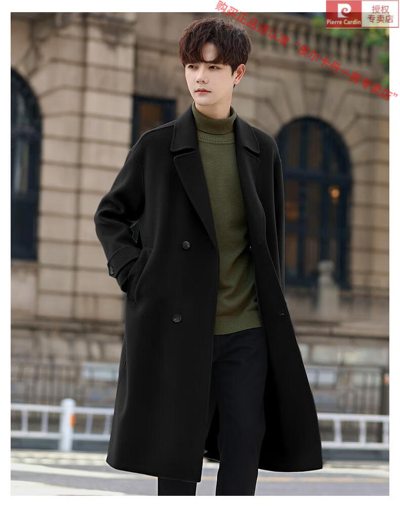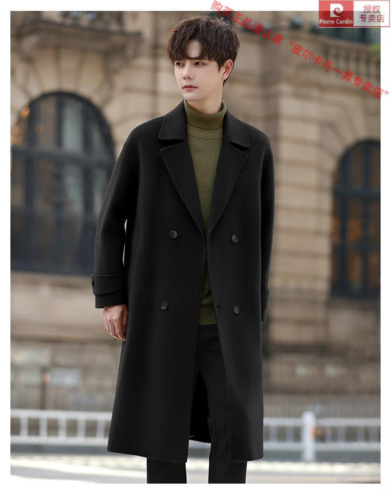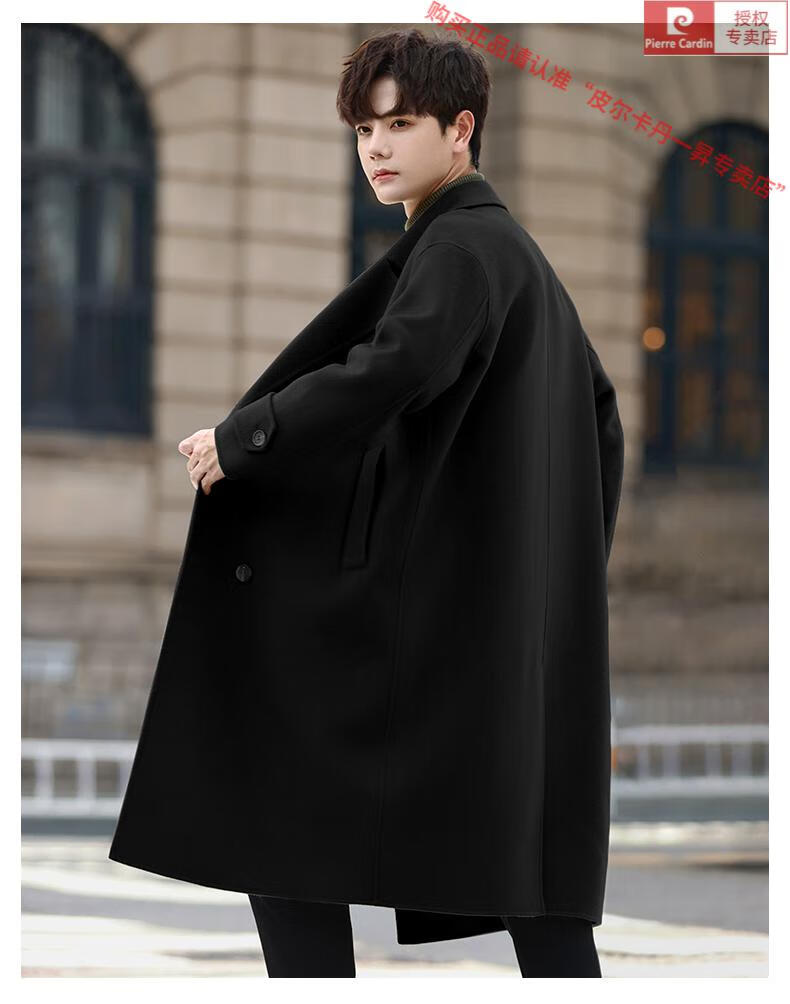 Pierre Cardin Warm Men's Double-sided Wool Coat Mid-Length Over-the-Knee Pure Wool Woolen Coat Windbreaker Thick and Loose in Winter Black L 175 (160-185Jin Jin equals 0.5kg)