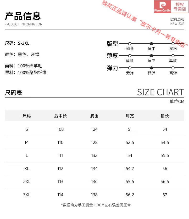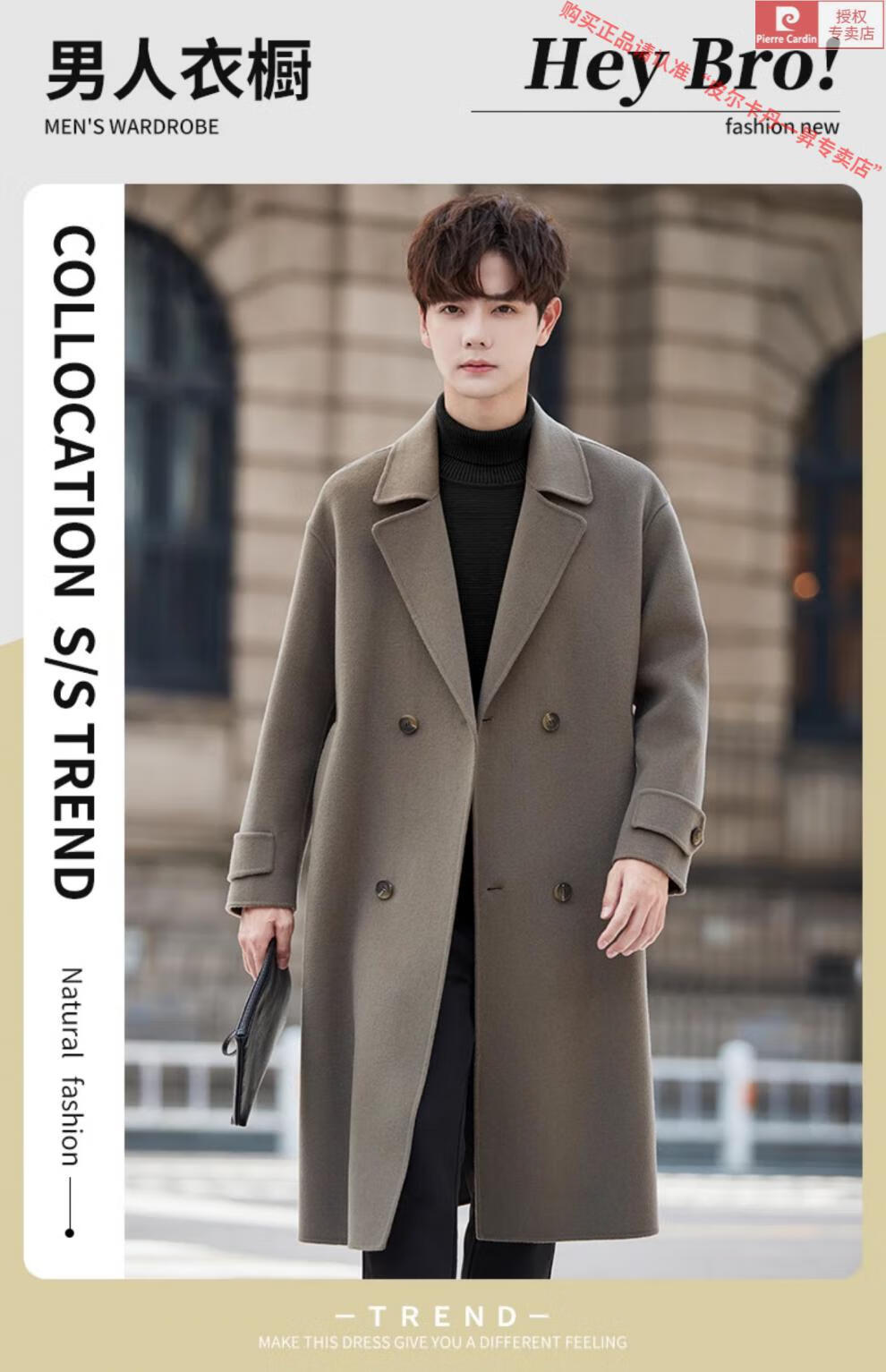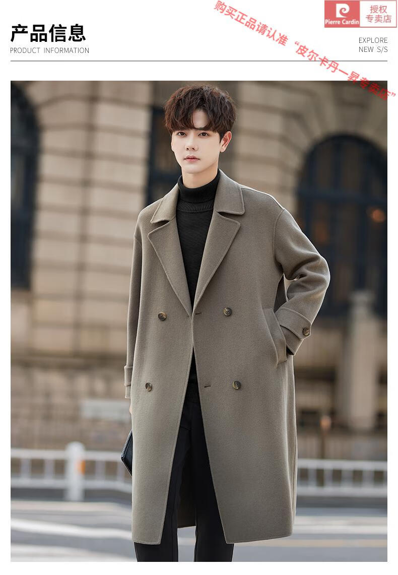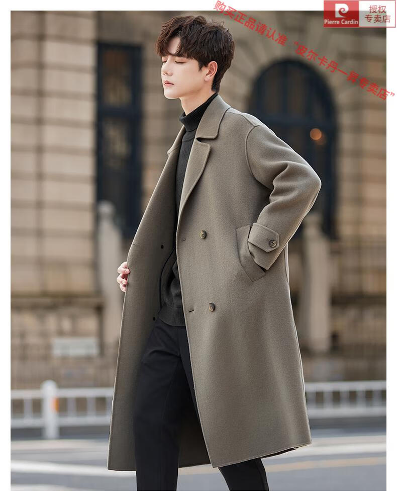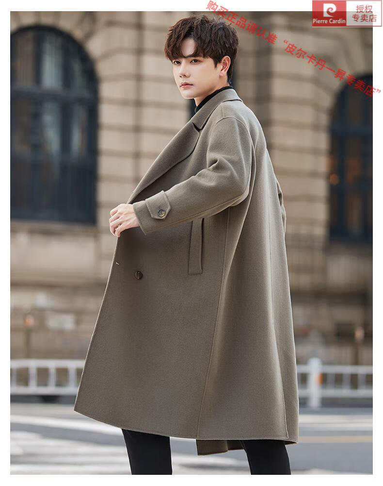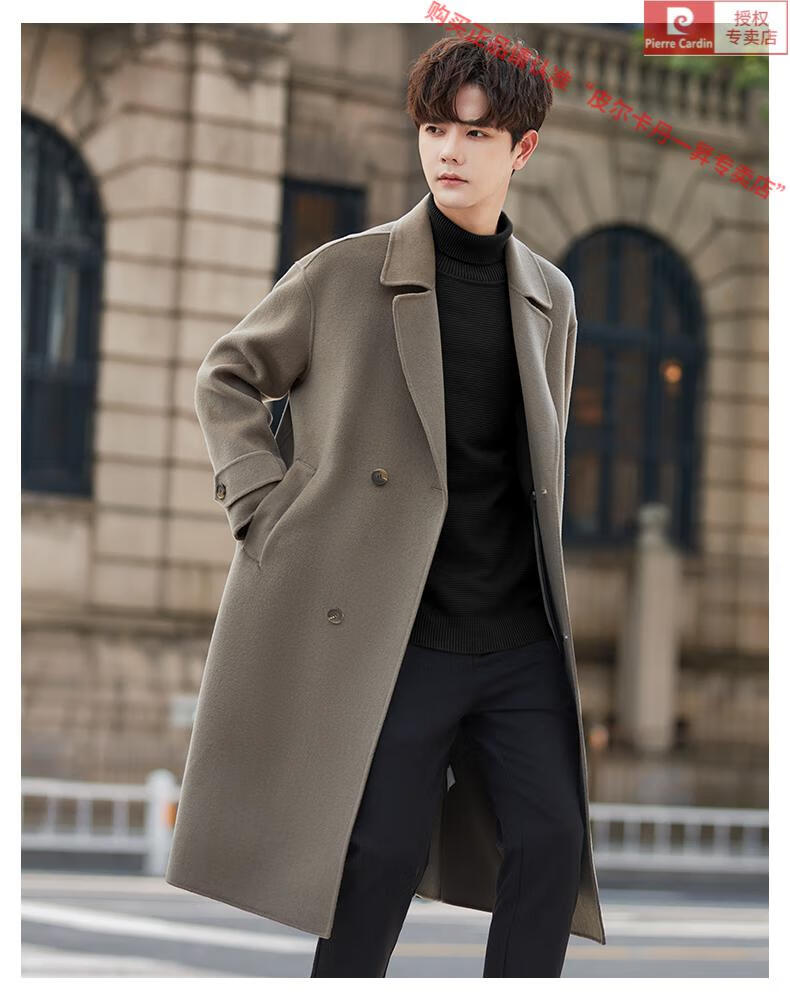 Pierre Cardin Warm Men's Double-sided Wool Coat Mid-Length Over-the-Knee Pure Wool Woolen Coat Windbreaker Thick and Loose in Winter Black L 175 (160-185Jin Jin equals 0.5kg)