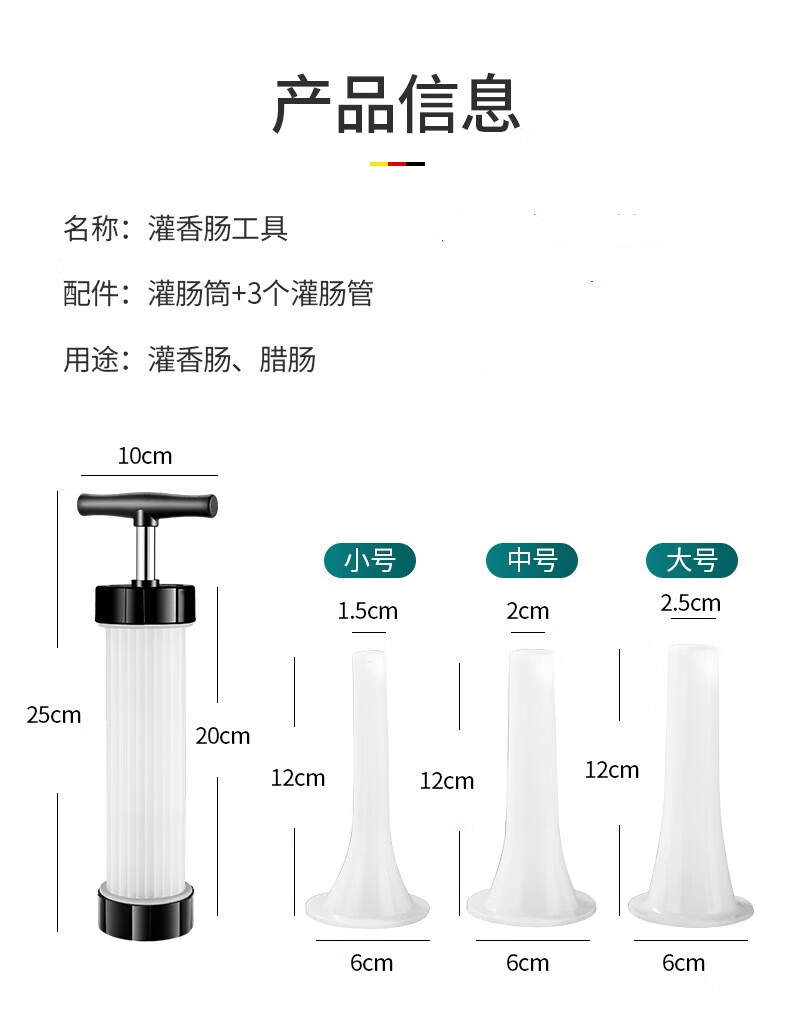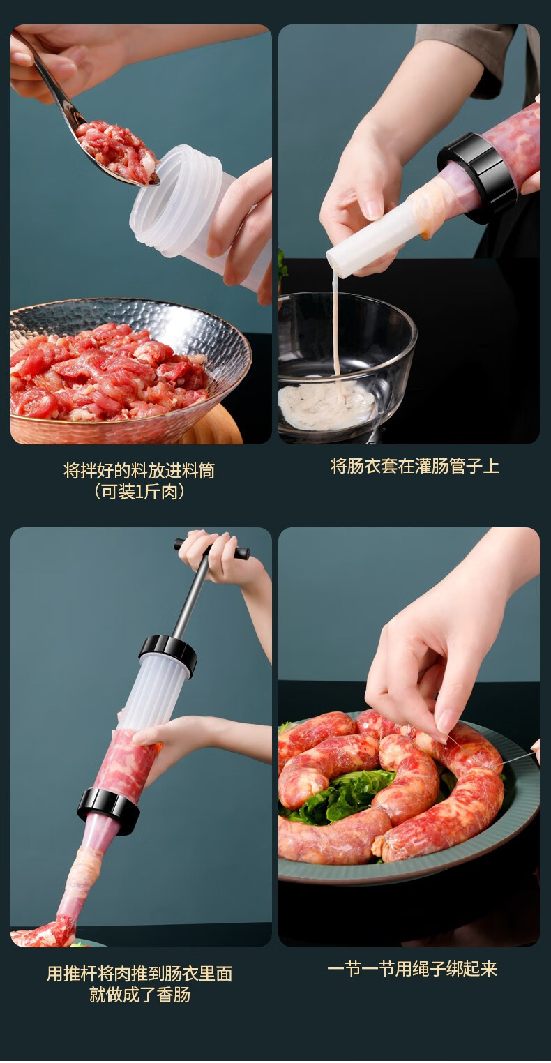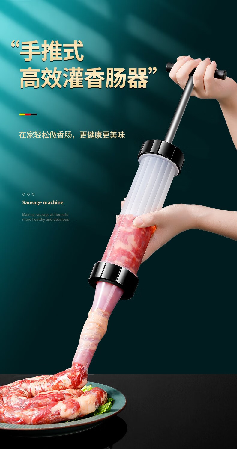 Iron Helper 304 stainless steel sausage machine household manual sausage machine sausage machine meat sausage casing sausage filling tool jar hand push sausage machine with 3 enema tubes