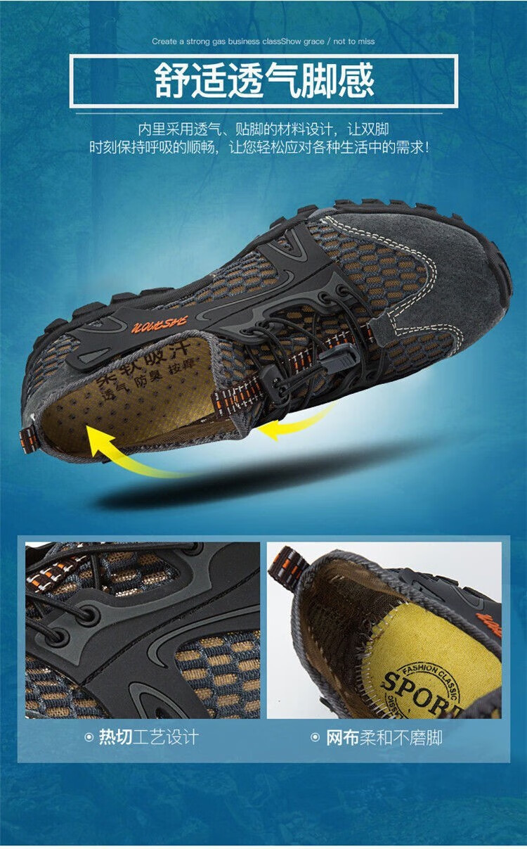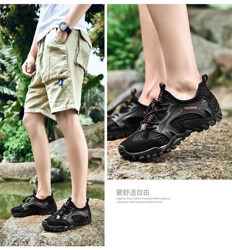 Jihua special training casual shoes men's shoes beach shoes wading shoes summer ultra-light hiking shoes fishing shoes breathable outdoor black size 42
