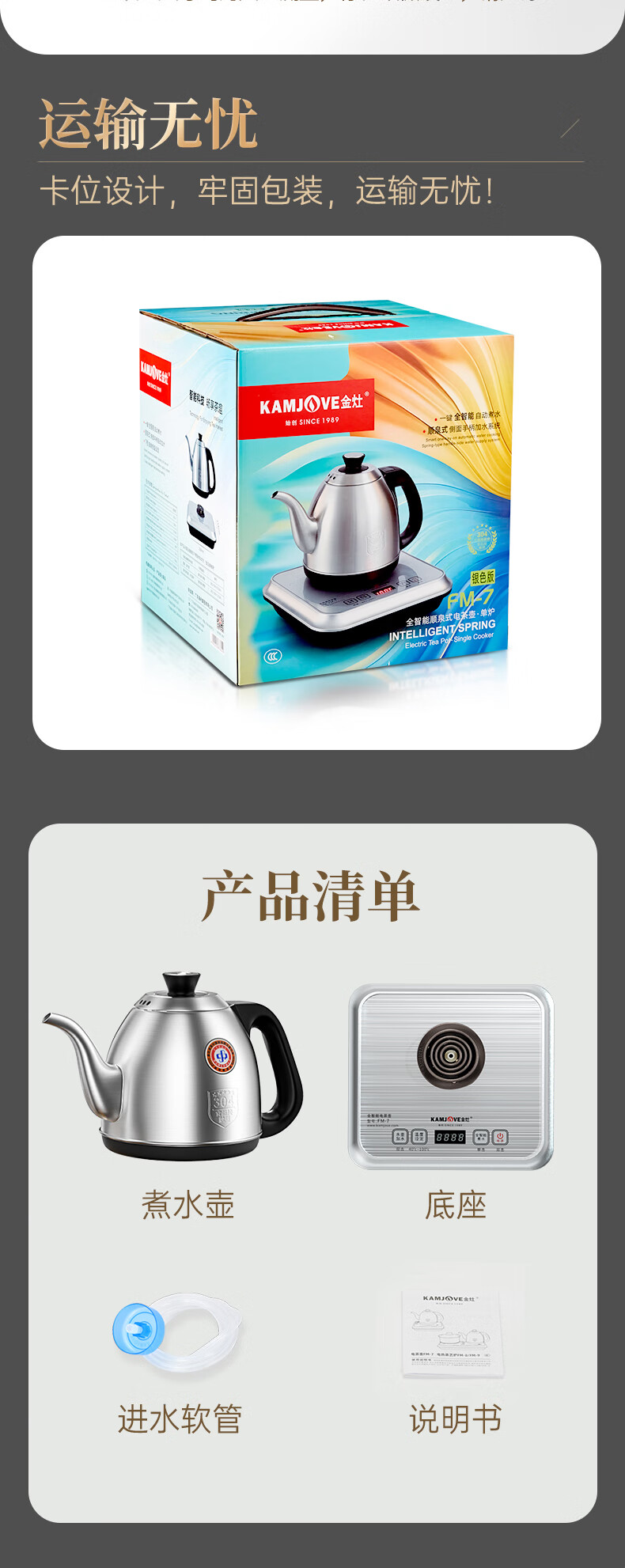 KAMJOVE fully automatic handle top water kettle electric tea stove boiling water teapot tea set intelligent constant temperature complete set of teapot FM-7 silver 0.9L