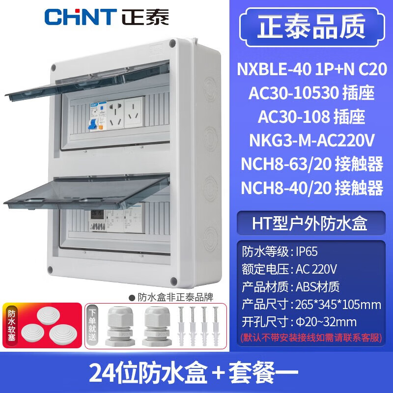Chint (CHNT) exposed assembly electrical box outdoor waterproof distribution cabinet household switch circuit breaker dustproof box (box not Chint) DLQFSH-7067-1 five-position waterproof box (non-Chint)