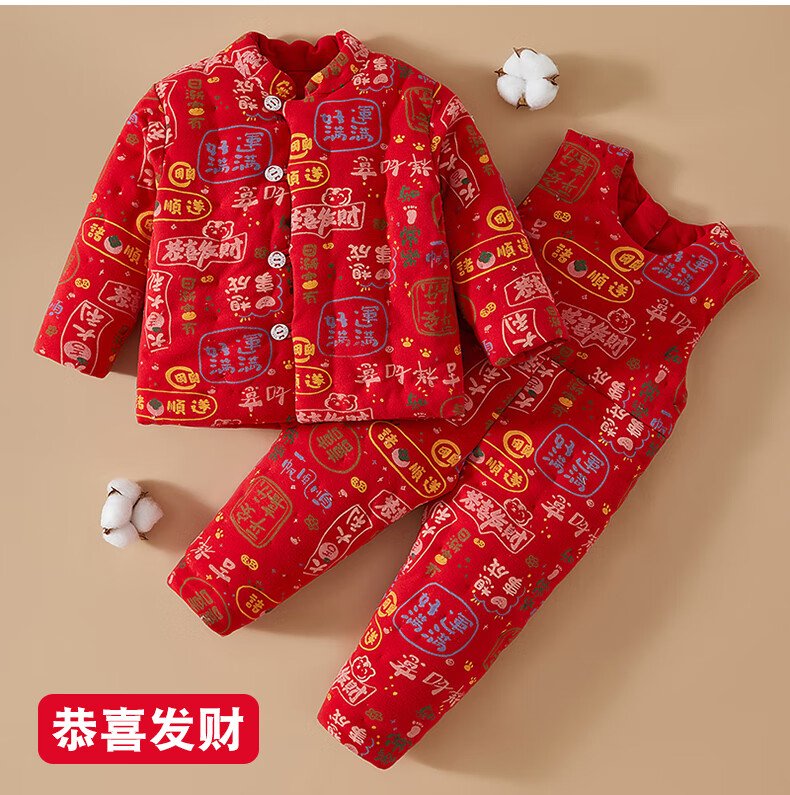 Mianguduo baby's handmade cotton clothes, pure cotton suspenders, men's and women's children's cotton jackets and pants, thickened infant cotton clothes suits, winter Jixiang Ruyi 100 yards (suitable for 2-3 years old)