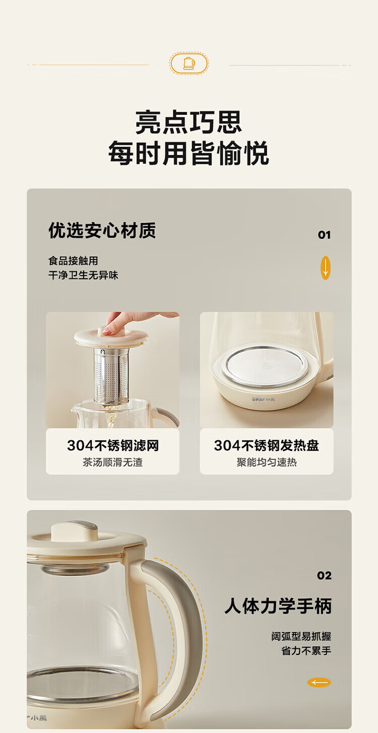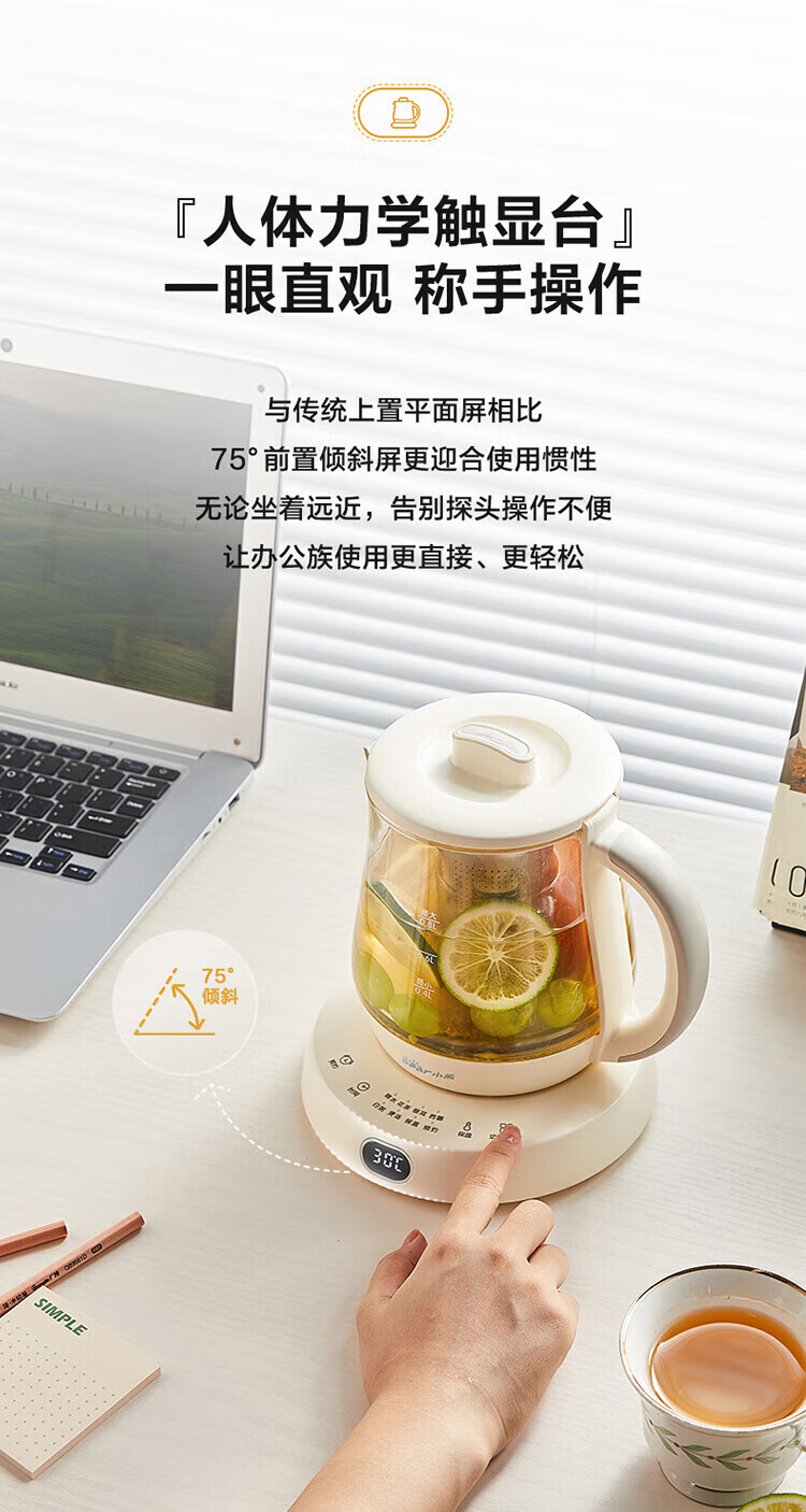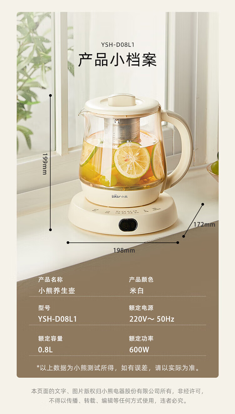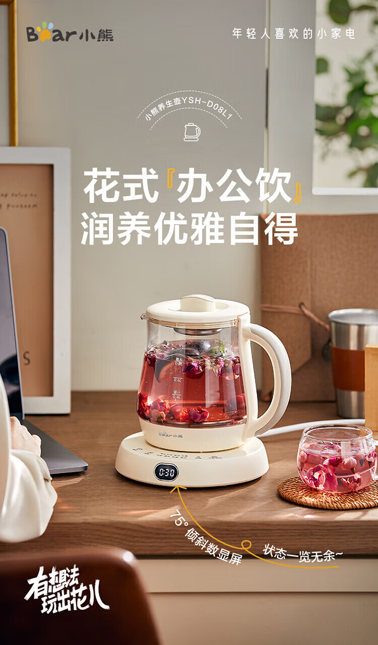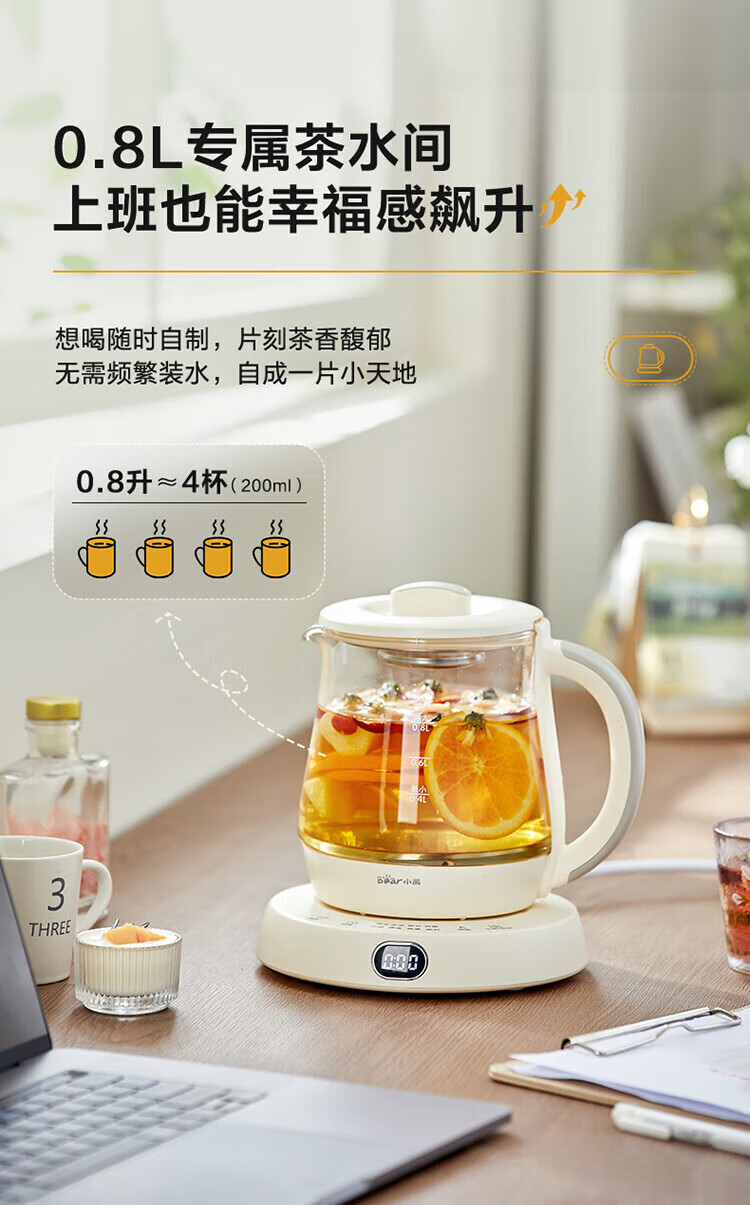 Bear Health Pot Mini Flower Teapot Office One Person Small Capacity Tea Maker Insulated Constant Temperature Tea Kettle Small Glass Electric Kettle Desktop Mid-Autumn Festival Gift YSH-D08L1 Multi-stage Constant Temperature 0.8L With Filter