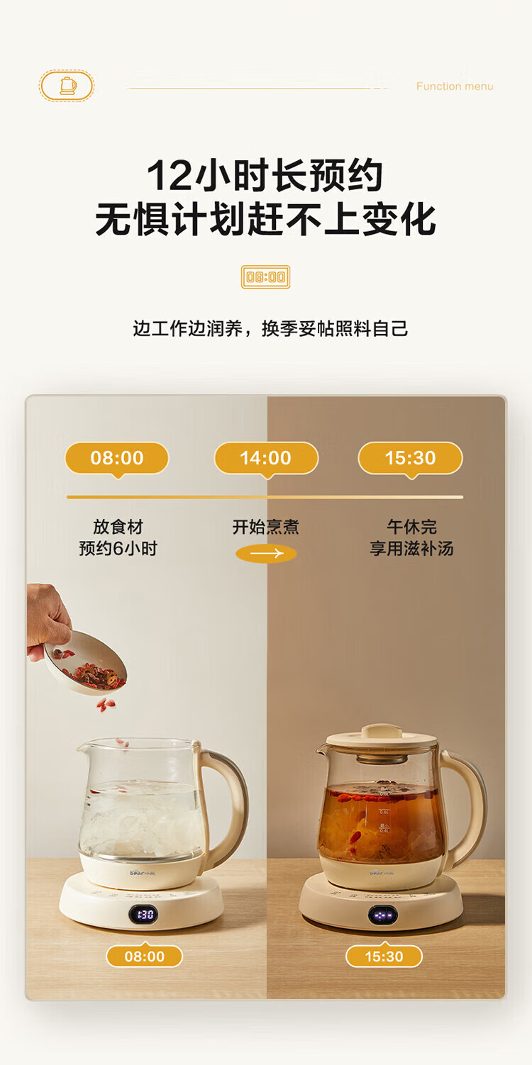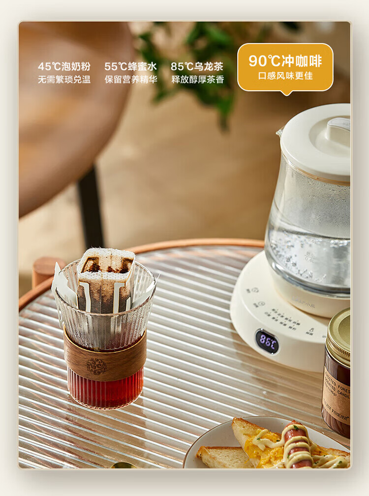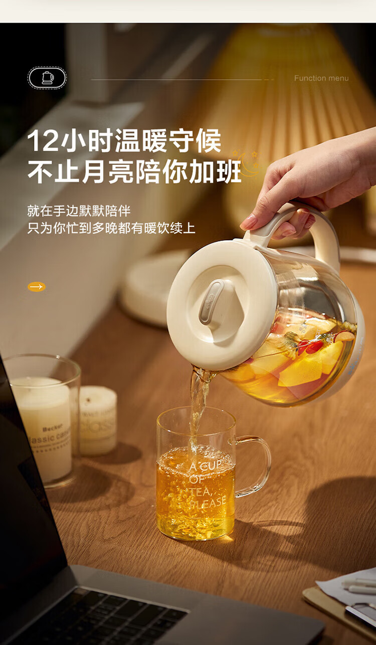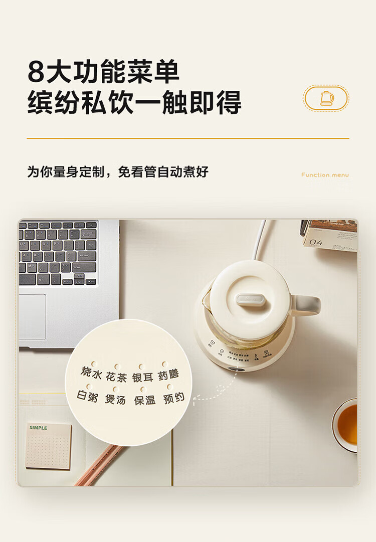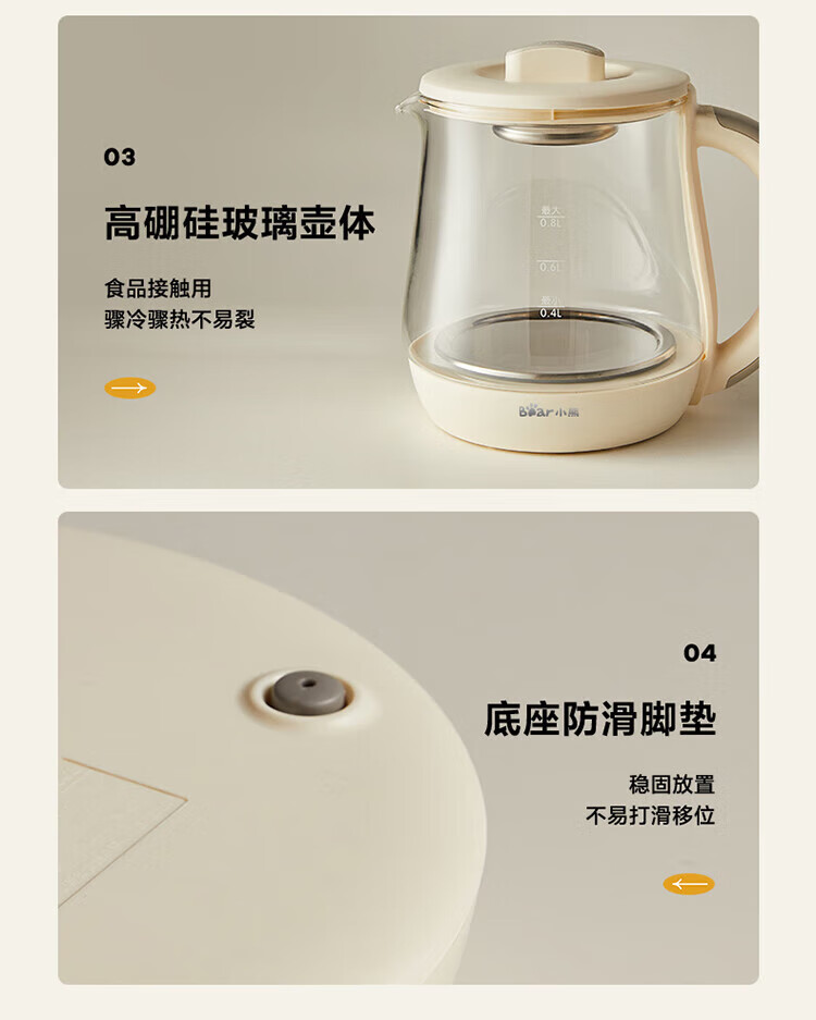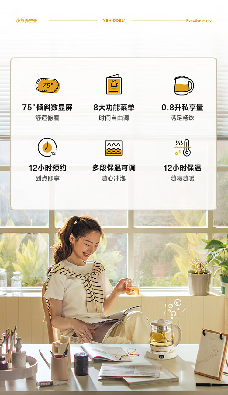 Bear Health Pot Mini Flower Teapot Office One Person Small Capacity Tea Maker Insulated Constant Temperature Tea Kettle Small Glass Electric Kettle Desktop Mid-Autumn Festival Gift YSH-D08L1 Multi-stage Constant Temperature 0.8L With Filter