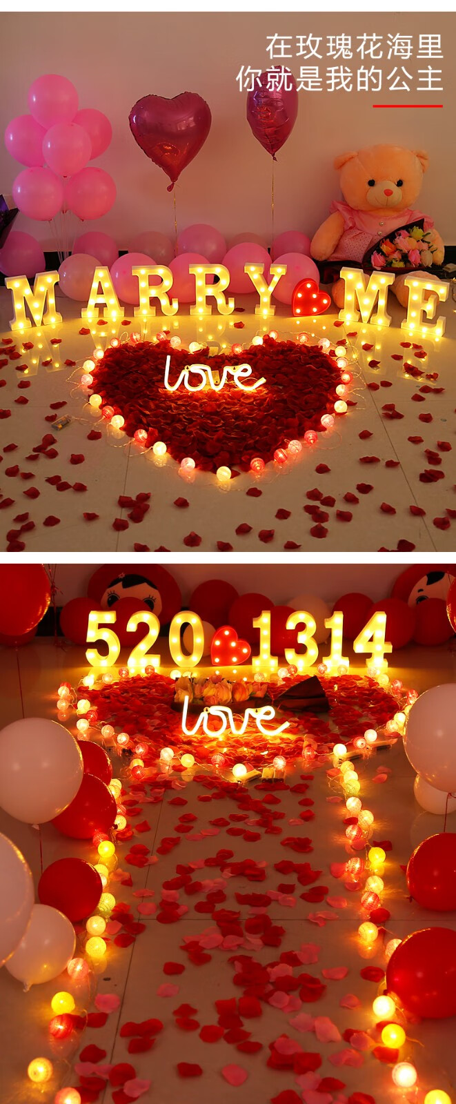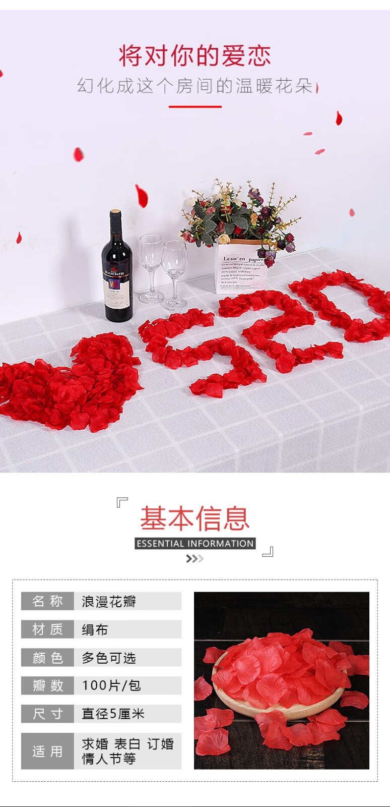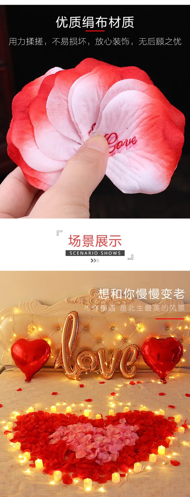 Jieyi rose simulation petals hand-thrown flowers wedding electronic lantern confession decoration Valentine's Day proposal room decoration bright red (about 1000 pieces)