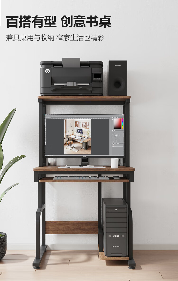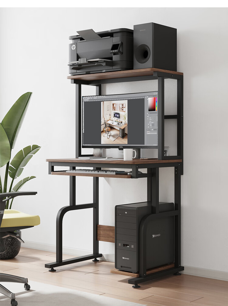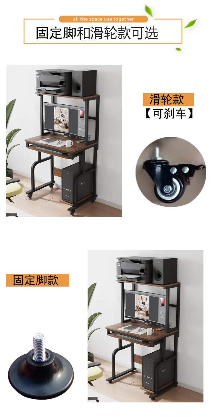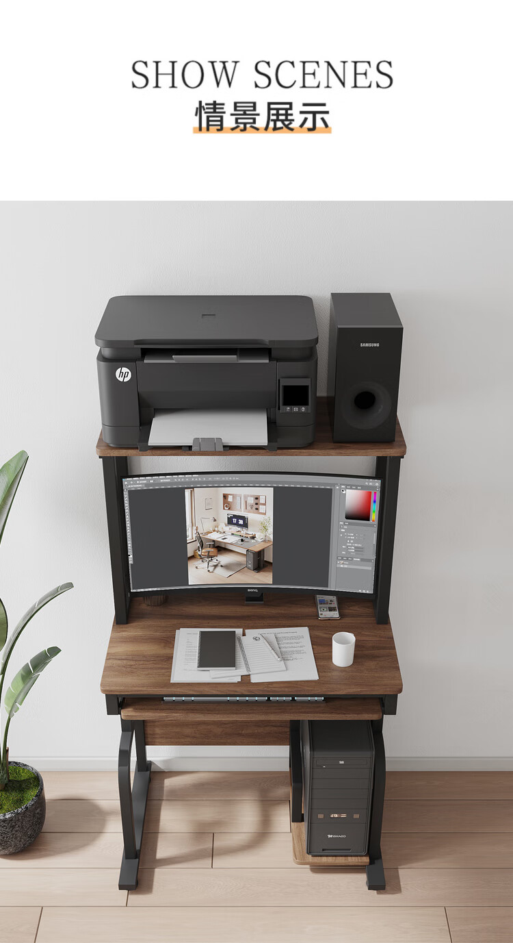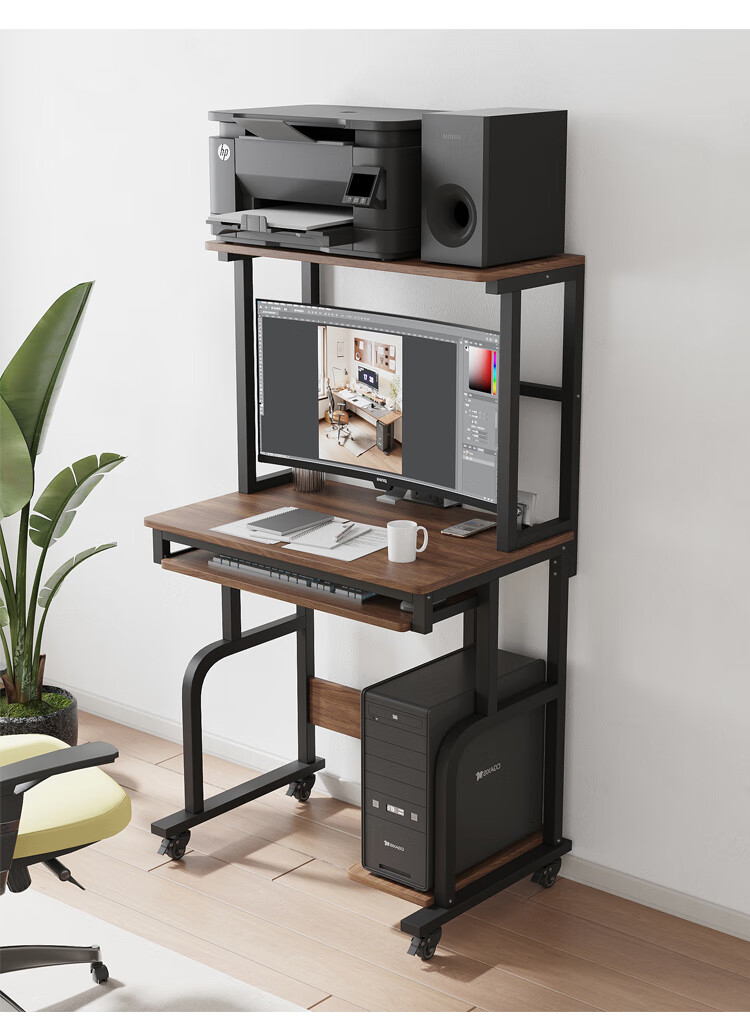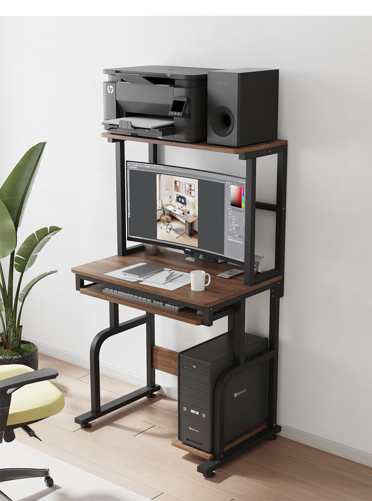 Jianli computer desk, office study desk, all-in-one desk for photocopier, multifunctional desk, small steel frame desk, removable 80CM gilt walnut color + fixed feet