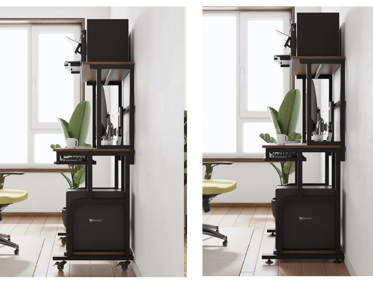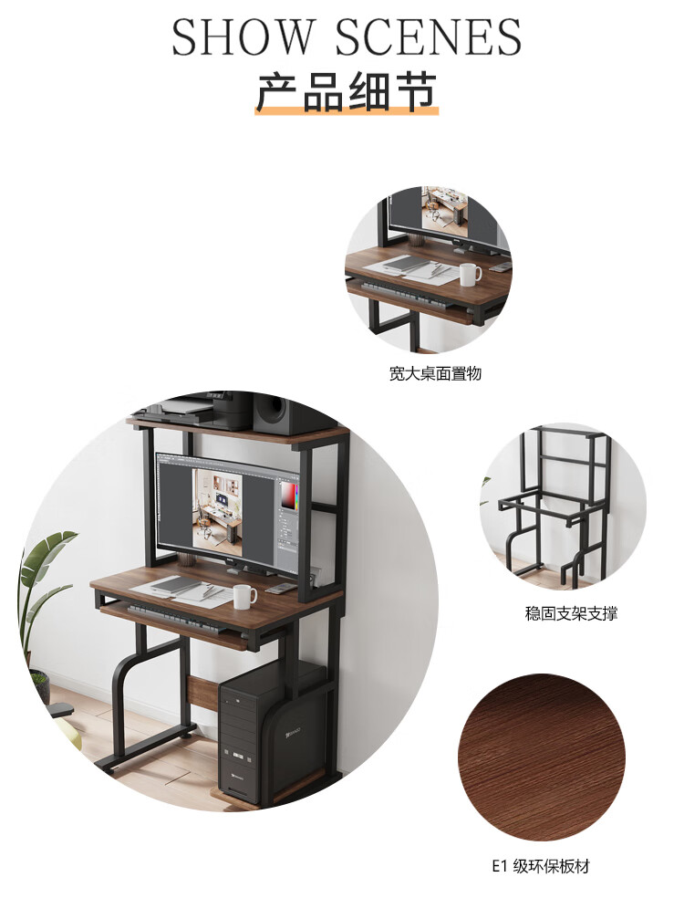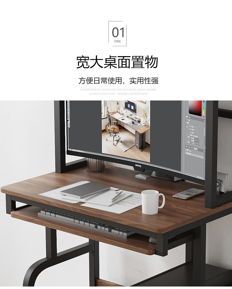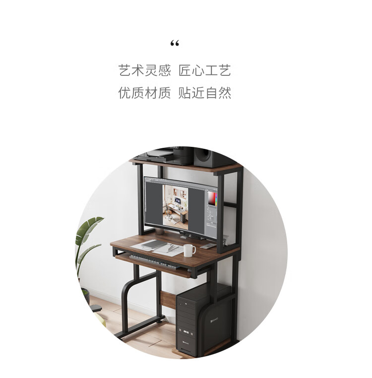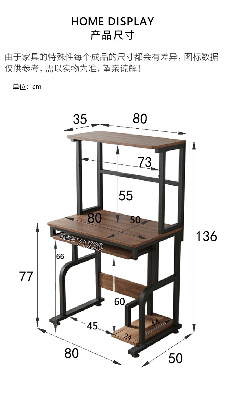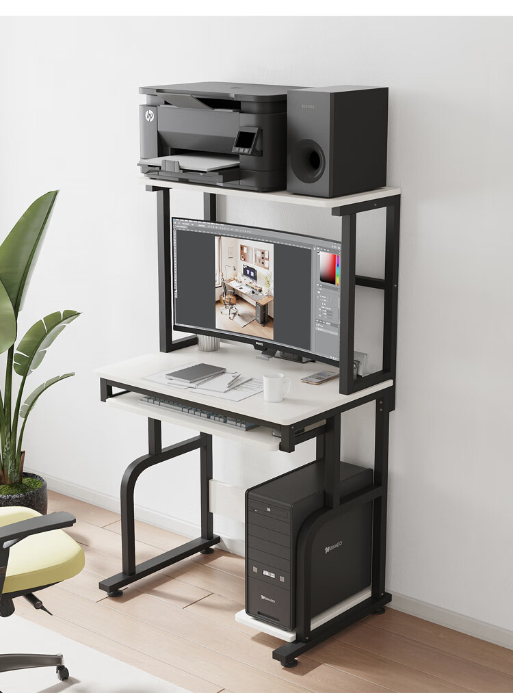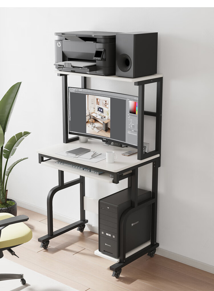 Jianli computer desk, office study desk, all-in-one desk for photocopier, multifunctional desk, small steel frame desk, removable 80CM gilt walnut color + fixed feet