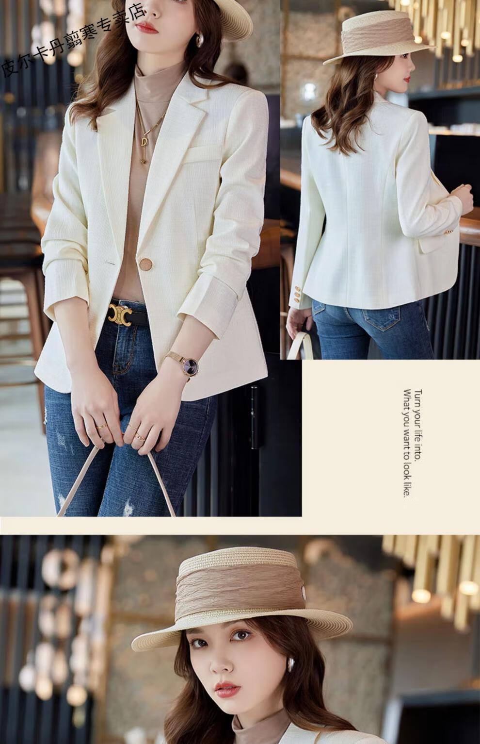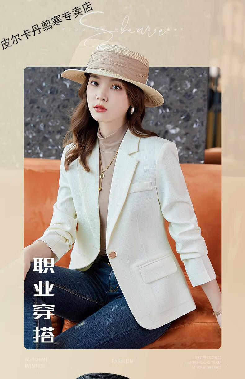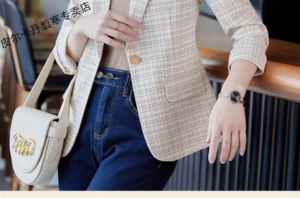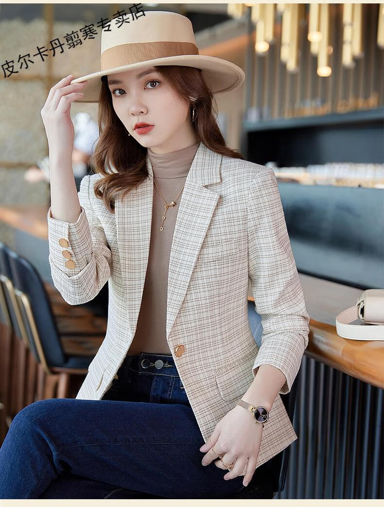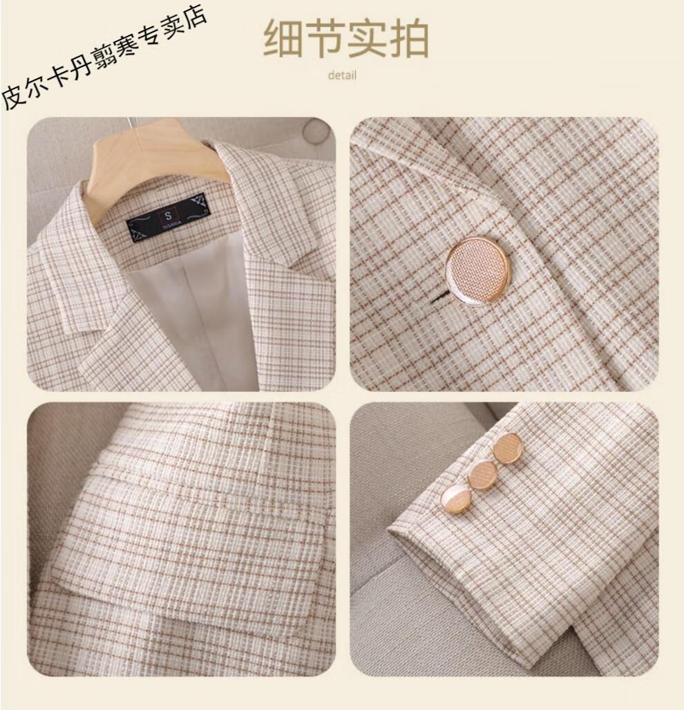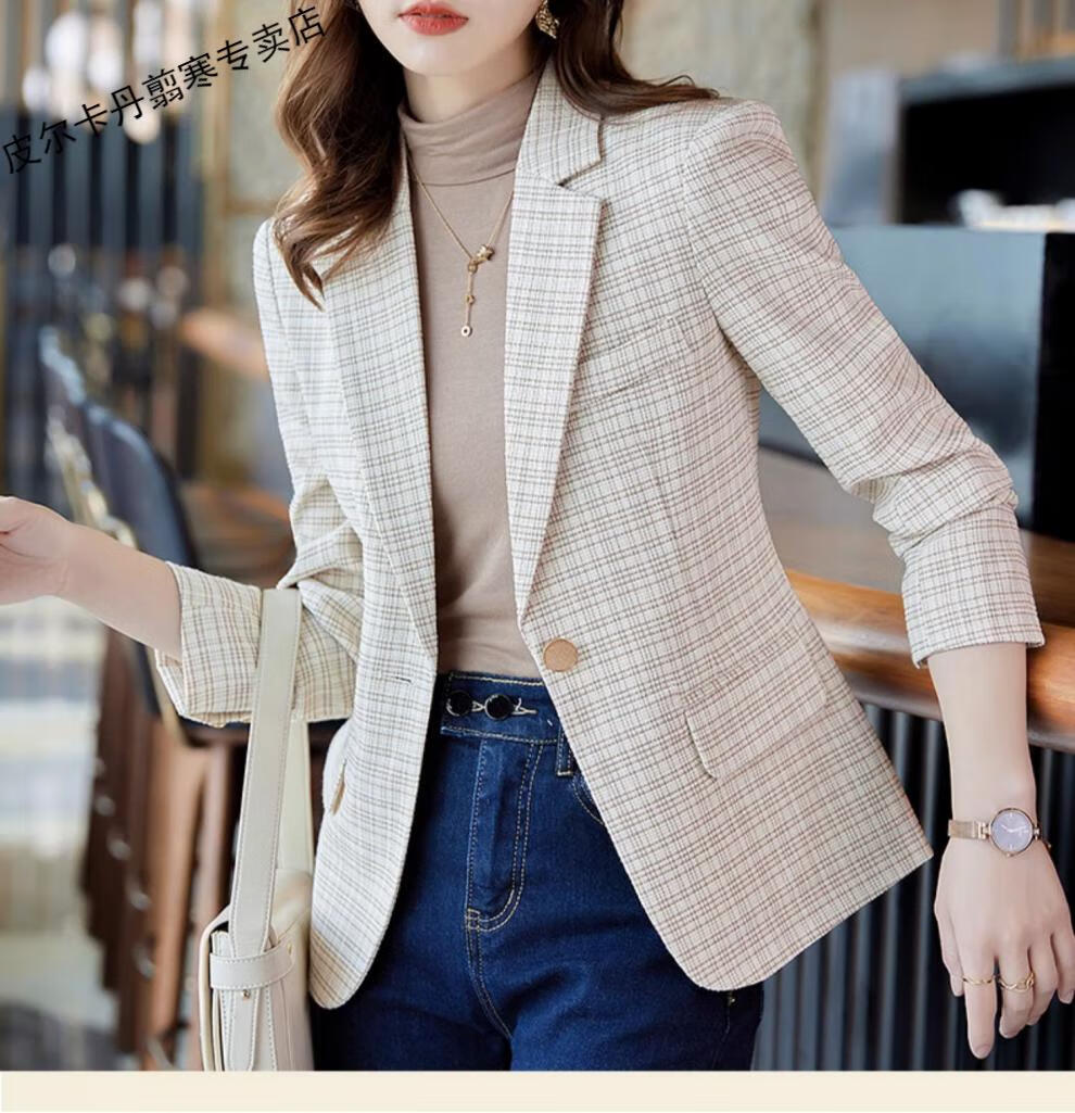 Pierre Cardin Plaid Small Suit Women's Short Fashion Casual Long Sleeve Women's Professional Suit Cardigan Jacket New Temperament Top Green Suit (Coat Women) XL 116-125Jin Jin equals 0.5 kg
