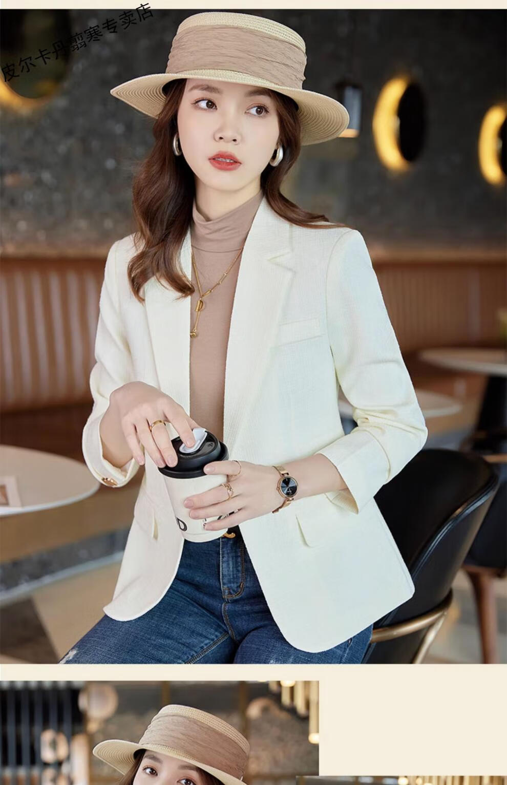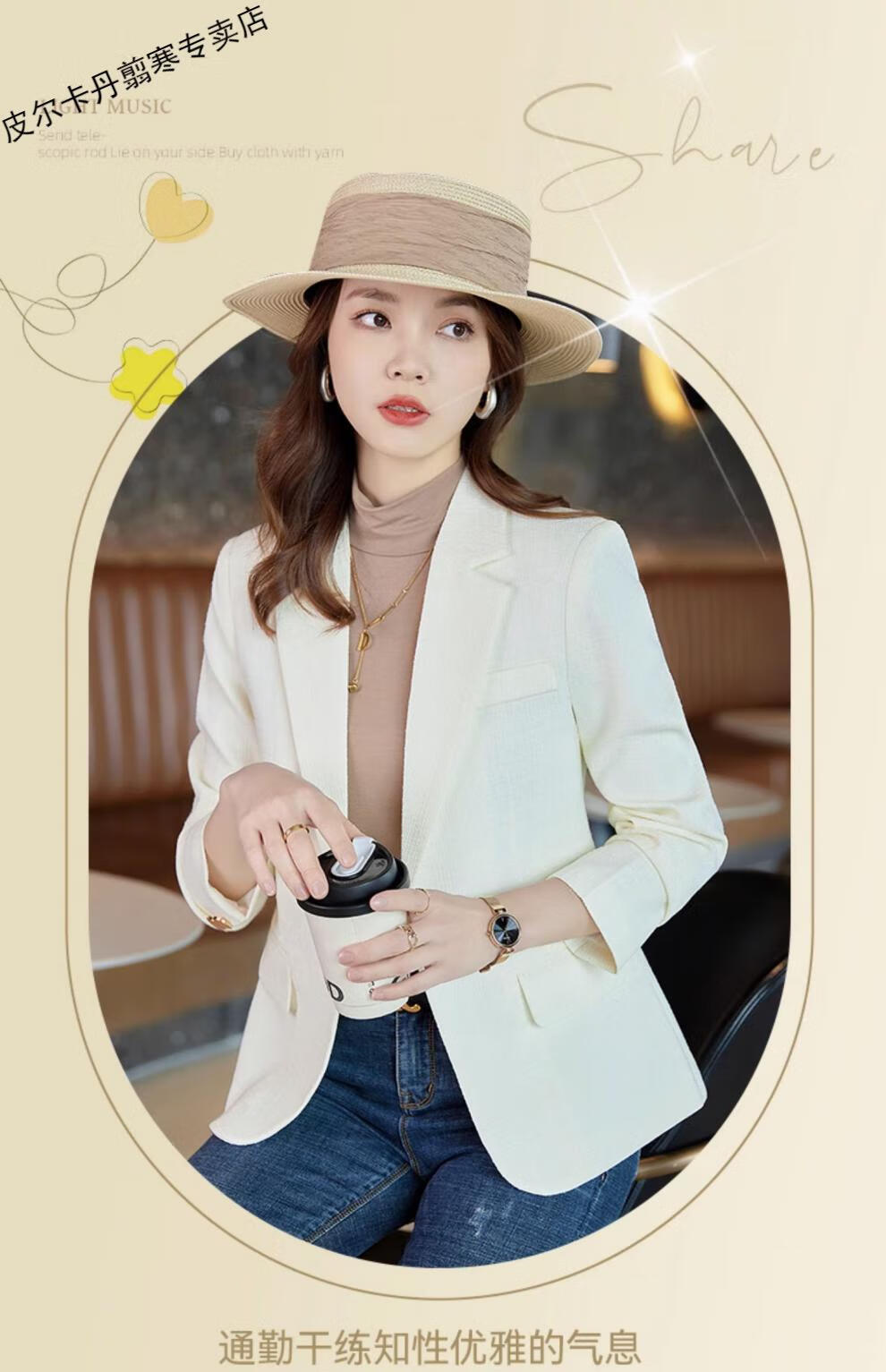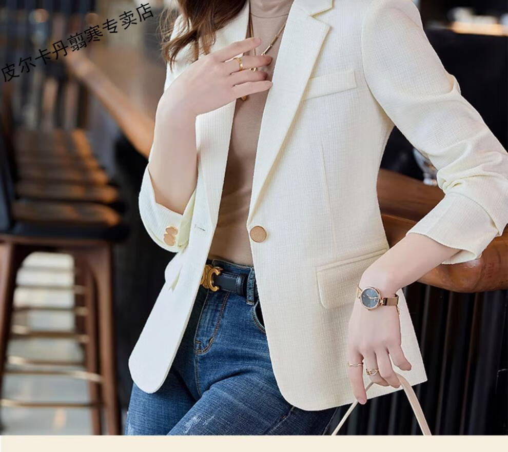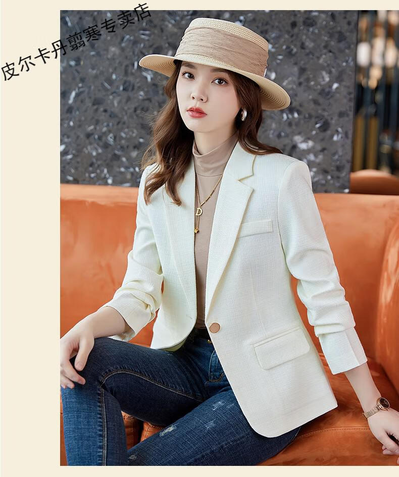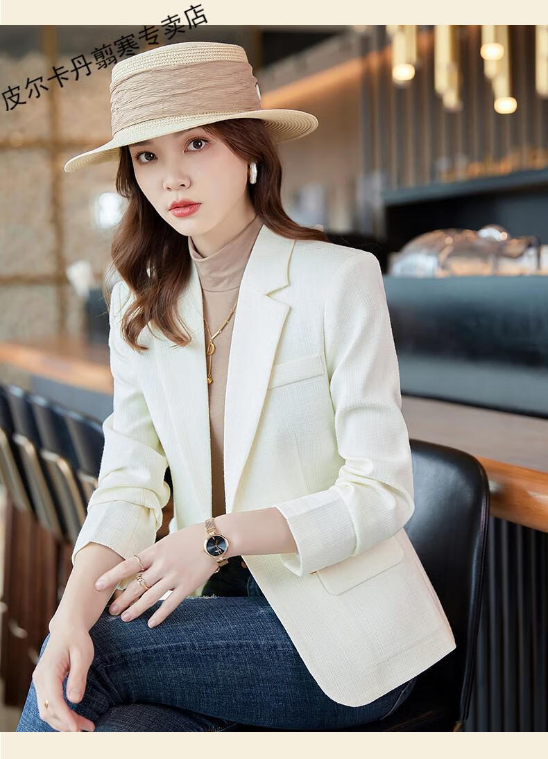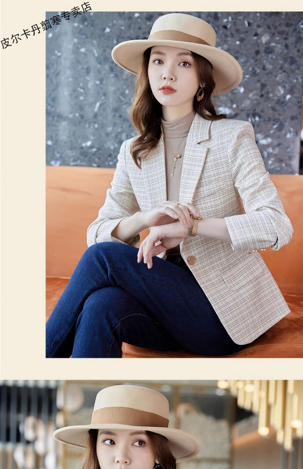 Pierre Cardin Plaid Small Suit Women's Short Fashion Casual Long Sleeve Women's Professional Suit Cardigan Jacket New Temperament Top Green Suit (Coat Women) XL 116-125Jin Jin equals 0.5 kg