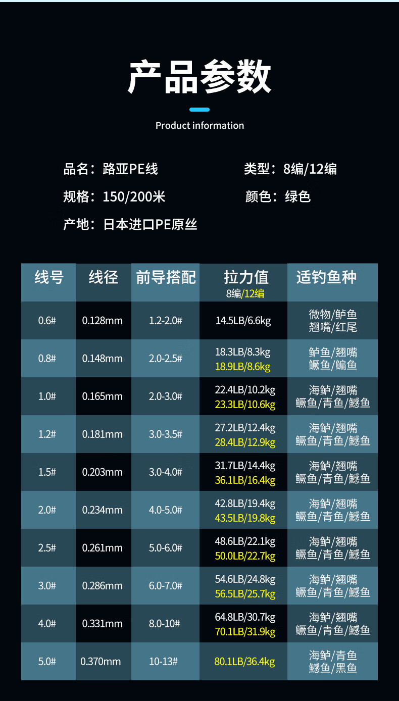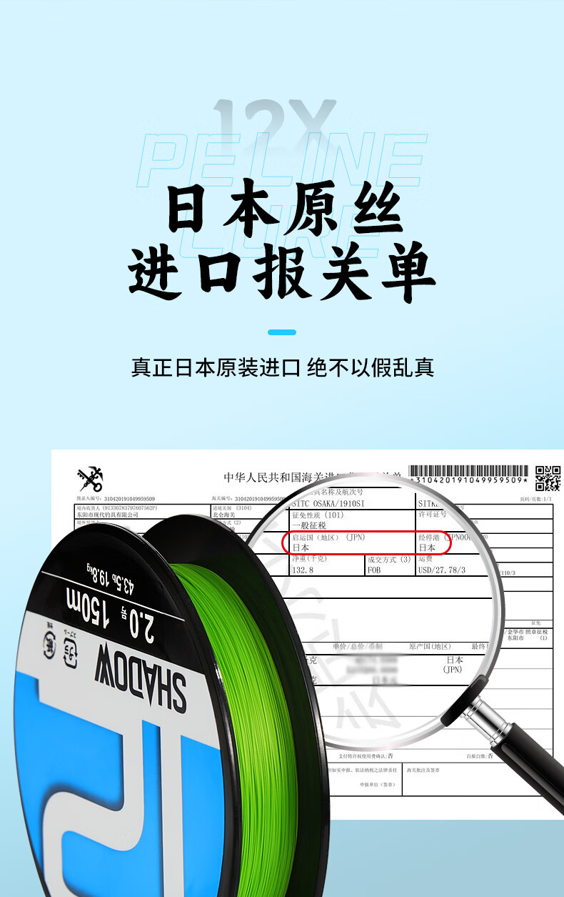 Zhizunfang imported from Japan 12-braid ygkpe line sub-special PE line main line 8-braid ultra-long-range micro-object strong horse fish line PE 12-braid ygk raw silk Songzhen carbon wire 150 meters No. 1.0