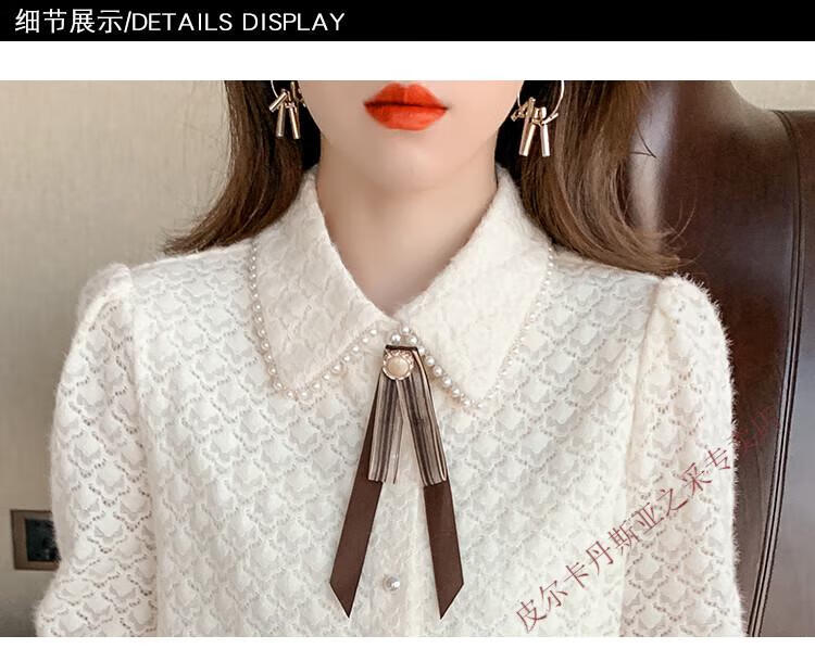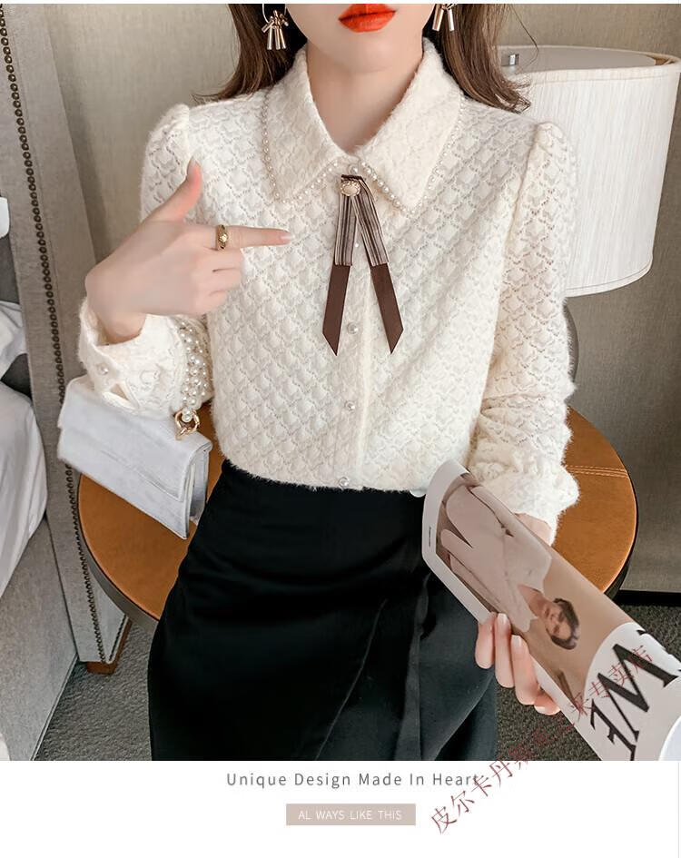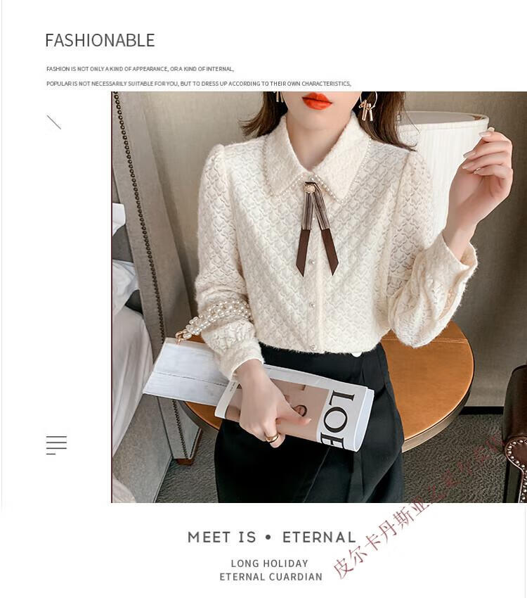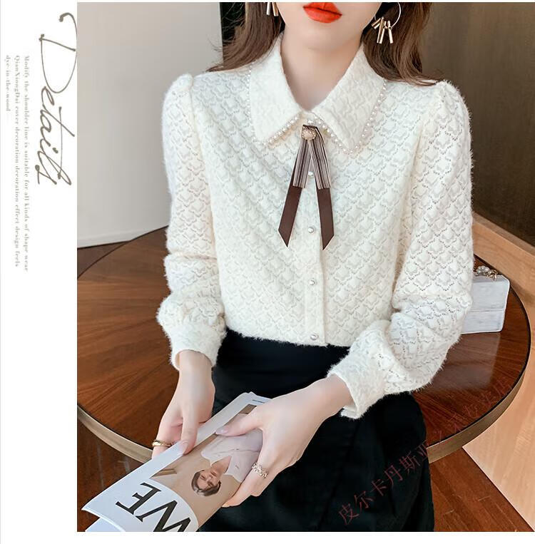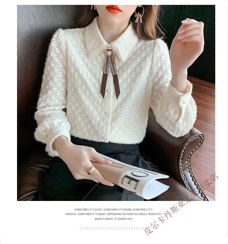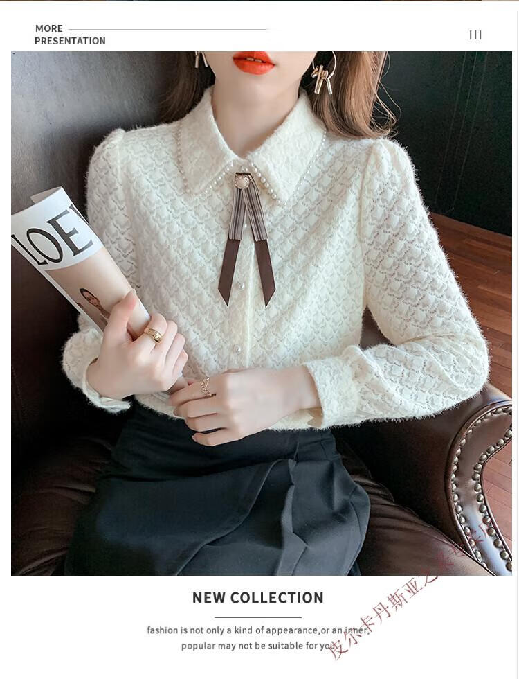 Pierre Cardin plus velvet thickening bottoming shirt for women new French style small man top with POLO collar lace shirt off-white regular XL