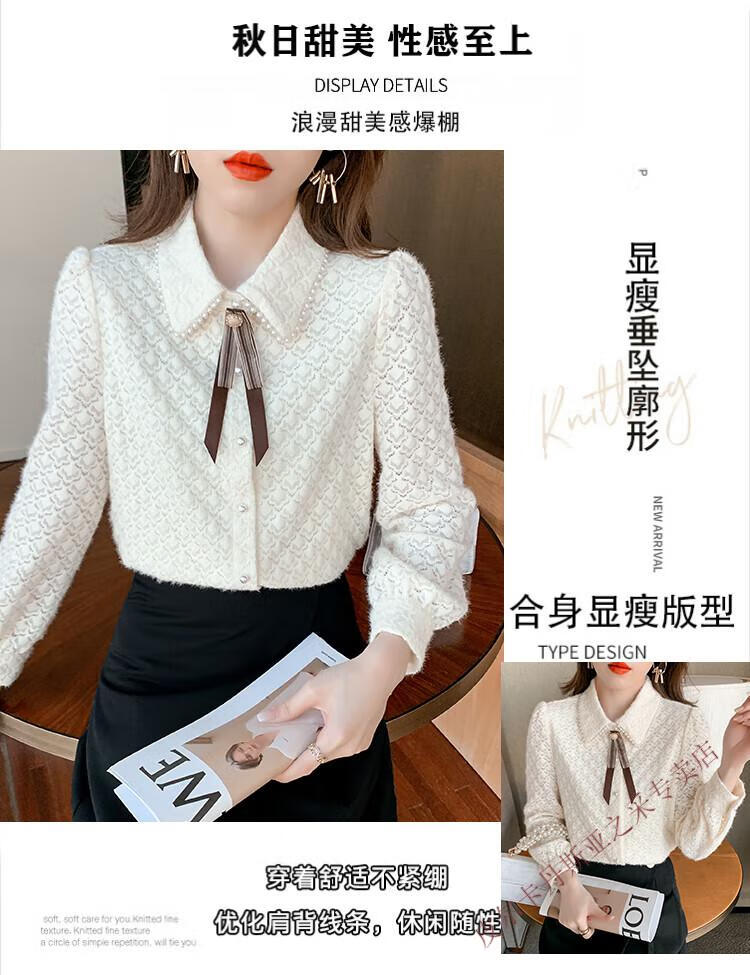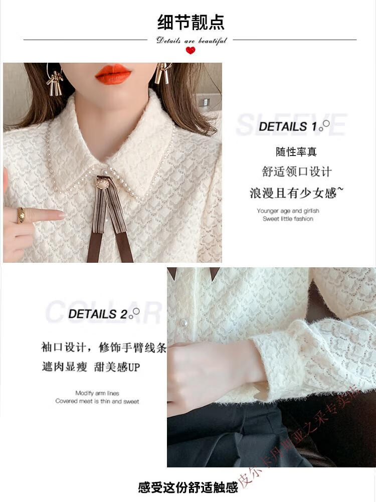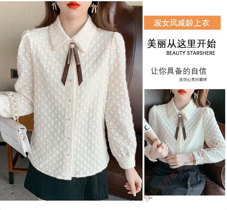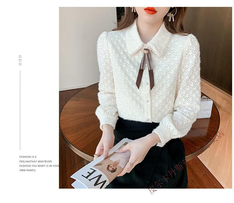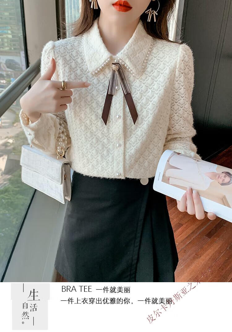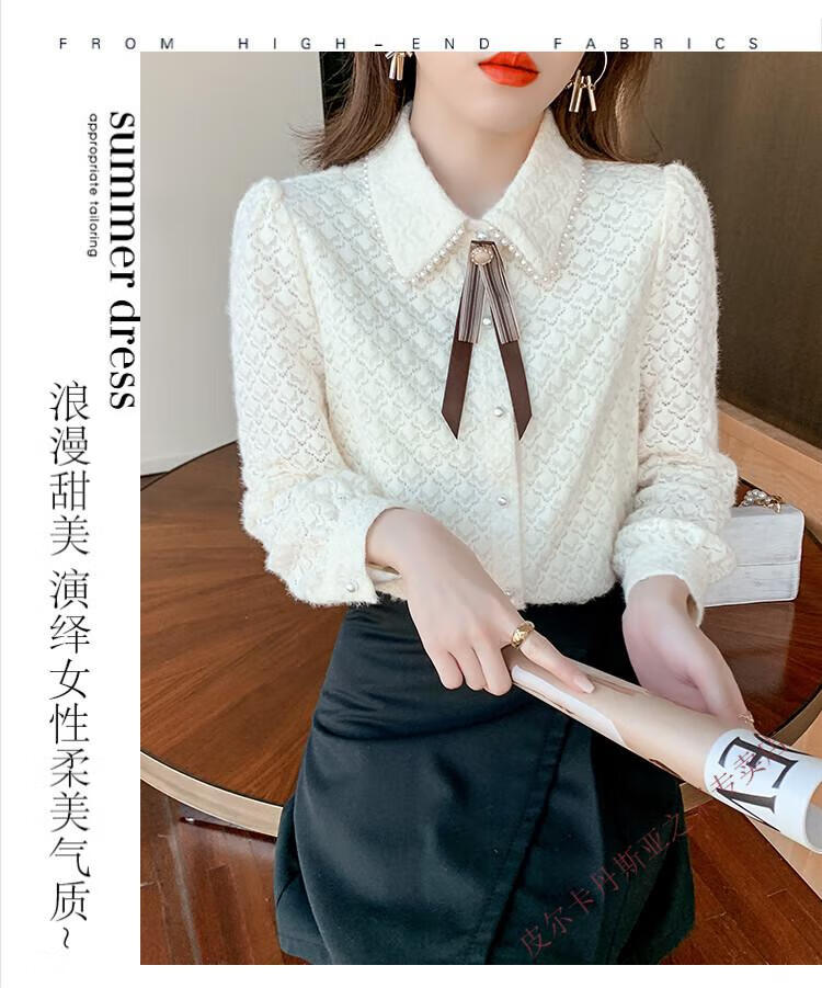Pierre Cardin plus velvet thickening bottoming shirt for women new French style small man top with POLO collar lace shirt off-white regular XL