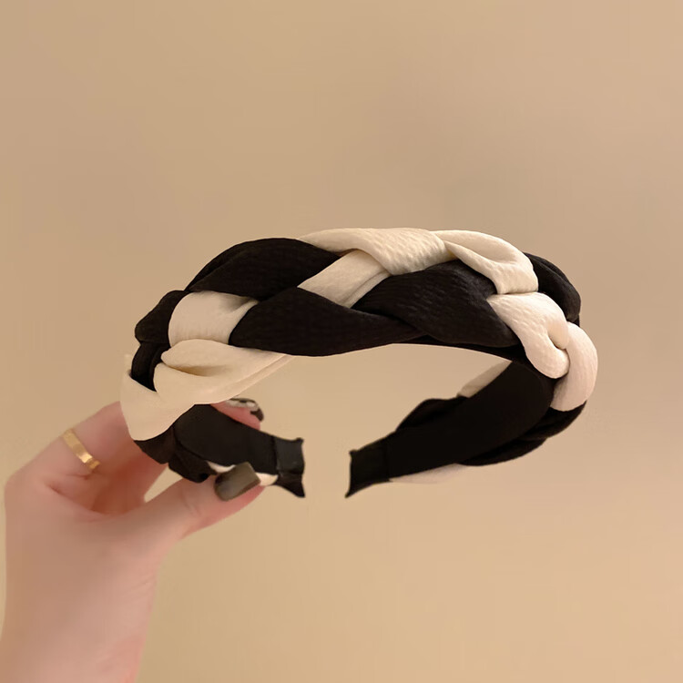 Oxygen color two-color braided headband for women high skull autumn and winter hairpin female versatile internet celebrity 2025 new headband black and white