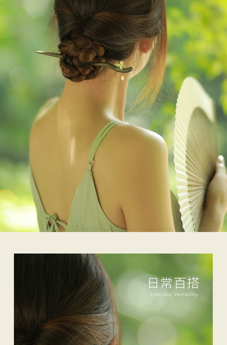 Oxygen Green Sandalwood Hairpin Women's Ancient Style High-end Temperament Hairpin Modern Simple New Chinese Style Hairpin Wooden Hairpin Green Sandalwood Rhinoceros-18CM Fragrant Sandalwood + Gift Box